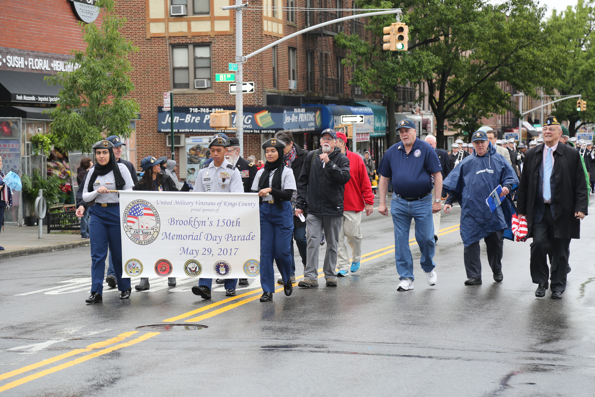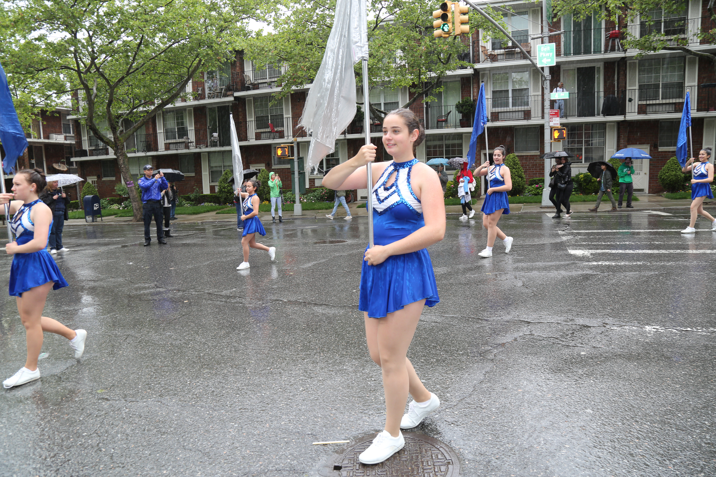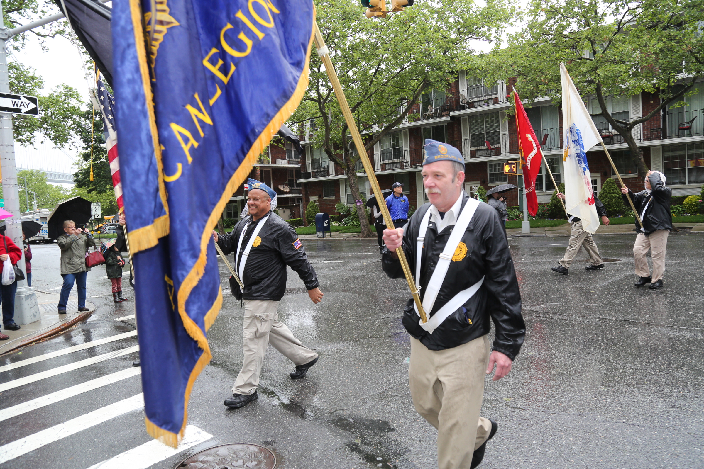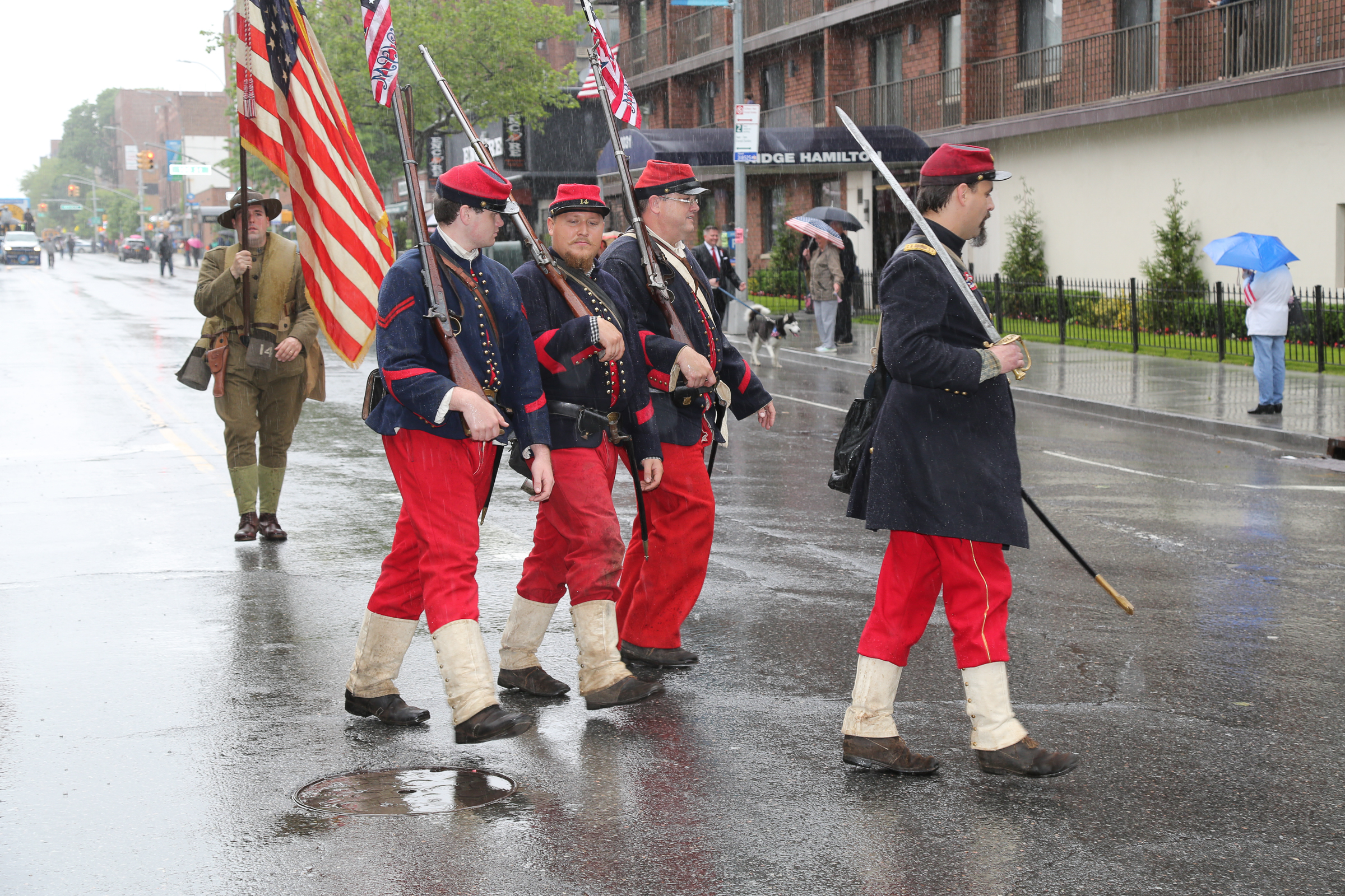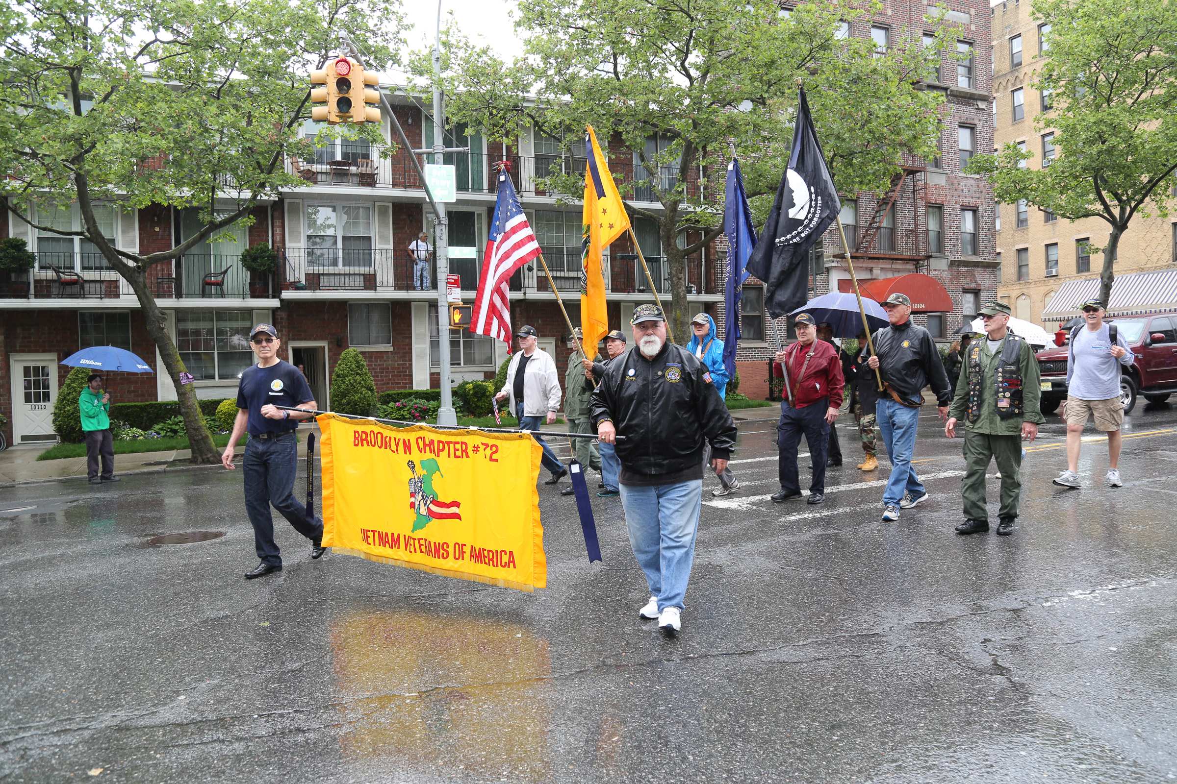 The morning of the milestone 150th annual Kings County Memorial Day Parade, one of its organizers, Bay Ridge resident Ray Aalbue, sent a text to Matt Schoenherr, band leader for a military marching band from Sterling, Michigan, saying “Just to let you know, we march rain or shine.”