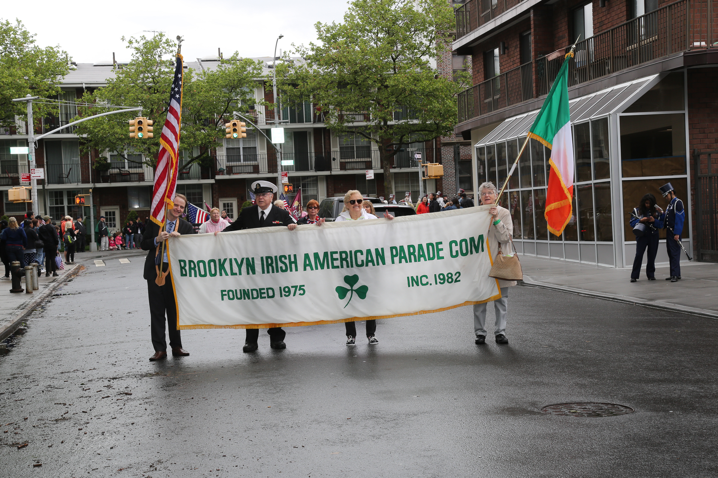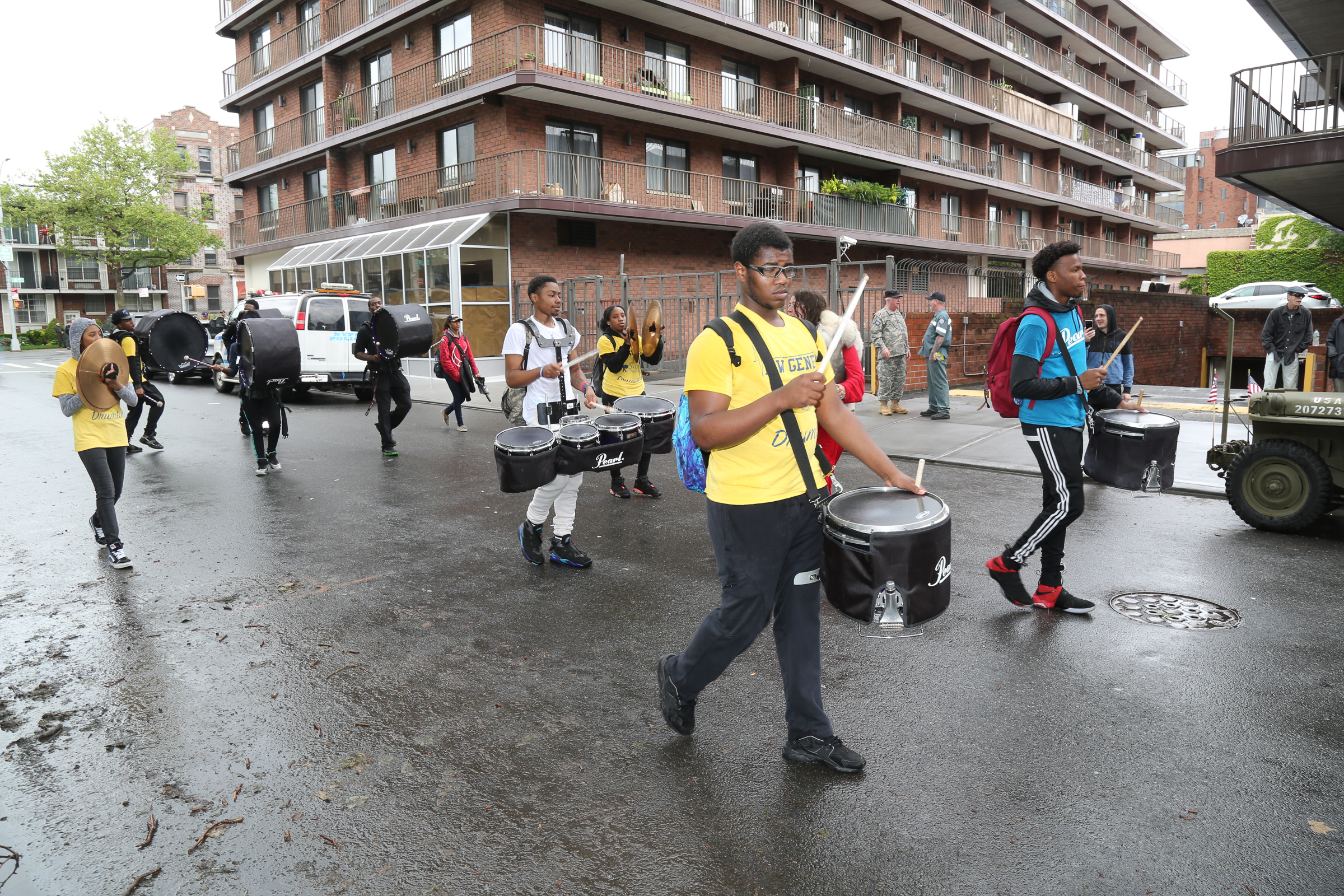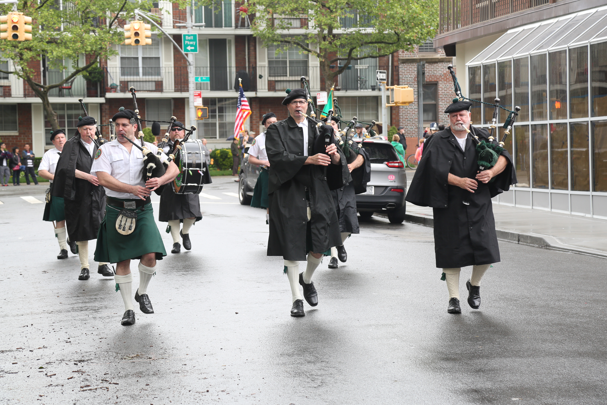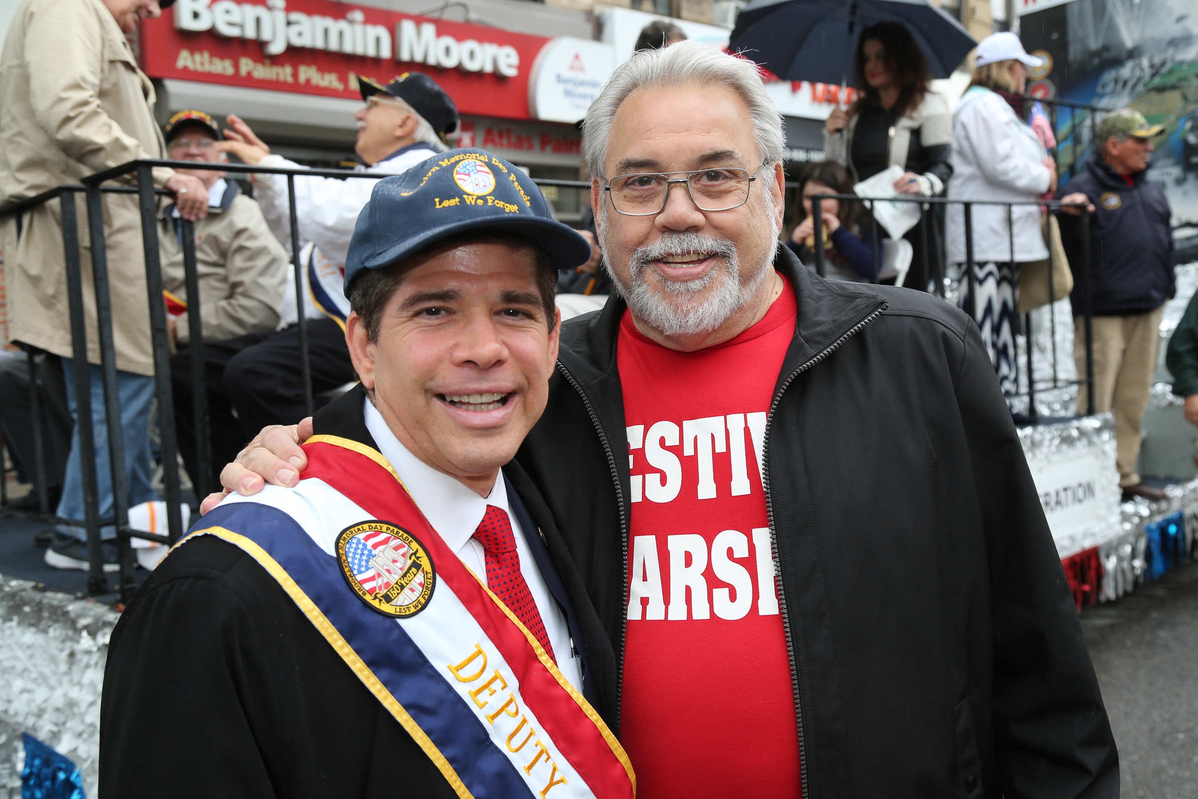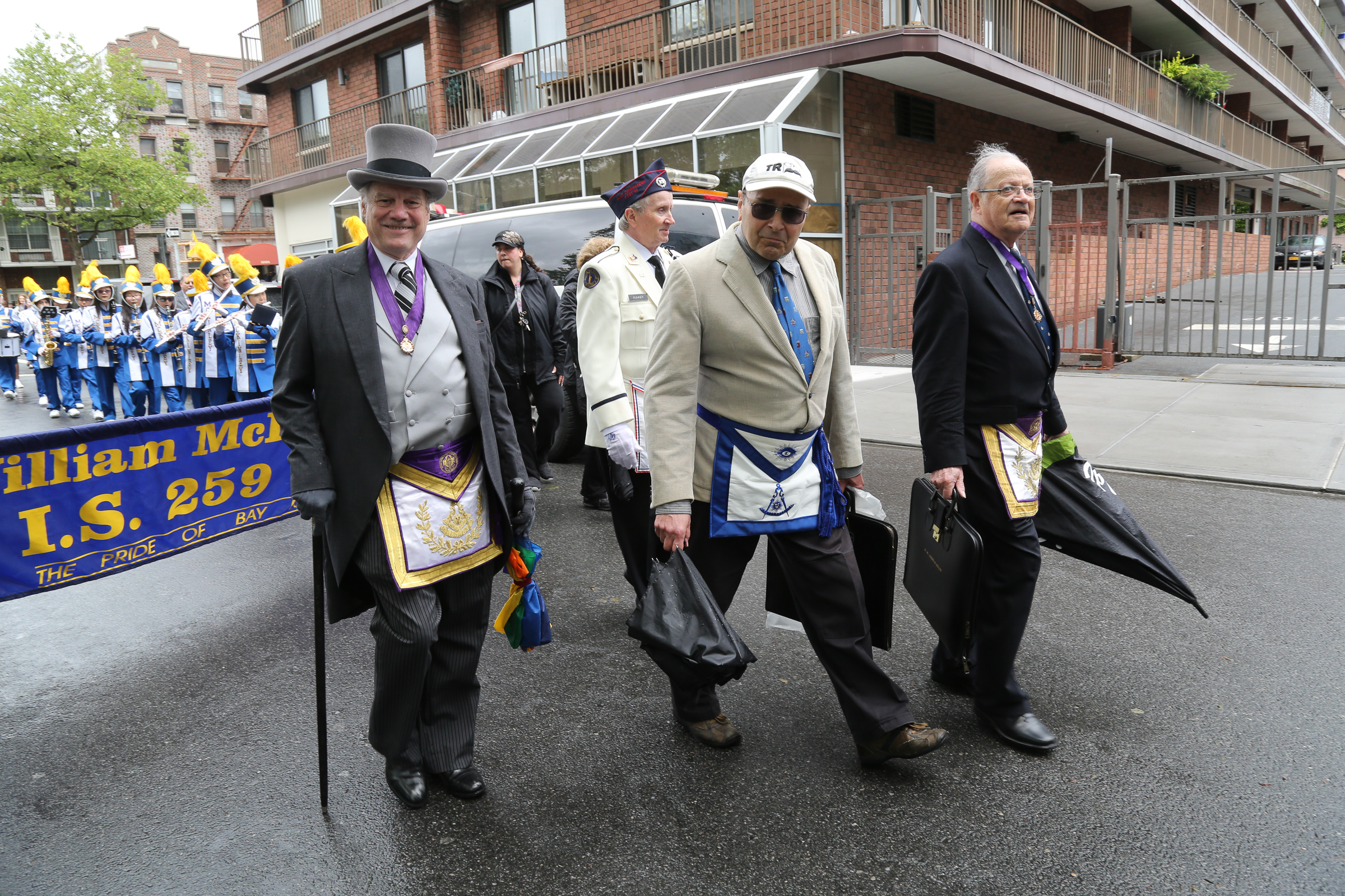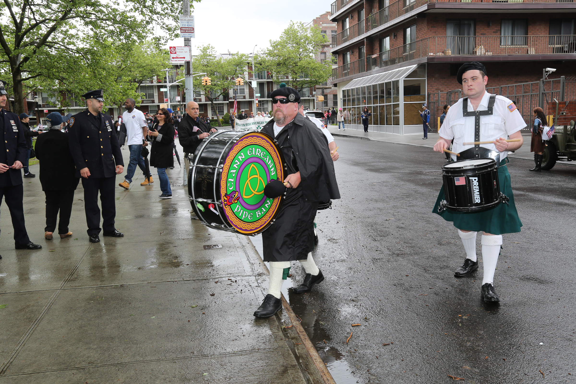 The morning of the milestone 150th annual Kings County Memorial Day Parade, one of its organizers, Bay Ridge resident Ray Aalbue, sent a text to Matt Schoenherr, band leader for a military marching band from Sterling, Michigan, saying “Just to let you know, we march rain or shine.”