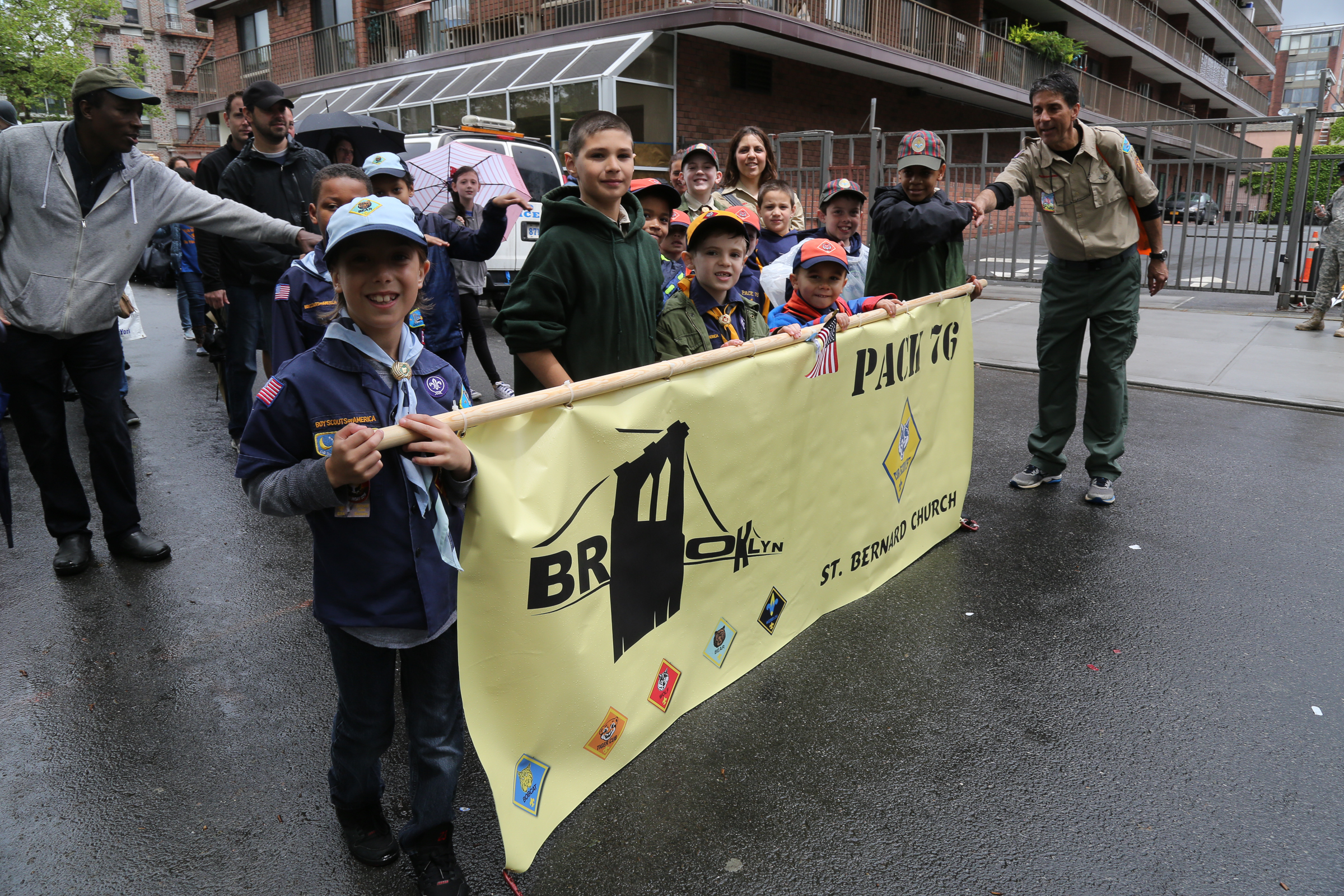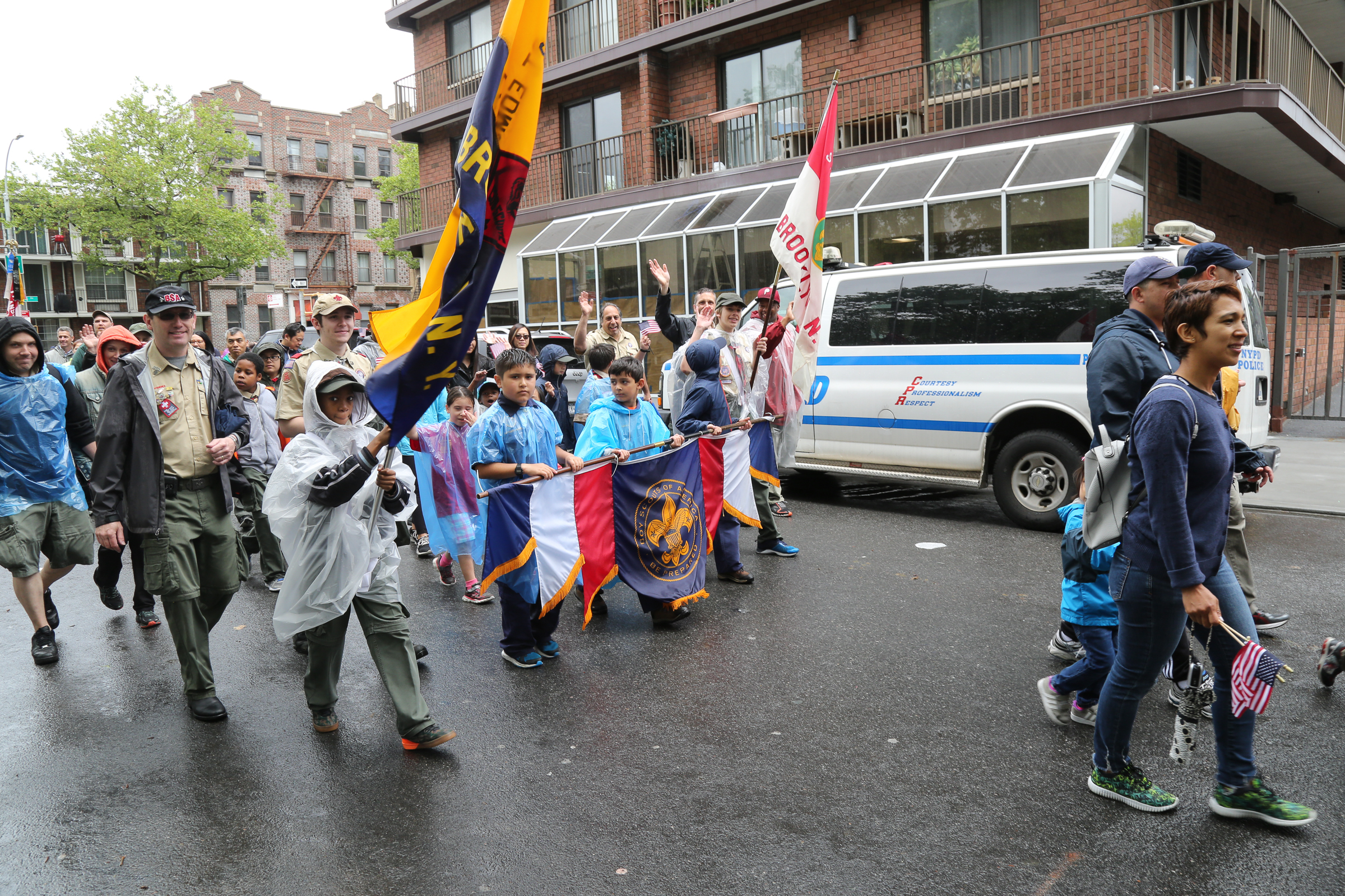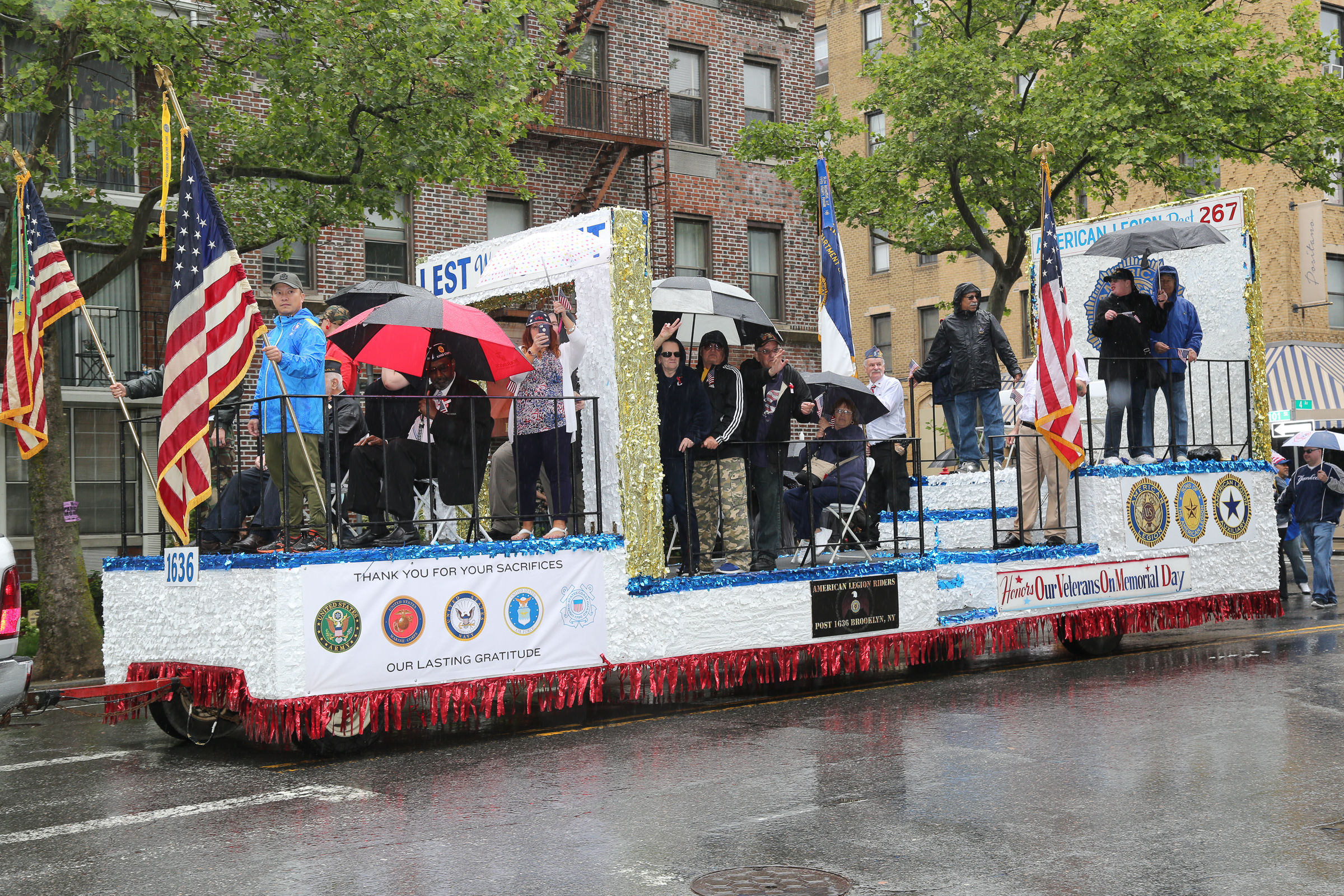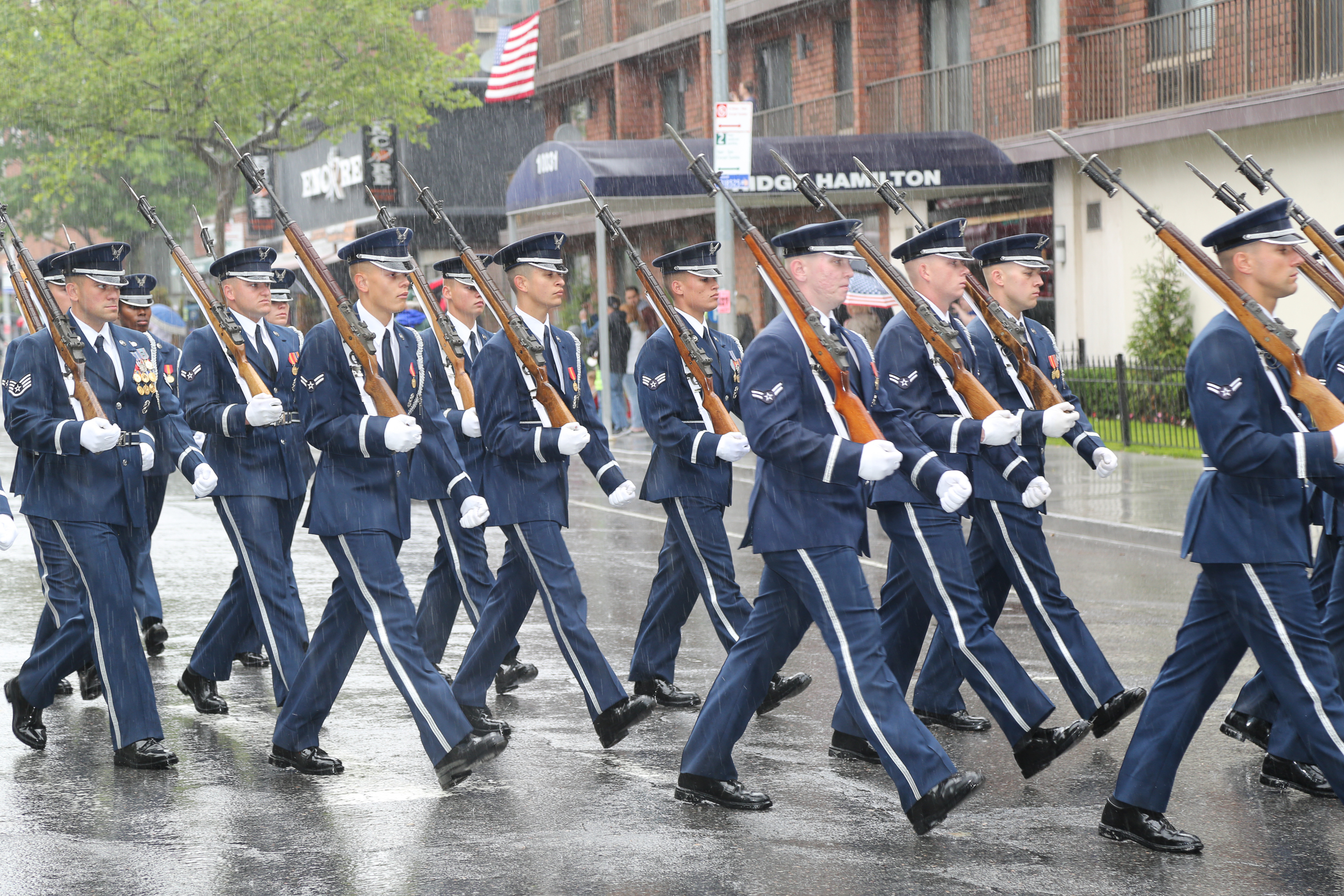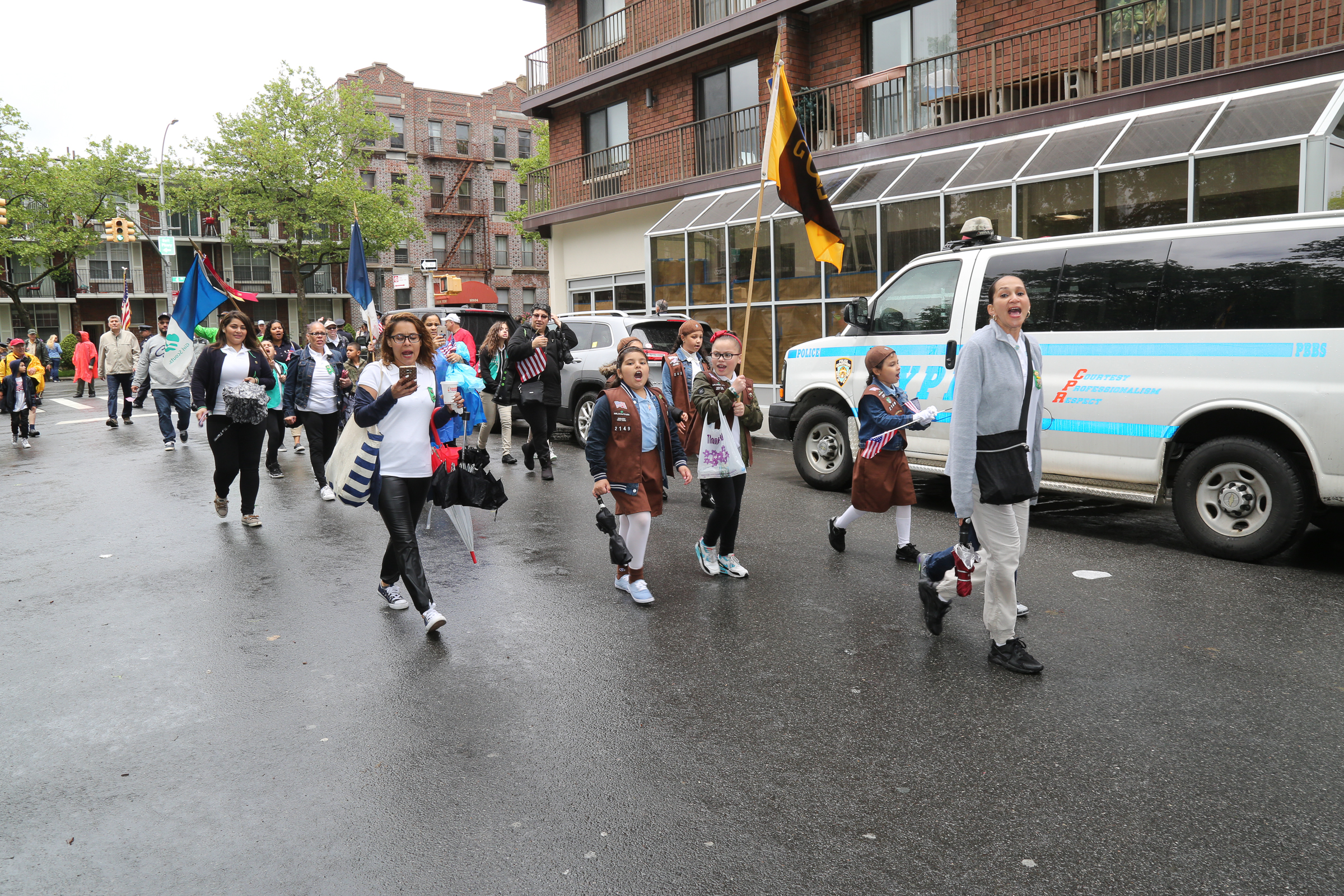 The morning of the milestone 150th annual Kings County Memorial Day Parade, one of its organizers, Bay Ridge resident Ray Aalbue, sent a text to Matt Schoenherr, band leader for a military marching band from Sterling, Michigan, saying “Just to let you know, we march rain or shine.”