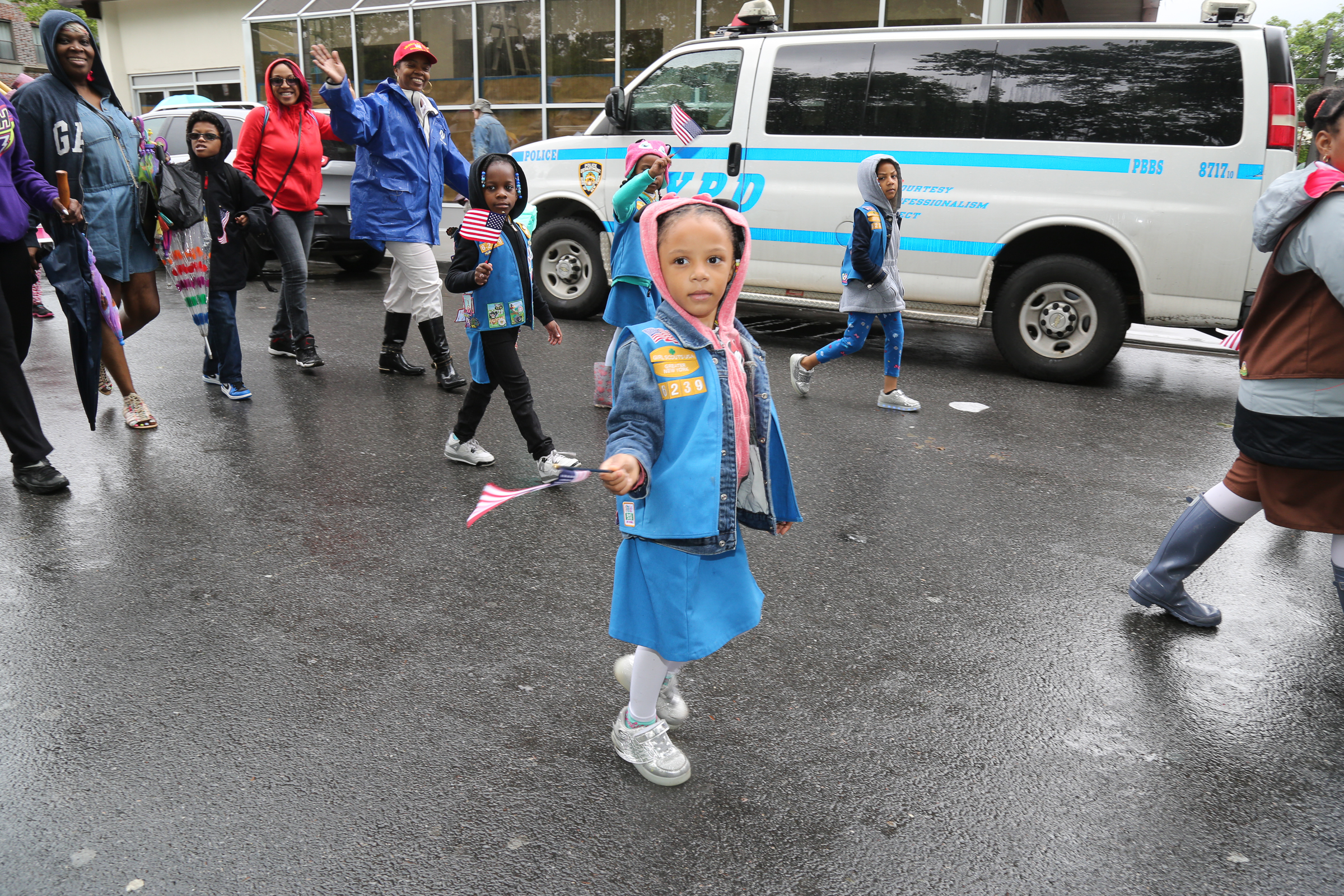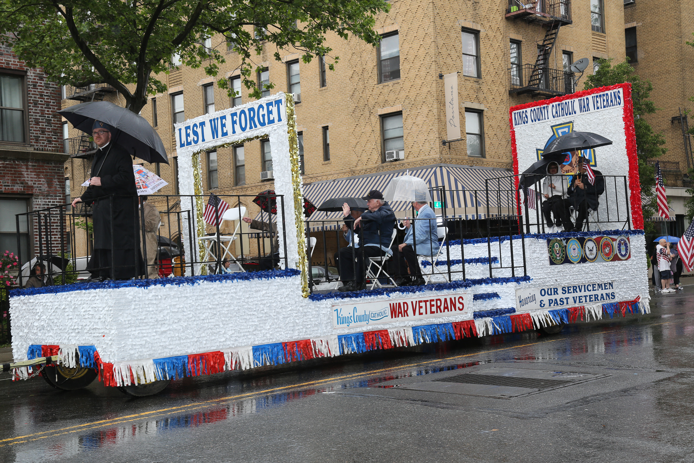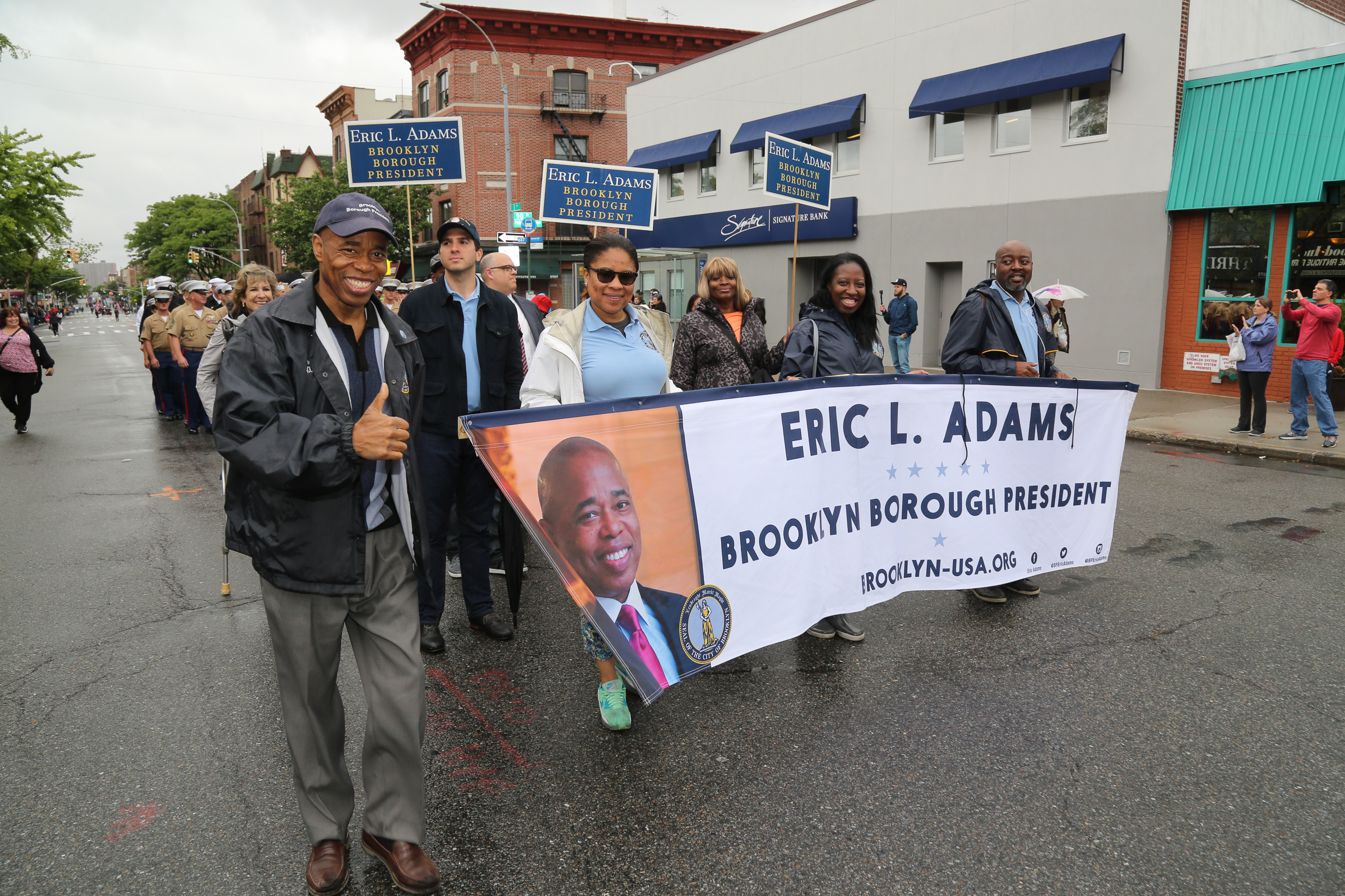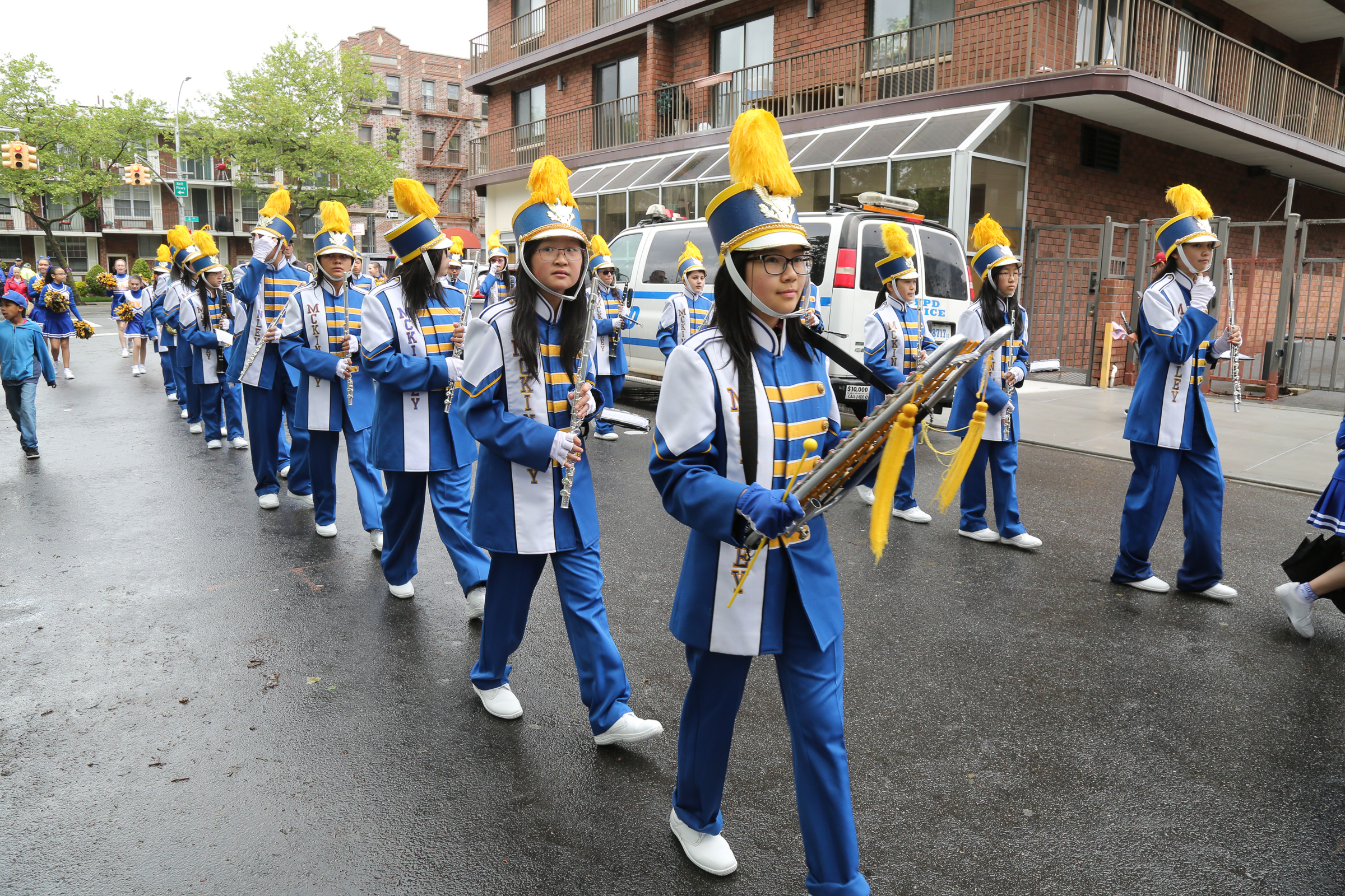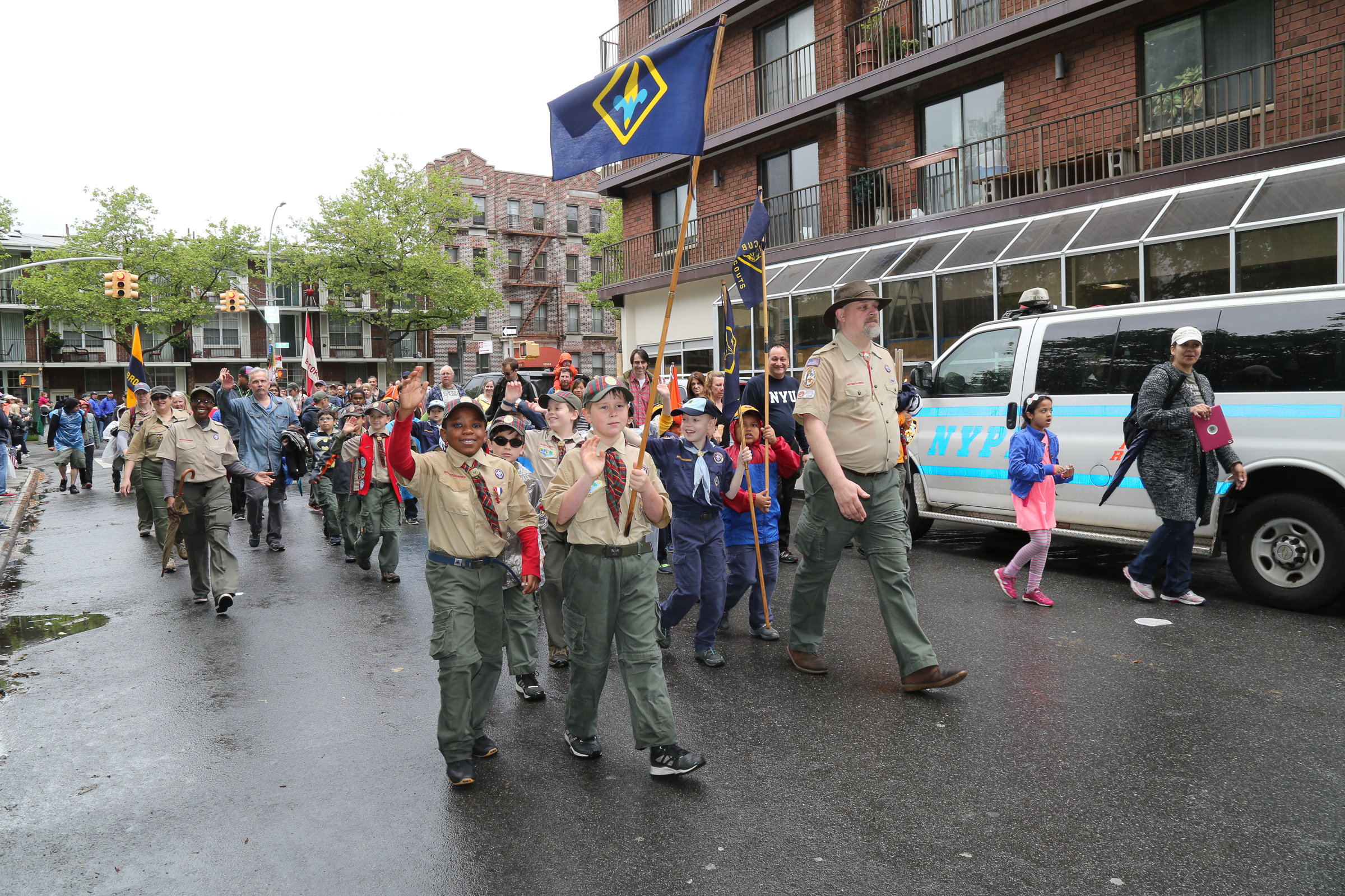 The morning of the milestone 150th annual Kings County Memorial Day Parade, one of its organizers, Bay Ridge resident Ray Aalbue, sent a text to Matt Schoenherr, band leader for a military marching band from Sterling, Michigan, saying “Just to let you know, we march rain or shine.”