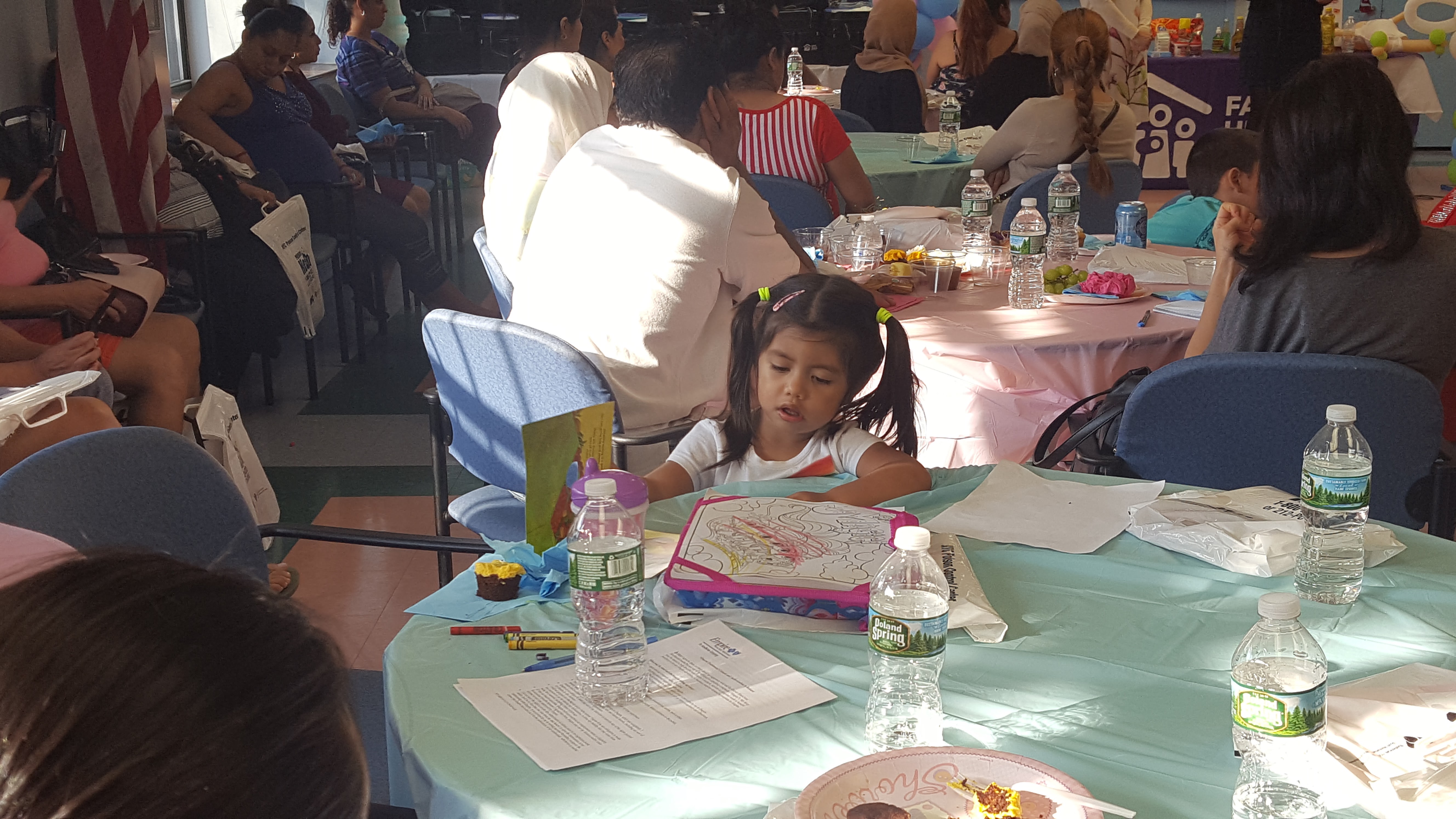 The room brightened with the arrival of the diverse families, with an area for kids tucked away at the side of the room with arts and crafts. During the event, a volunteer painted the arms of the children, who later jumped to have their photo taken to feature the designs.