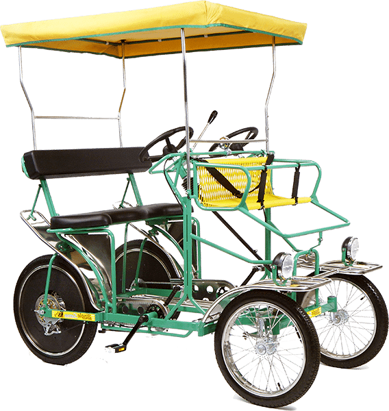 Rides available for rent at the new base include surreys, double surreys, deuce coupes, choppers, quad sports, cruiser bikes, hybrid bikes, tandem bikes, kid’s bikes and kid’s trailers for attachment to other cycles. Rentals range from $8 to $35-per-hour, $18 to $38-per-half-day and $25 to $45-per-full-day for select rides.