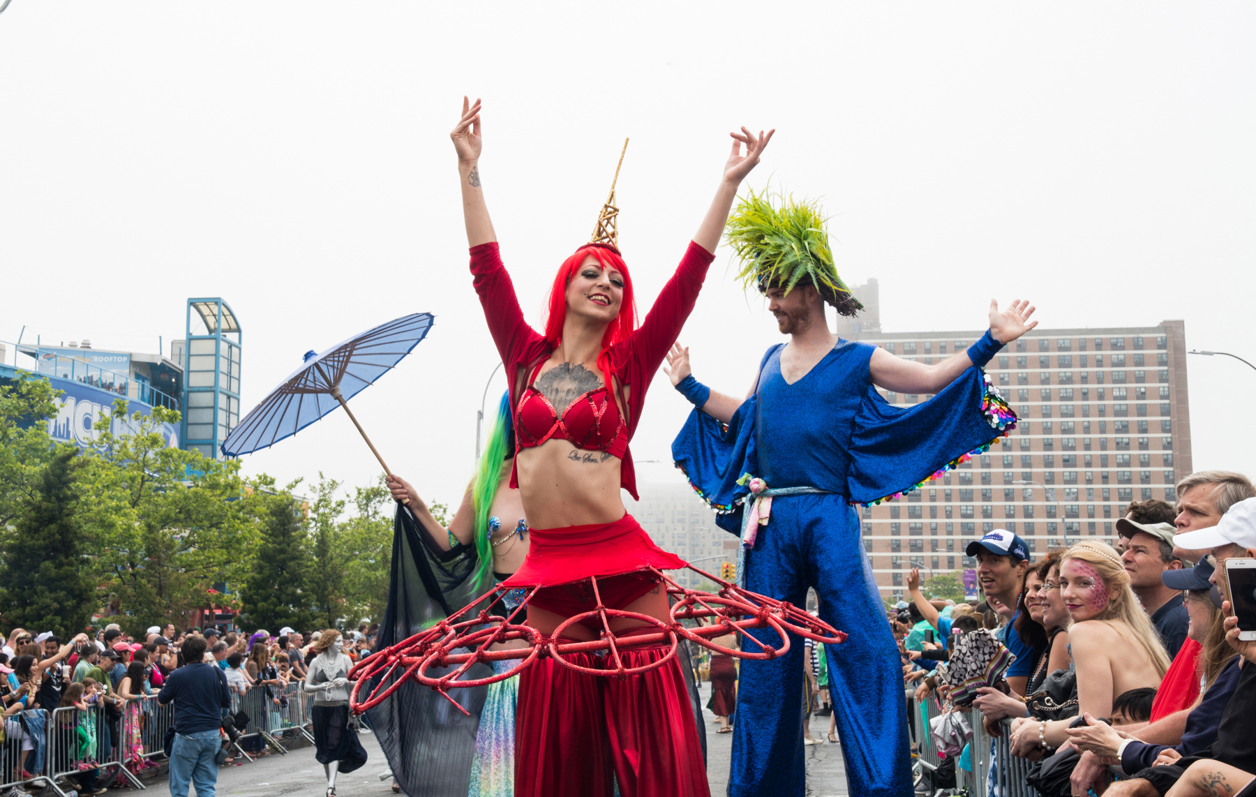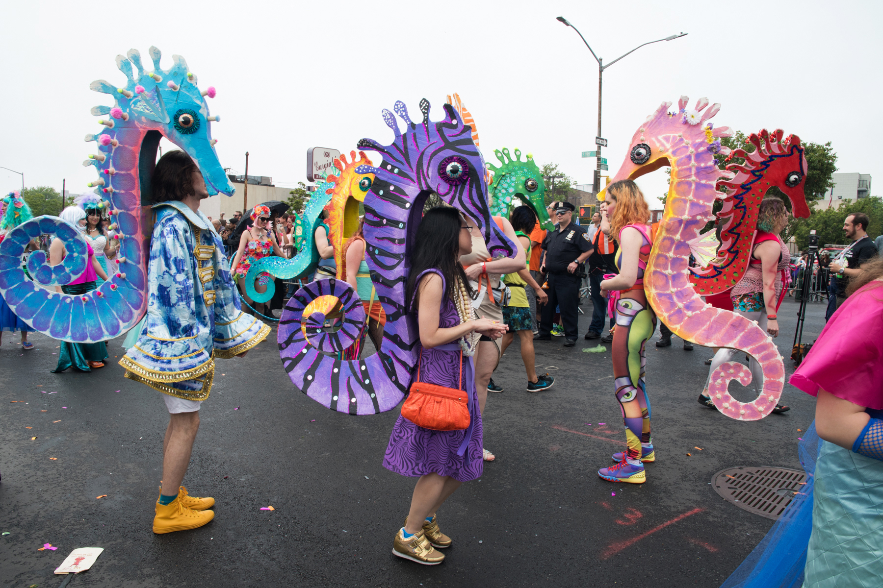 Despite some wet weather, sea-clad marchers and spectators alike came out to celebrate one of the neighborhood’s most unique traditions, put on each year by Coney Island USA. This year’s lineup of mermaid and mermen wow-ed the crowds with their best “under the sea” attire — a number of them putting their own modern spins on their digs. From silver sisters to a gaggle of Spidermen and (more than a few) takes on President Donald Trump, there was certainly no shortage of creativity at this year’s cavalcade.