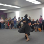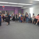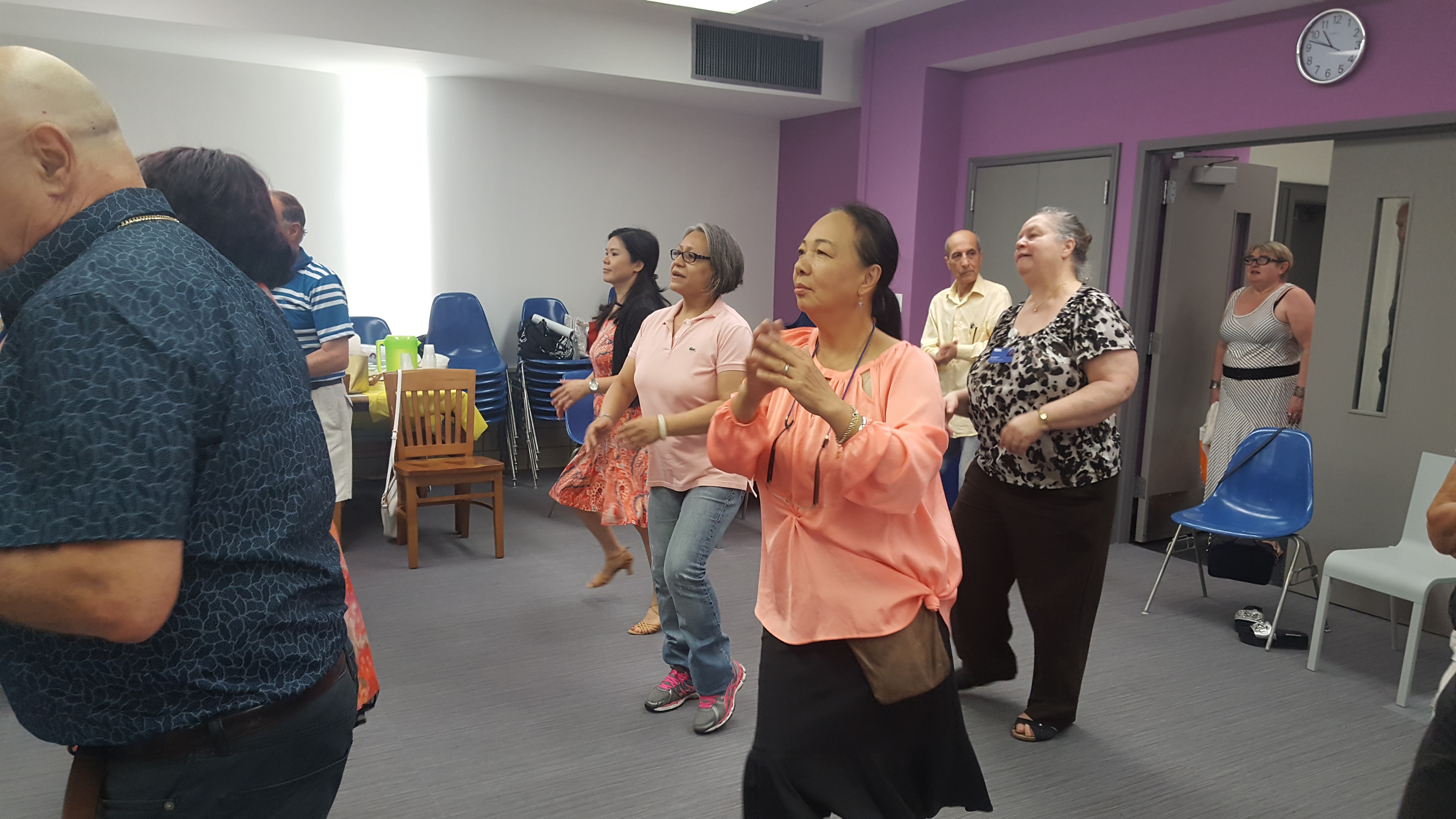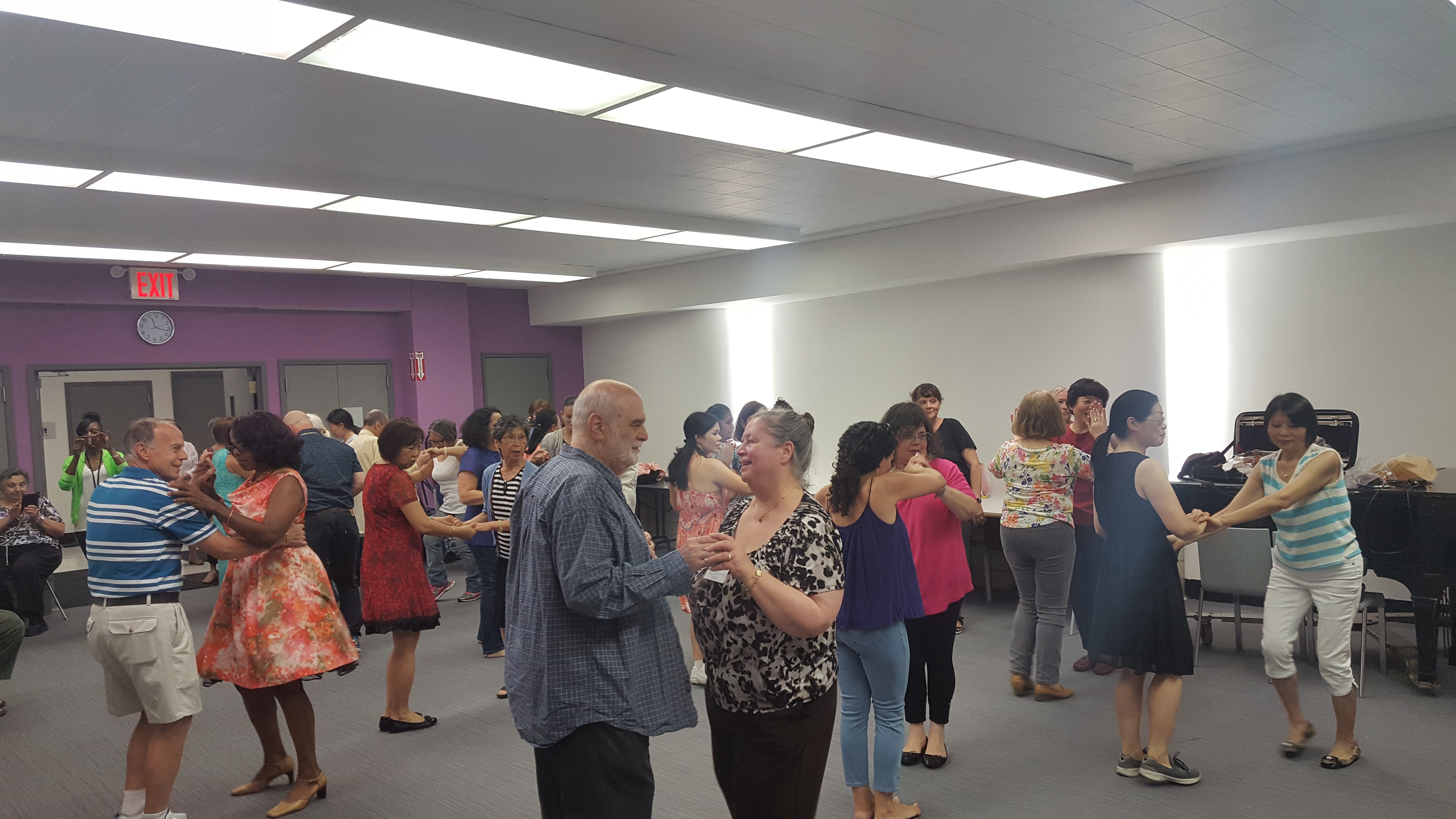 Over 50 people ended up attending the class in total, with the majority staying through the warm ups and grabbing a partner when music erupted from the speakers. Even Valentin participated in the dancing, eventually kicking off her shoes with fellow members of the community to dance across the carpet.