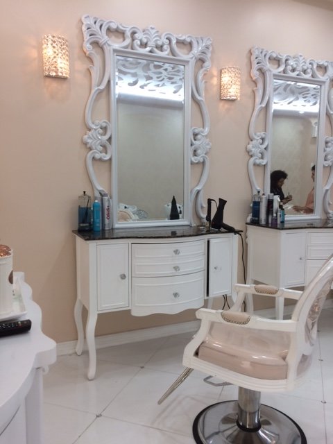 At the edge of the lobby are two sets of swinging doors that open into an oasis for all hair-covering women. The woman-only setting provides women who cover their hair with a place to relax without the worry of men walking in. According to Huda Quhshi, owner, hijab-wearing and hair-covering women no longer have to get their hair done in basements and backrooms or have towel in hand, ready to cover up in the presence of a man, but can enjoy the relaxation that comes with some pampering.