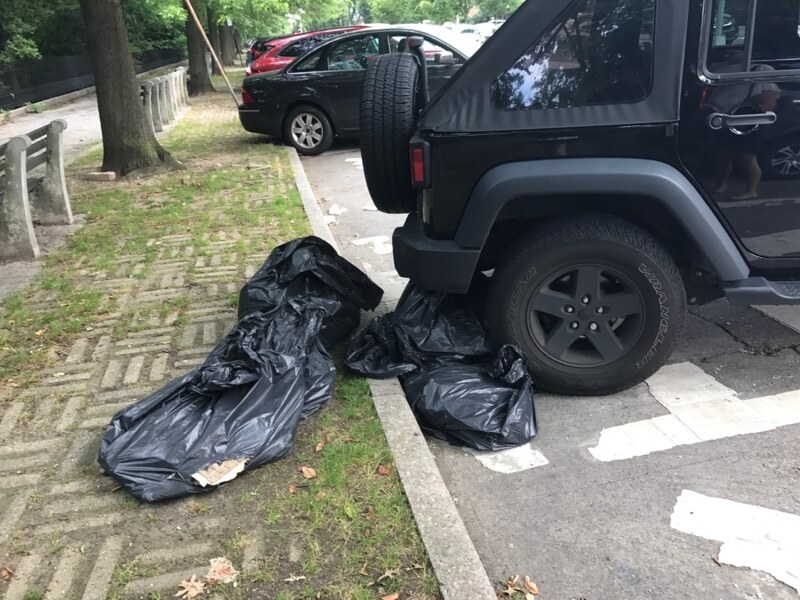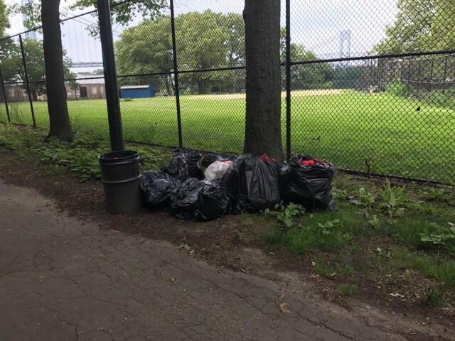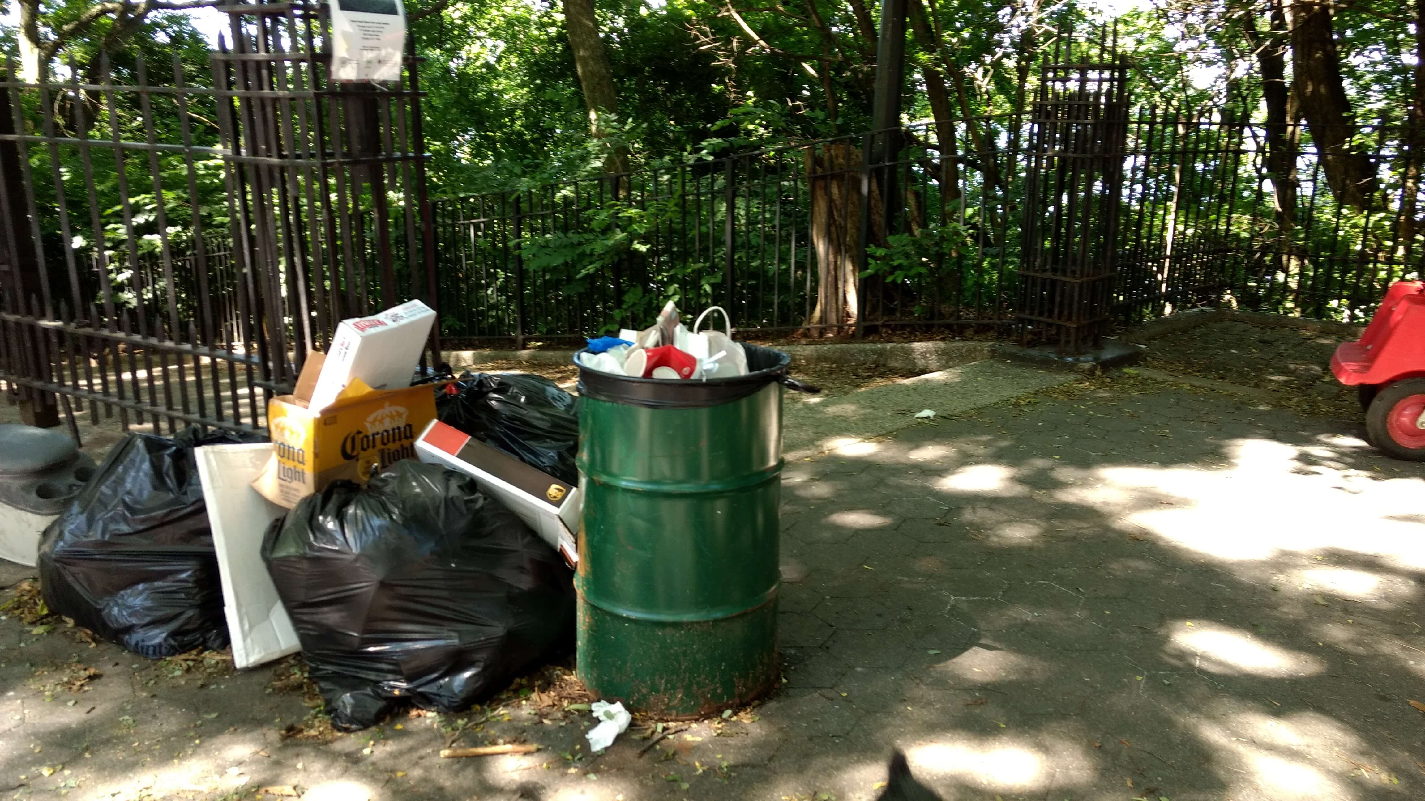“We started noticing it a couple weeks ago. This is not just one weekend of garbage, this is over a week. It’s not being picked up,” said Maryanne Santomauro, who lives across from the park near 95th Street. “There are currently eight garbage bags across from my apartment building. It started with two bags but it’s been accumulating for over a week.”