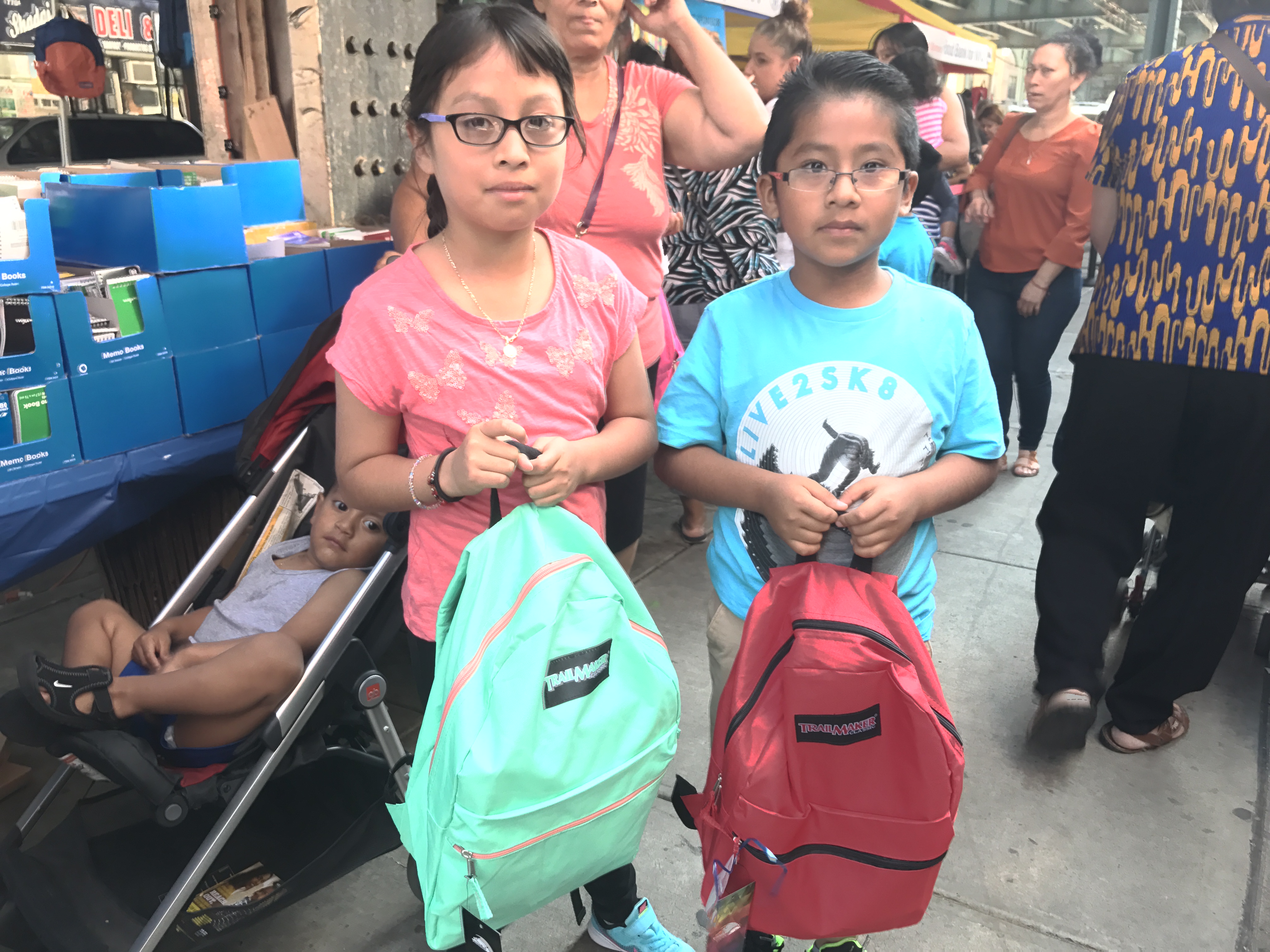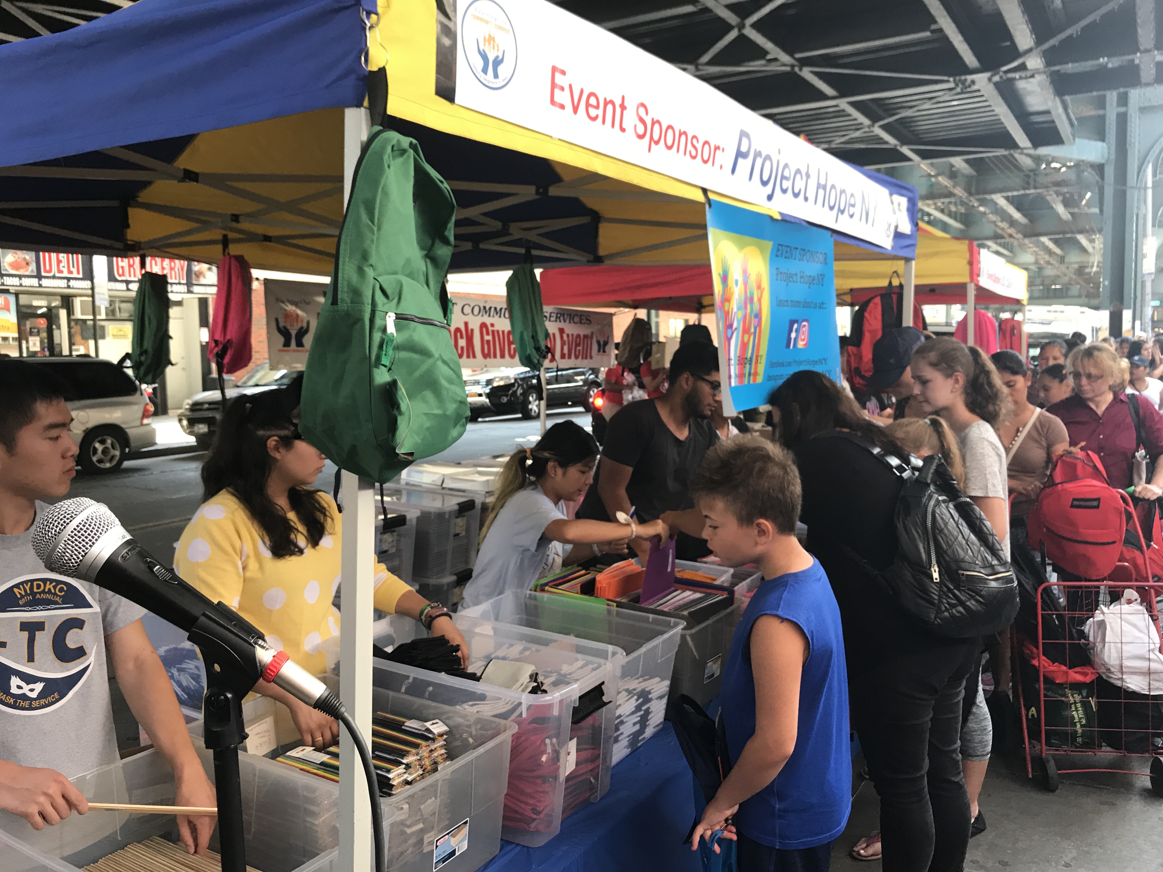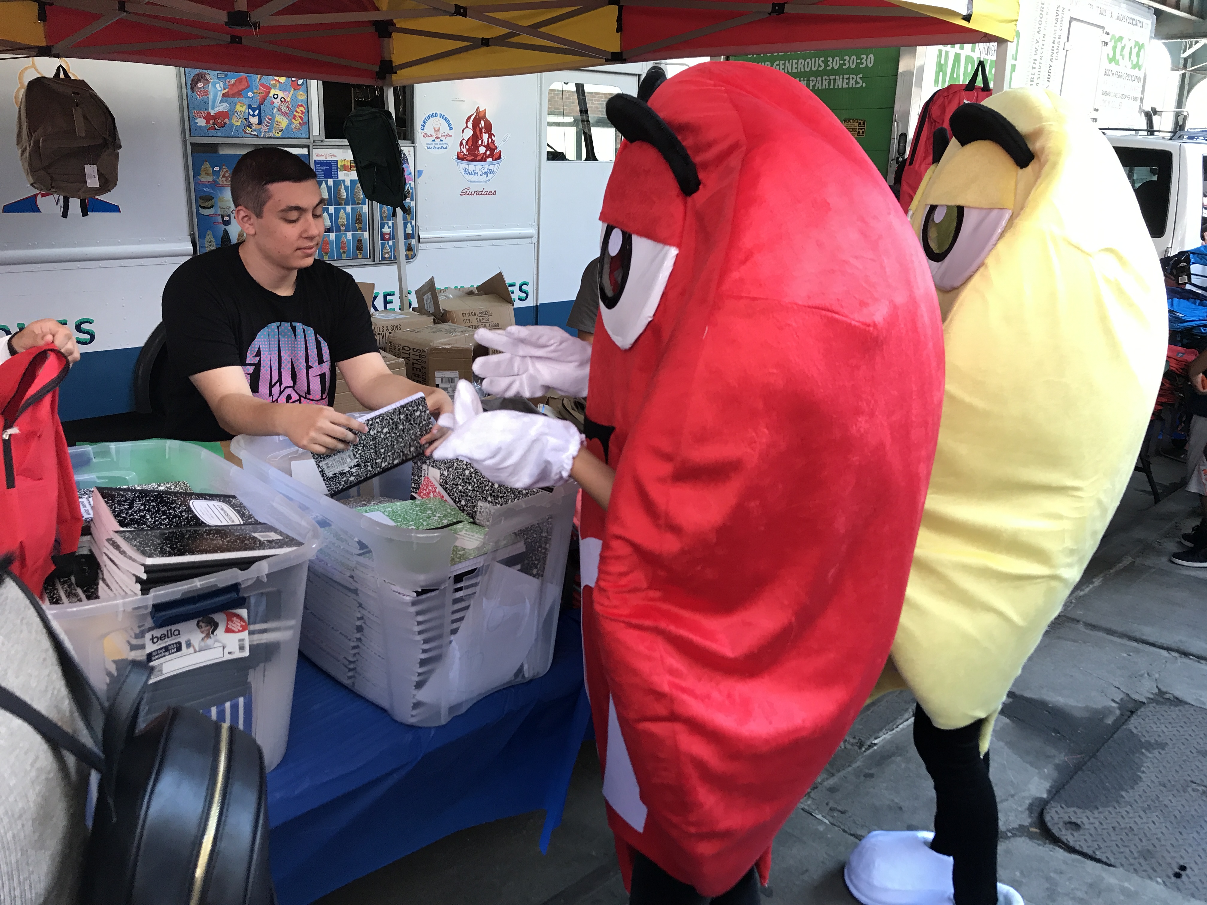 Well before noon, a line that stretched around the block formed, with around 550 kids receiving free backpacks, notebooks, pads, pens and other supplies.