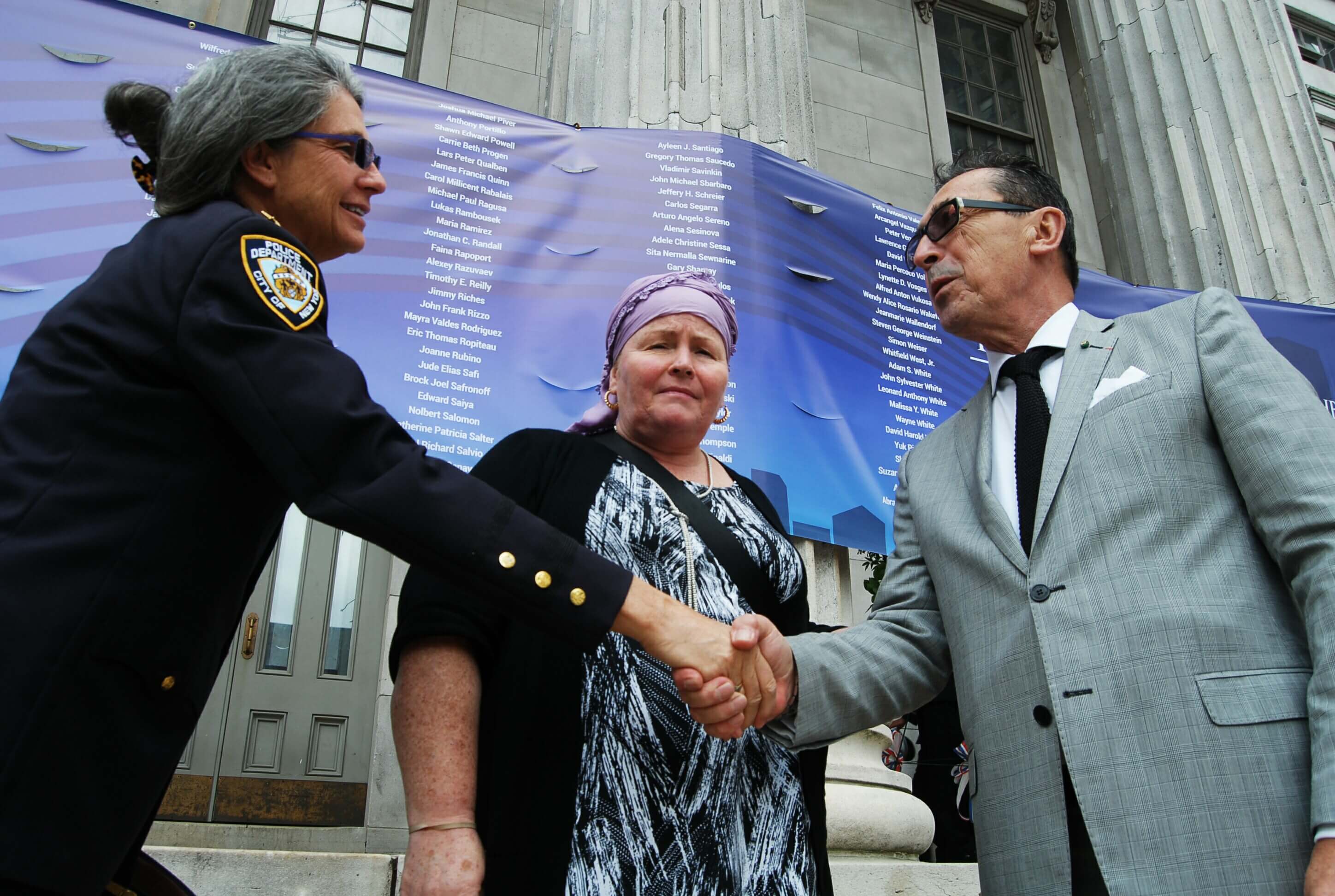 On the morning of Thursday, September 7 at Brooklyn Borough Hall, Borough President Eric Adams hosted his third annual 9/11 Remembrance Ceremony. September 11 victims and families, first responders and others attended the emotional event that honored the fallen and unveiled a banner on the steps of Borough Hall that includes the name of all 266 Brooklyn residents who died on the day.