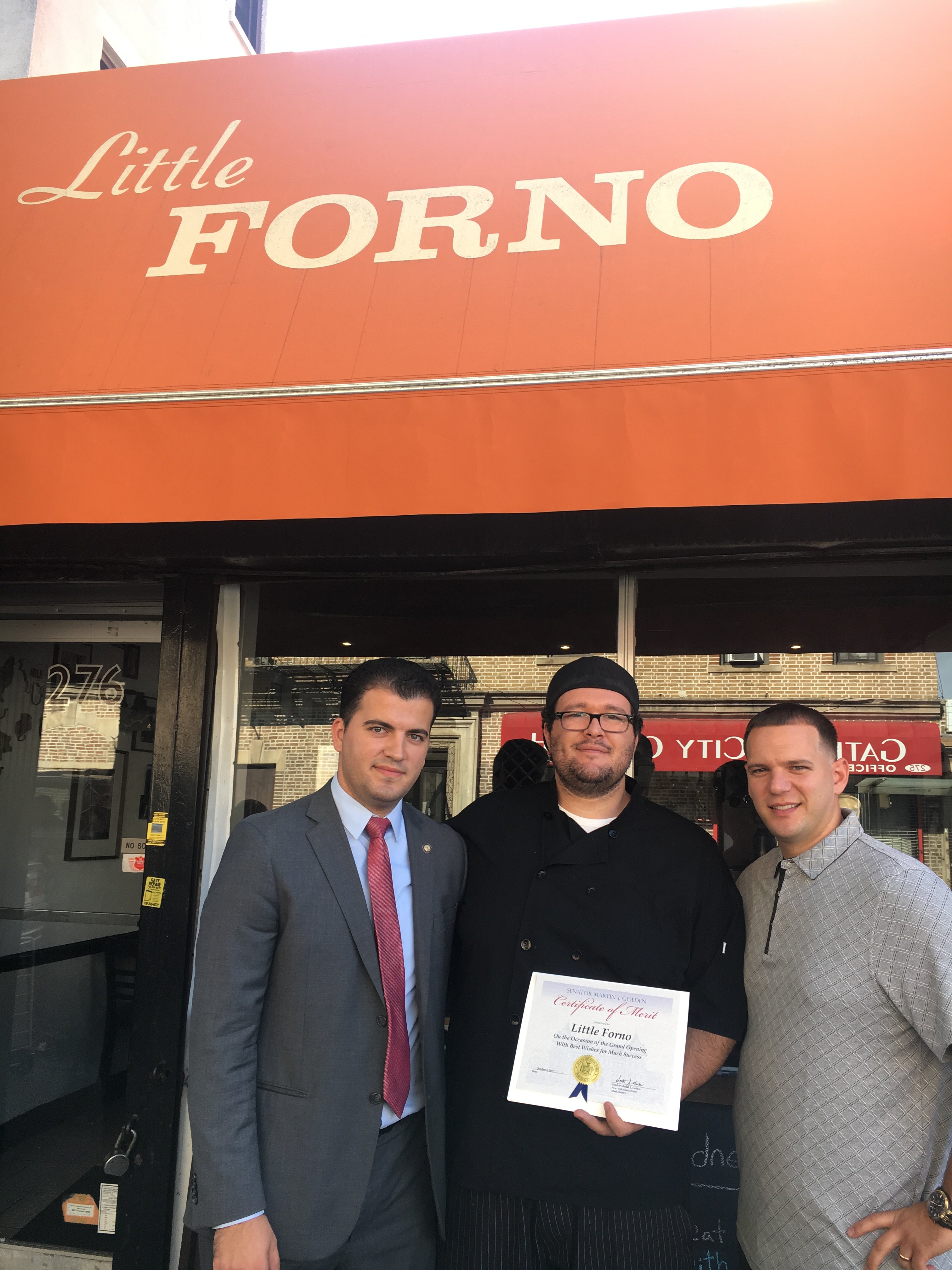 “Response has been great,” both agreed at the ribbon cutting, which saw the support of friends, family and neighborhood politicians. Assemblymember Pamela Harris sent Little Forno a citation while State Senator Marty Golden sent a representative in his place to congratulate the team in person.
