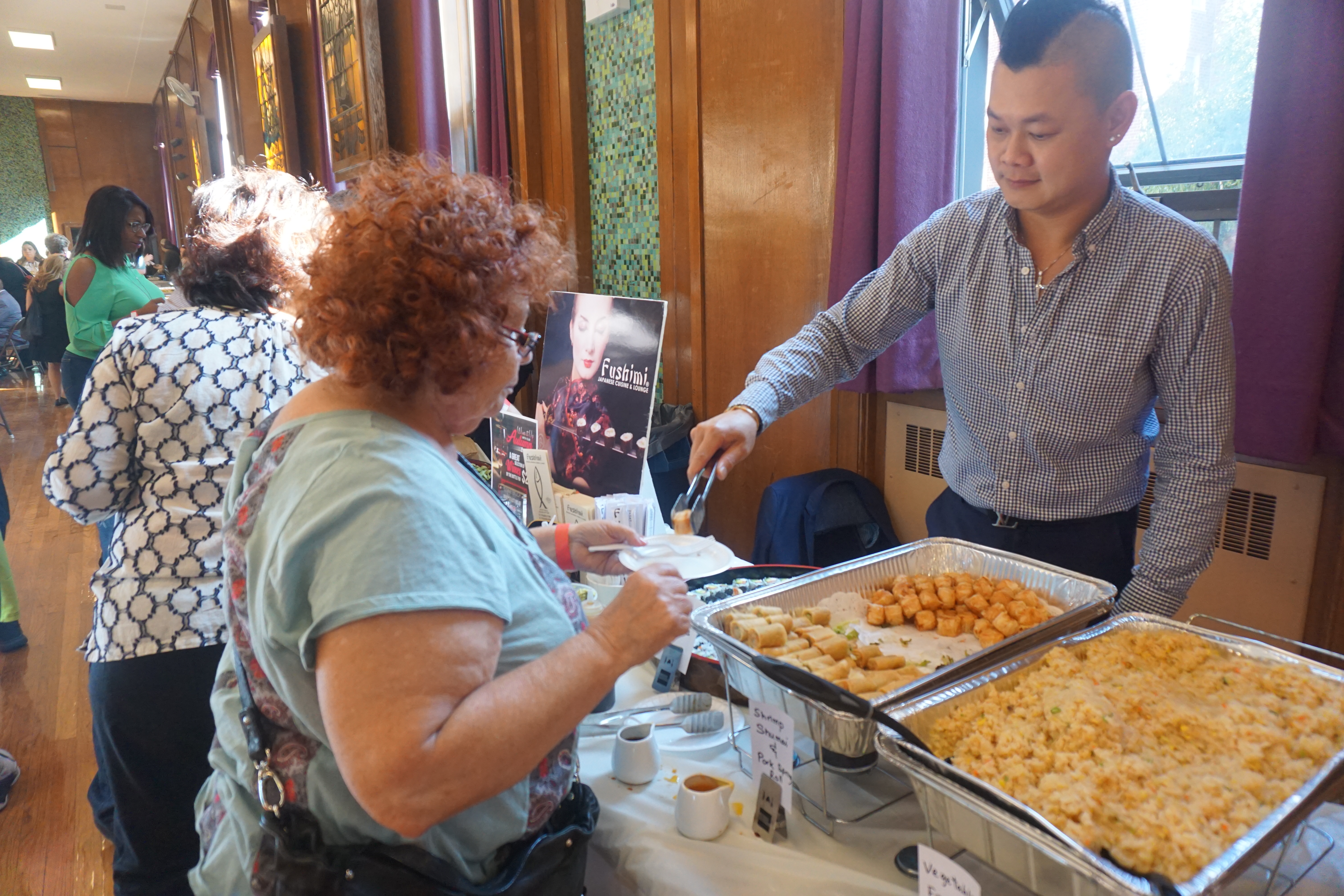 Fushimi, which brought both sushi and cooked options to the event, provided a bountiful spread — among its offerings were yummy Shrimp Shumai and vegetable dumplings (Gyoza), both of them neat little morsels enhanced by sweet soy dipping sauce that teased the palate.