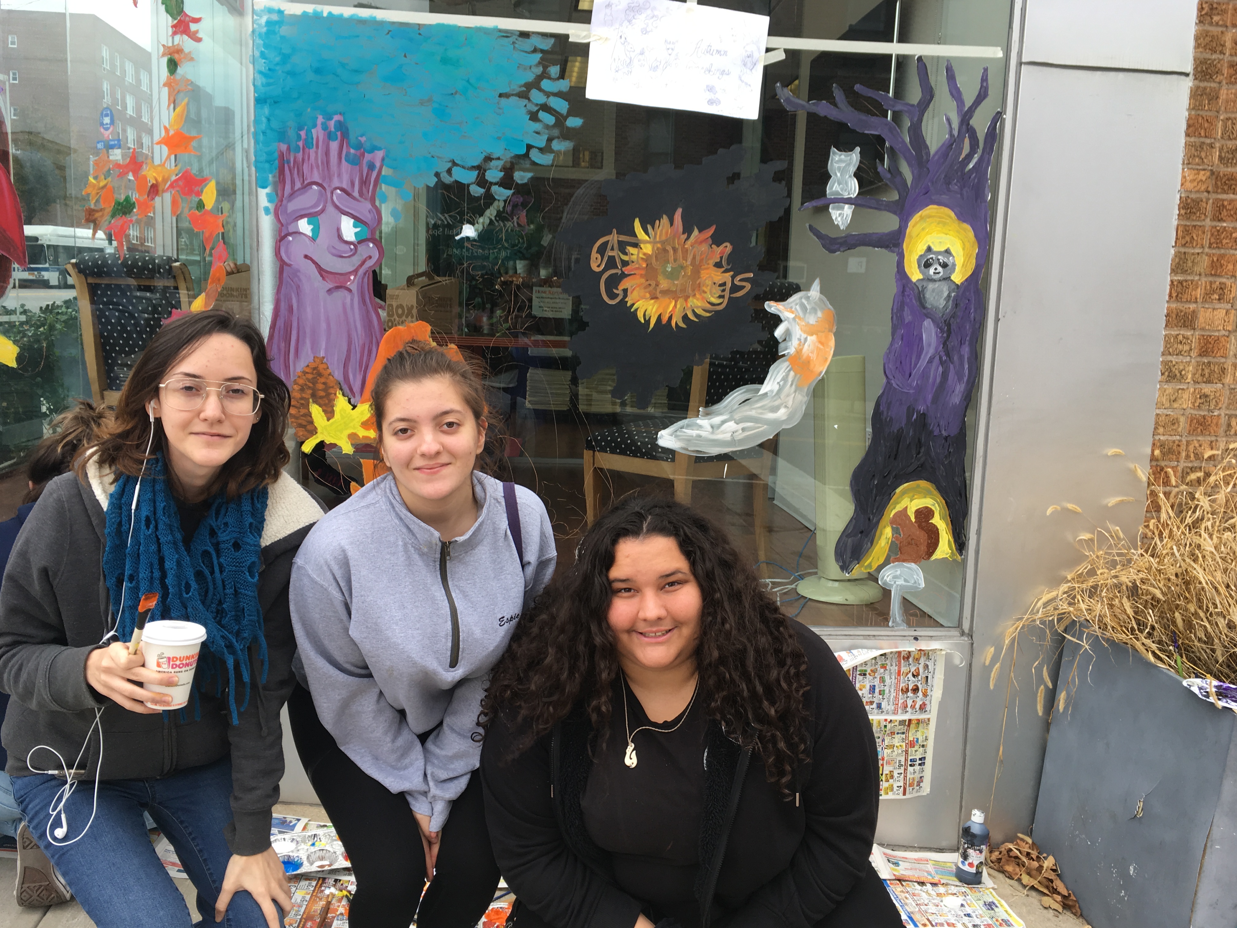 “I think it definitely connects them to the community, especially since some of the students don’t live in the immediate neighborhood,” Suhr said as her students painted the windows of the Home Reporter office. “It’s nice to have people think of Fontbonne and the art program in terms of what they’re doing.”