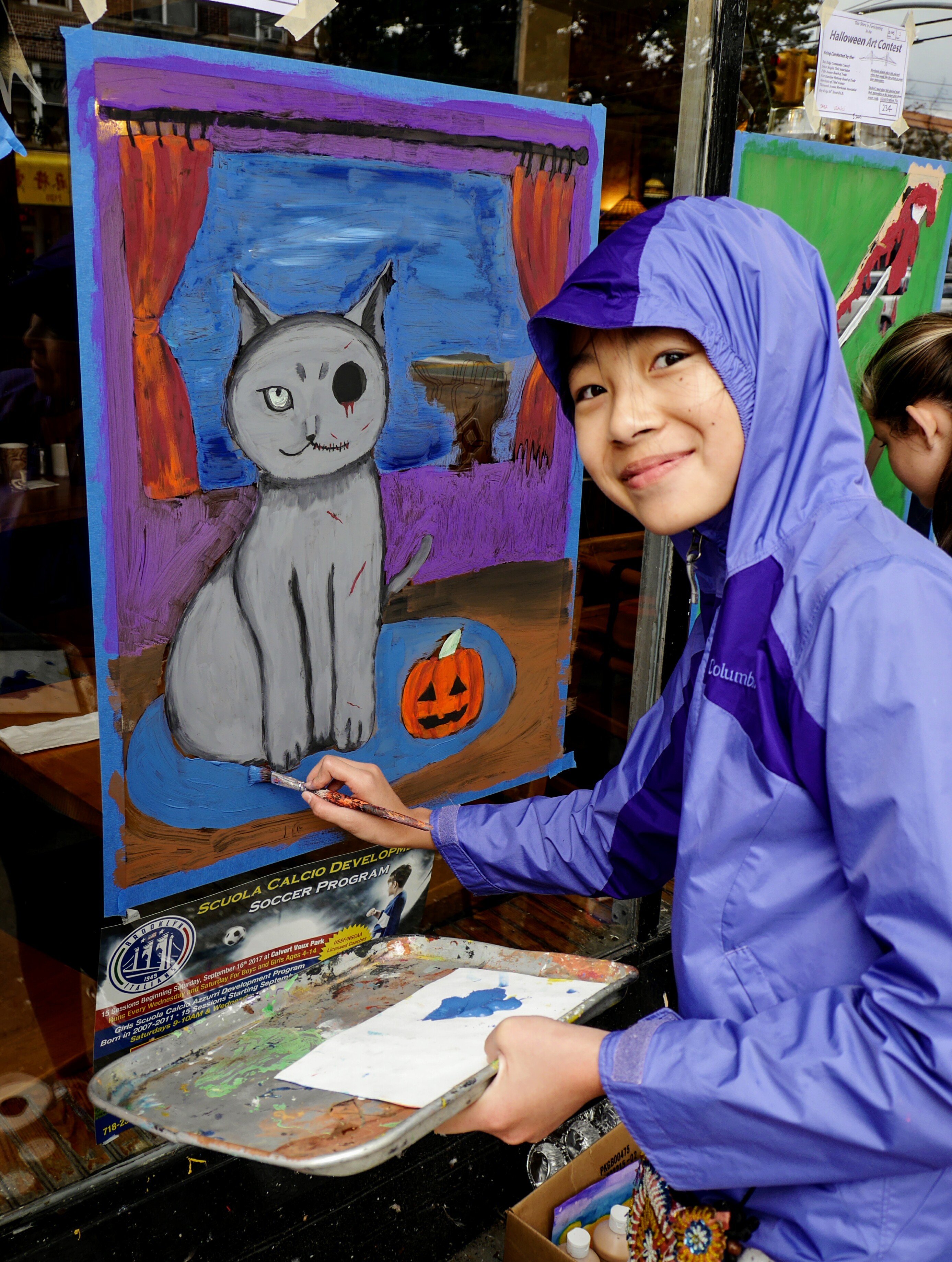 The event — hosted yearly by the Bay Ridge Community Council (BRCC) — sees students from elementary school through high school hitting the pavement and painting seasonal scenes on the windows of local businesses.