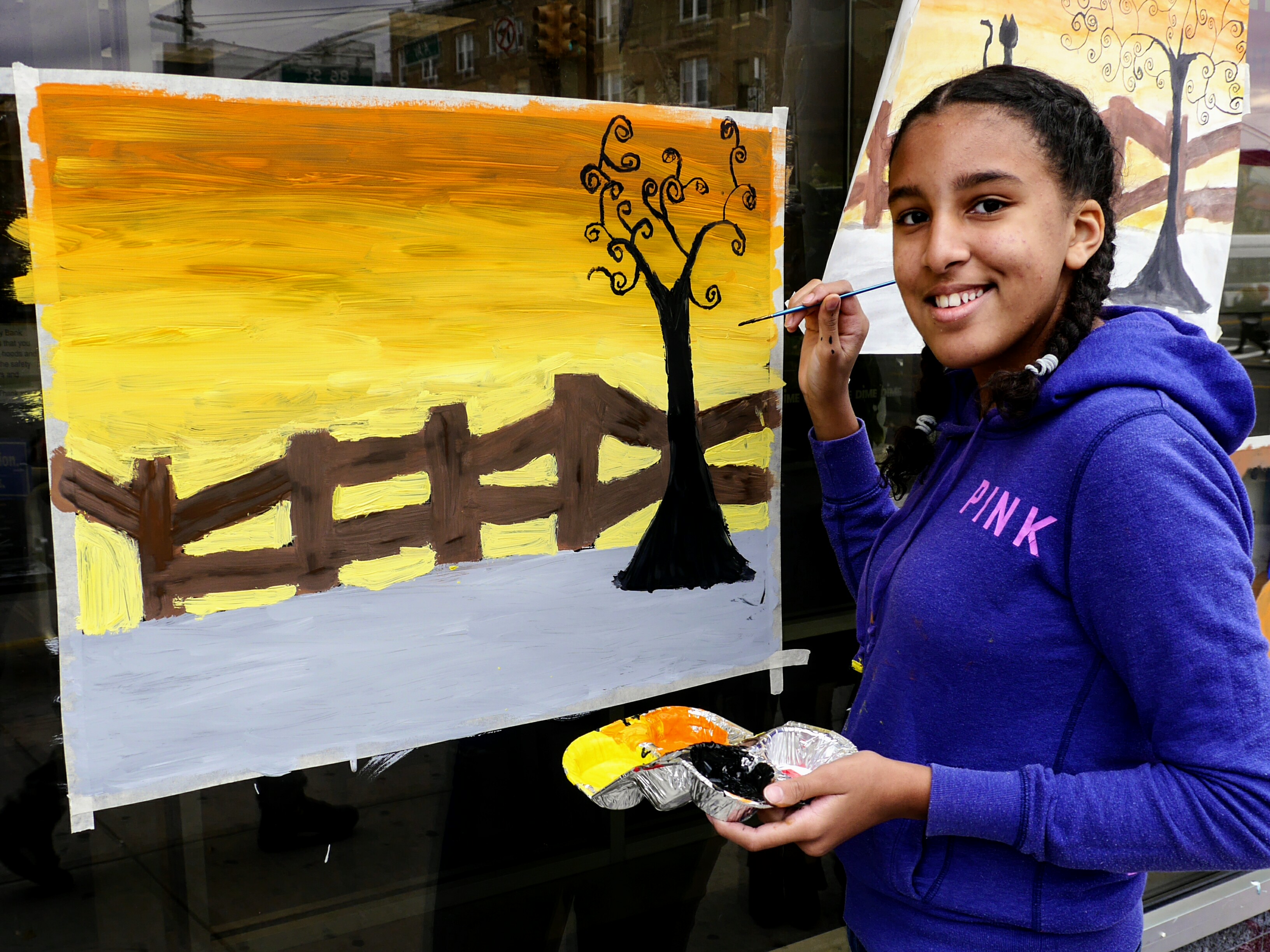 On the other hand, students Kristina Zloklikovits, Spiridoula Hatziminadakis and Teressa Martinelli had all painted windows before, with St. Patrick’s Catholic Academy, I.S. 227 and St. Ephrem’s, respectively. Nevertheless, they were excited to hit the pavement once again.