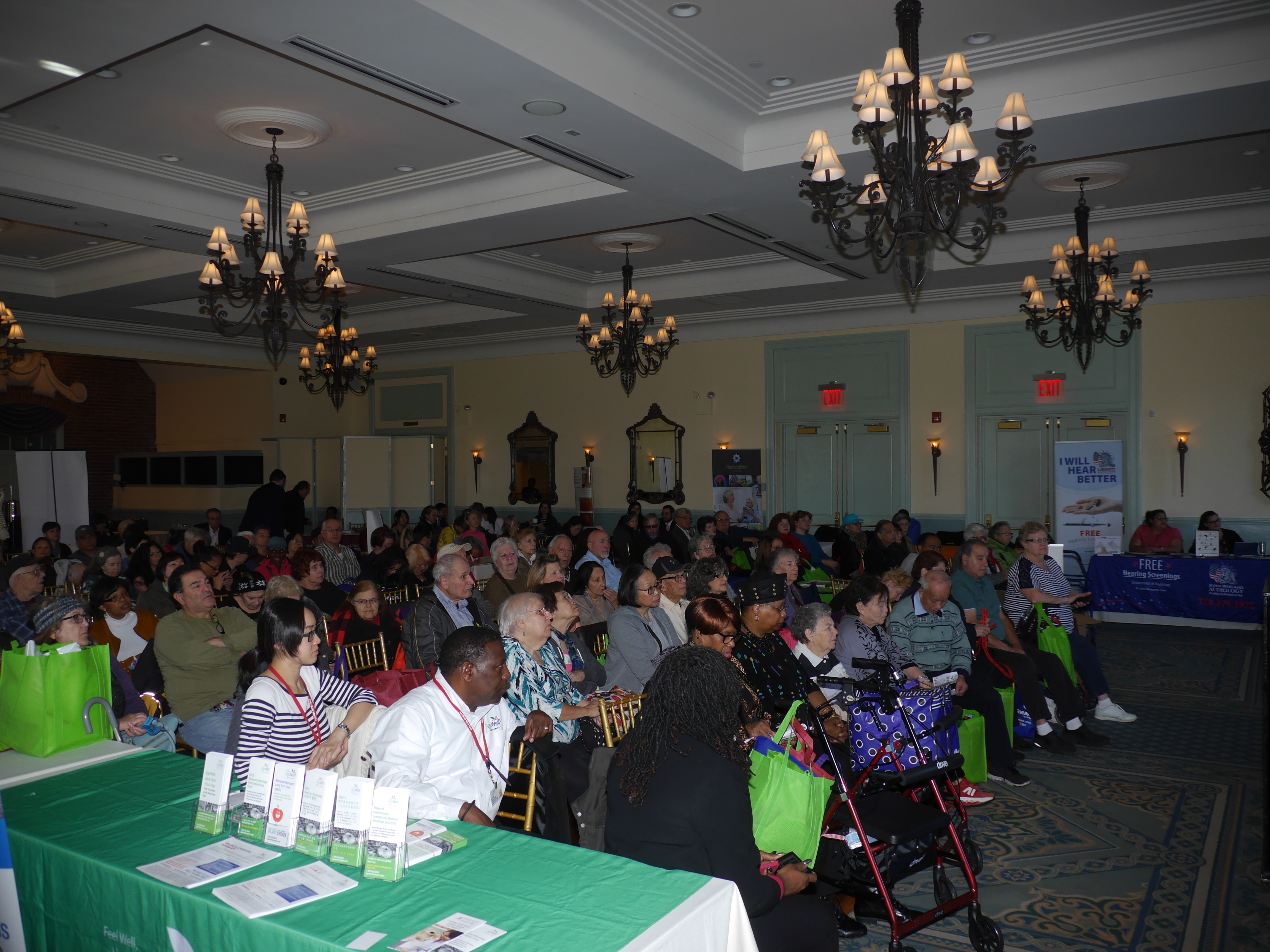The exhibitors were AARP; Aetna Better Health New York; AgeWell New York; All Health Diagnostic & Treatment; Boulevard Home Care Associates; Brooklyn Integrative Health Care; Bay Ridge Holistic Healthcare; Caring People; Clear Captions; Cooper/Panariello Eye Institute; Etain Health; HamasikCare; Humana; Island Shores; Liberty Hearing; New York State Department of Public Service; New York Department of Aging; Ohel Bais Ezra; ProHealth Urgent Care; Right at Home Care; Senior Insurance Solutions/Allstate; Silverlake Care Center; The Allure Group; Tivity Health, Silver Sneakers and VillageCare Max.