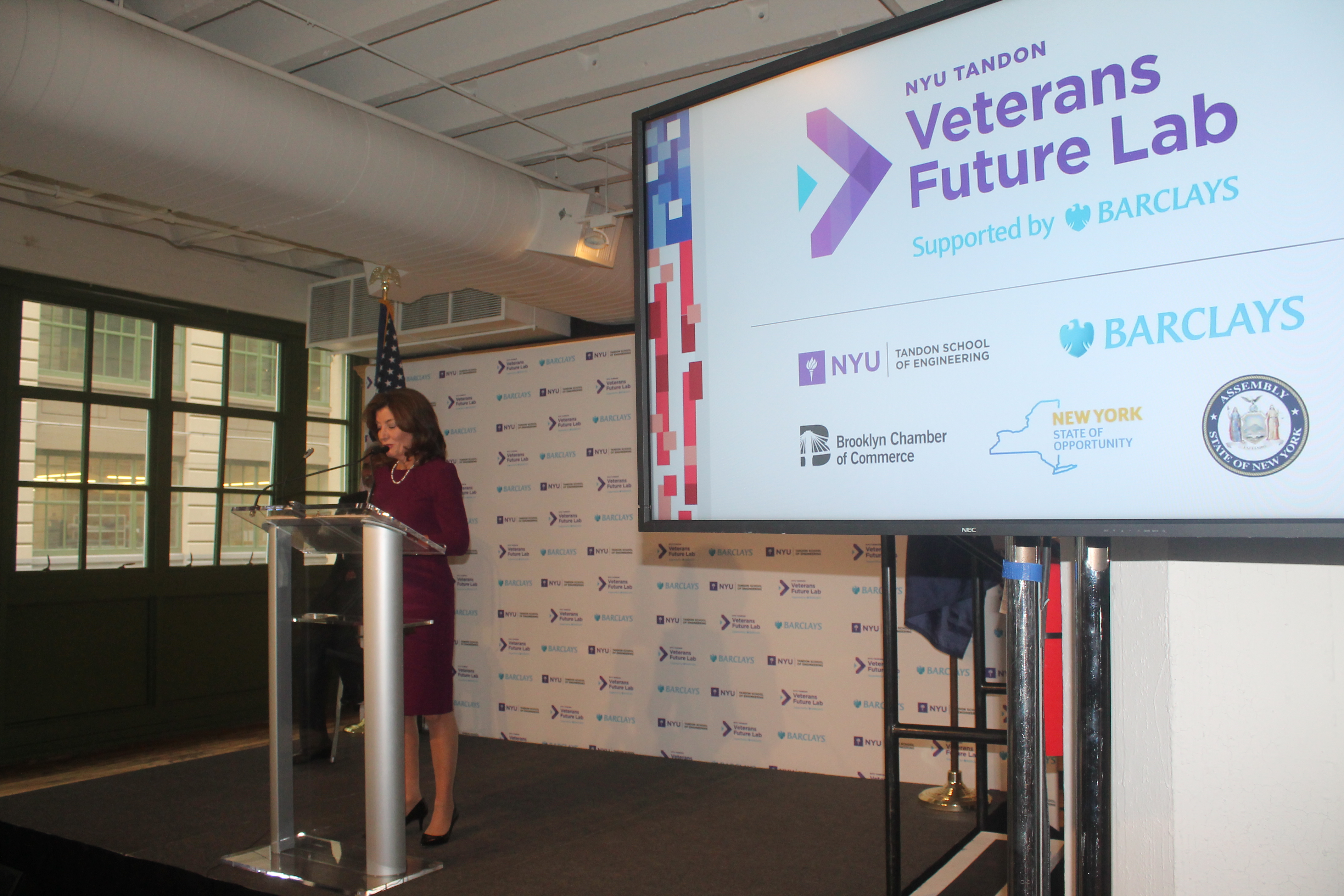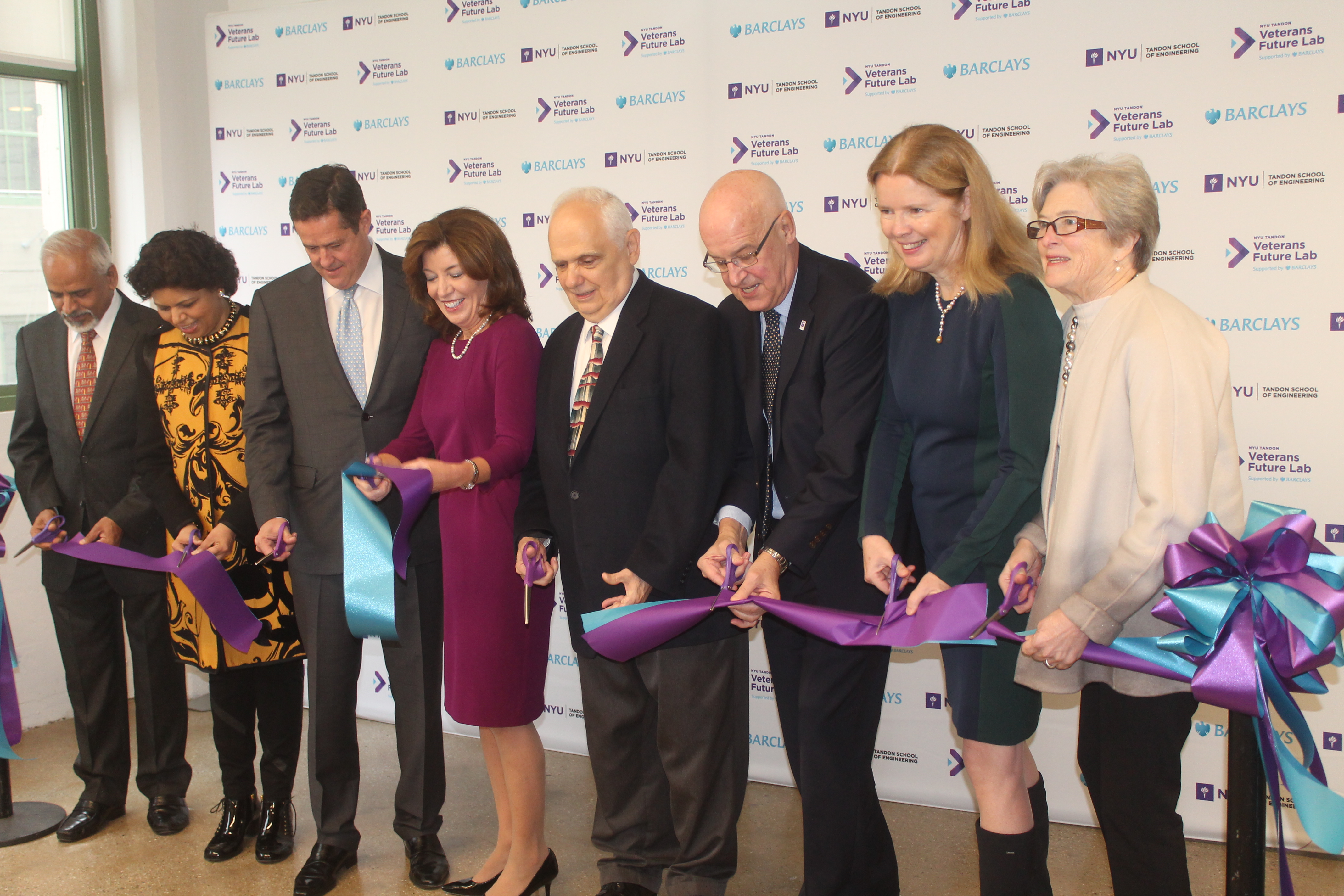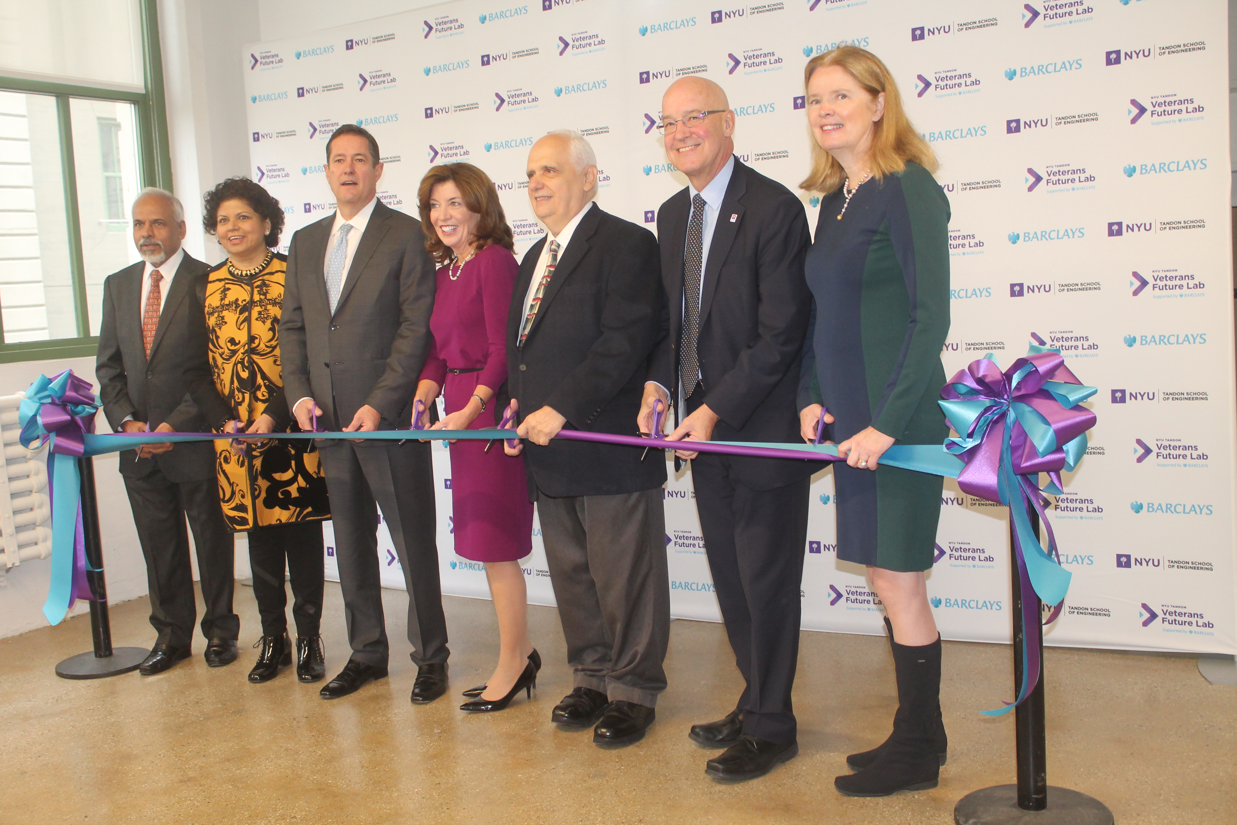 “This is a very happy day to be celebrating,” said Andrew Hamilton, president of NYU. “This partnership of an educational institution NYU Tandon School of Engineering, the city of Brooklyn, the state of New York and Barclays, it’s just a very special connection. We all see that when we work together, great things happen and I think for me, being with all of you celebrating the opening of the Veterans Future Lab is a special moment on a special weekend.