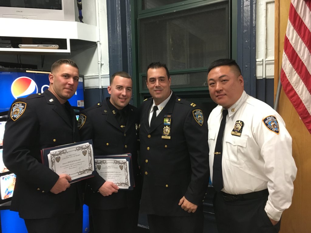 “Recognizing the need for immediate action and without regard for their own personal well-being,” he continued, “Police Officers Sezen and Loria grabbed the woman and dragged her back into the apartment,” where she was held until she could be “treated by EMS personnel. Without question, the quick and decisive actions…saved the life of a young woman in desperate need of our help.”