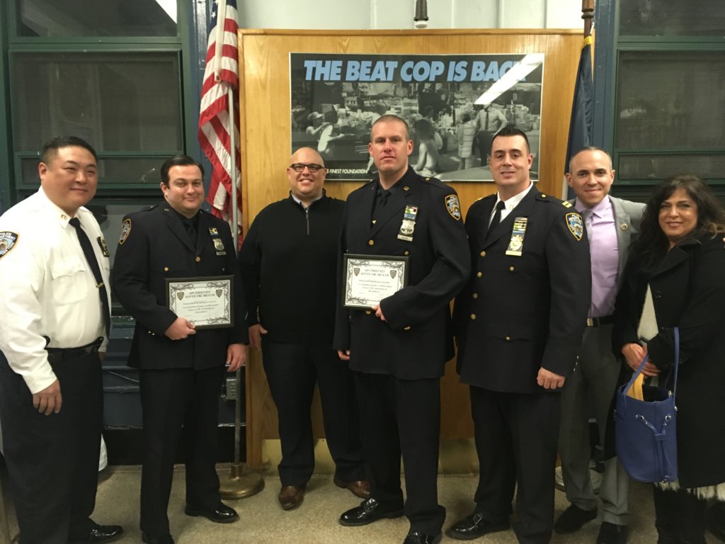 For identifying and apprehending a local woman who was responsible for some 700 fake phone calls to 911 over the course of about a year, two 62nd Precinct police officers were honored as Cops of the Month for January.