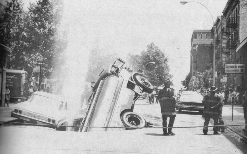 While sinkholes seem to have dominated the headlines at various points in the past few years — with massive ones causing months-long shutdowns at 64th Street and Fifth Avenue and 92nd Street near Third Avenue, for example — they are hardly a new problem in southwest Brooklyn. This photo, from the files of this newspaper, shows a yawning sinkhole in Sunset Park that was literally large enough to swallow a truck.