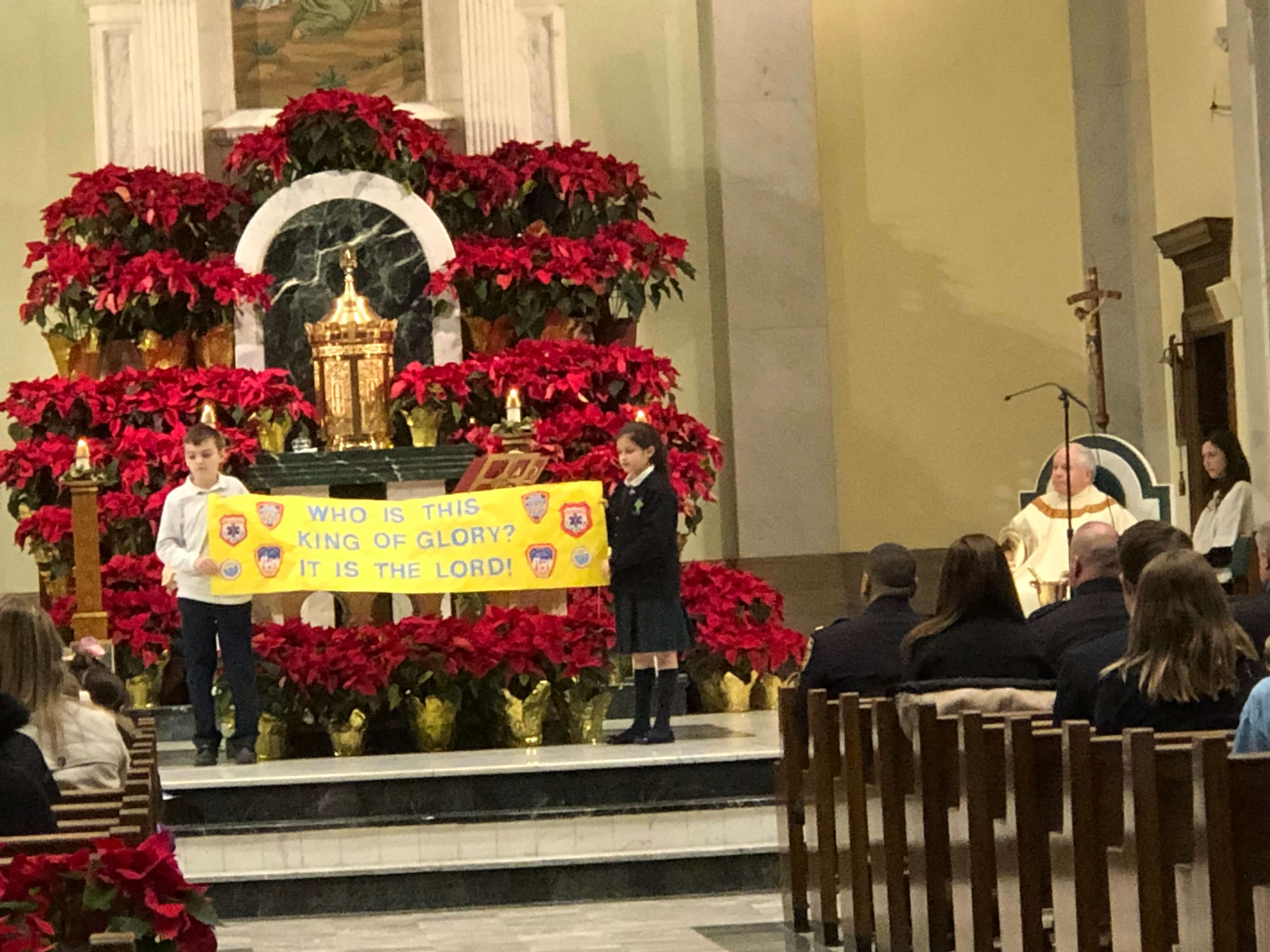 The morning started with a special mass, celebrated by St. Patrick’s pastor Monsignor Michael Hardiman, and attended by the school’s entire student body, faculty, parents who are first responders and members of the 68th Precinct. Students participated in the mass by taking part in the procession, singing in the choir and altar serving.