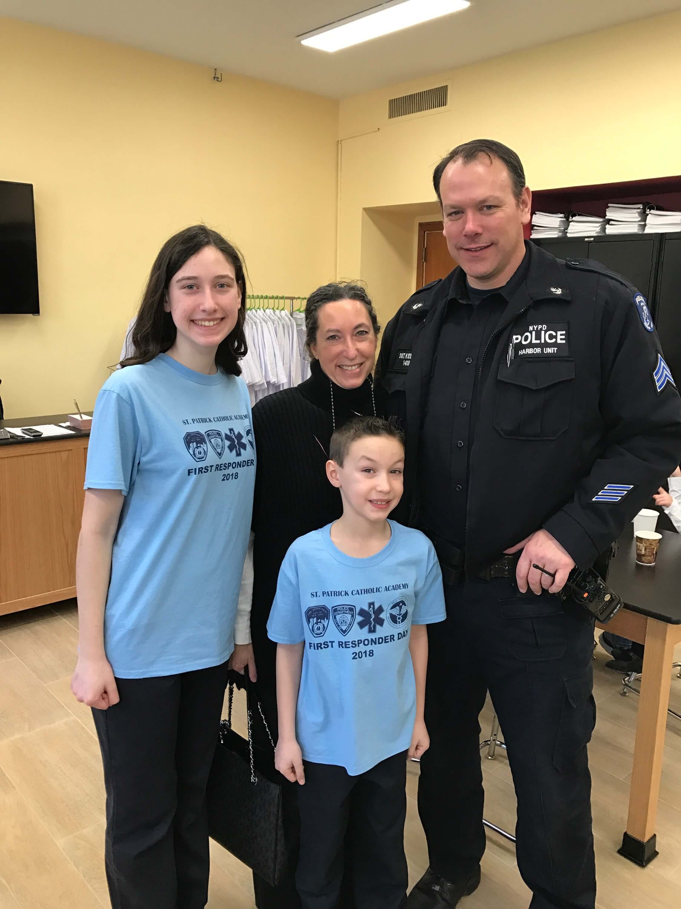 “I love this day,” said Gina Keenan, who teaches seventh grade social studies at St. Pat’s, where she, herself, once went. Her husband, Kevin, who works for NYPD Harbor Control, was present for First Responders Day as well as their two children, Shannon and Matthew, both of whom are students at St. Pat’s. “It’s such a wonderful way to honor our first responders.