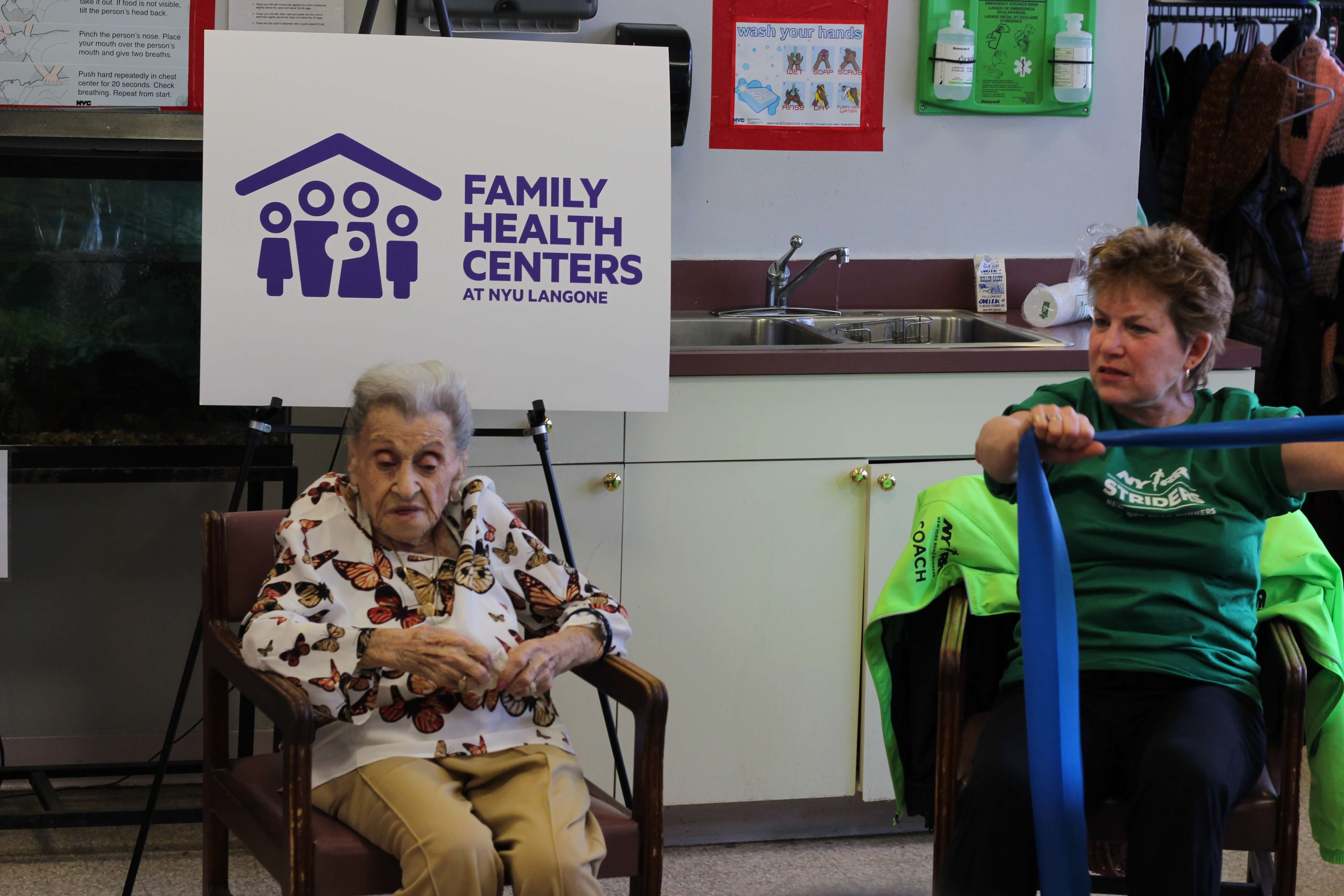Before the party, Sohn attended her weekly workout with NYRR, during which she and other seniors sat in chairs performing exercises with the help of a coach.