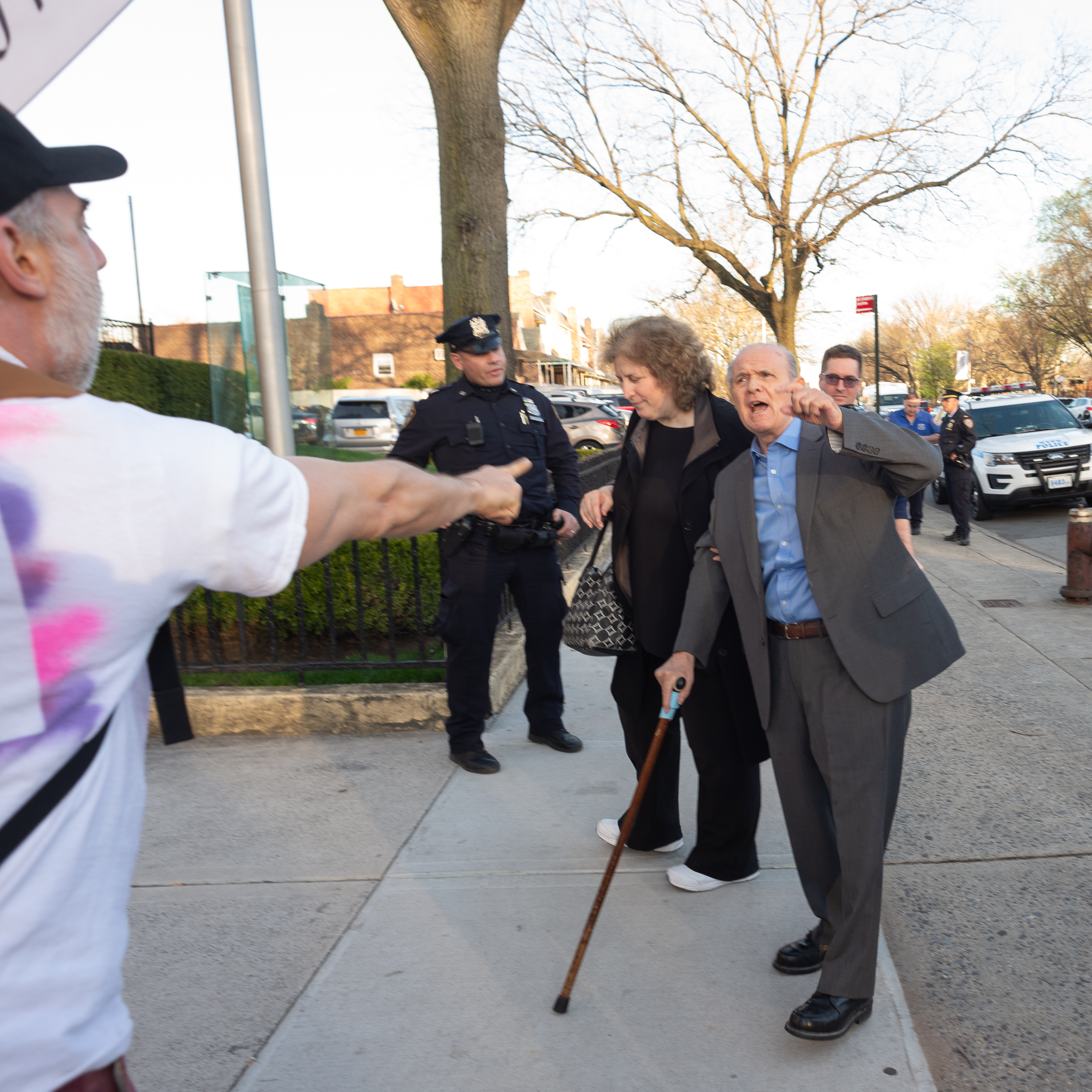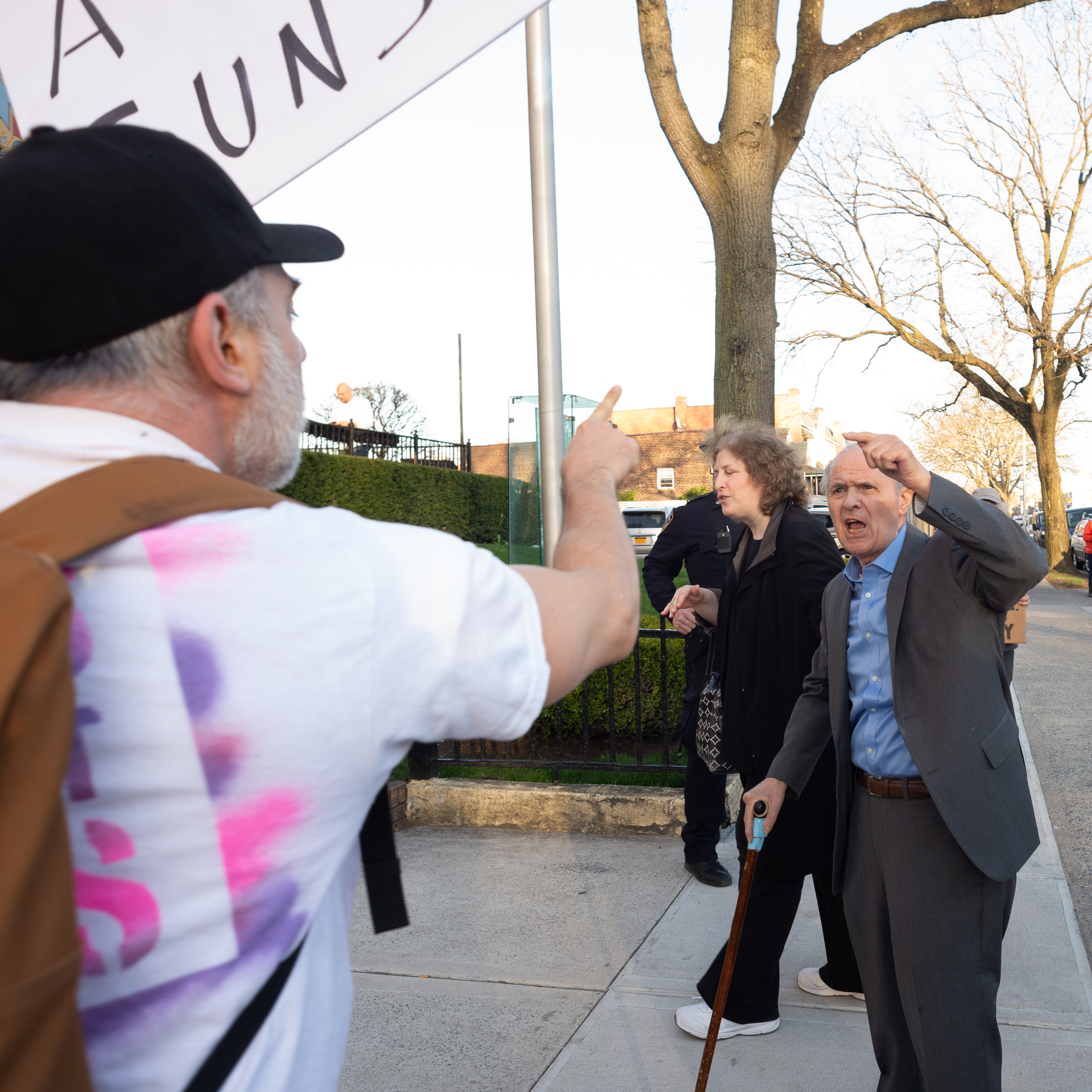 At least one local counter-protester, lifelong Bensonhurst resident and anti-protest protester Joe Abruzzo, stood his ground on the venue’s corner to hoist a Gadsden flag in support of the group’s right to meet, while another – on his way into the event – flipped protesters the finger.