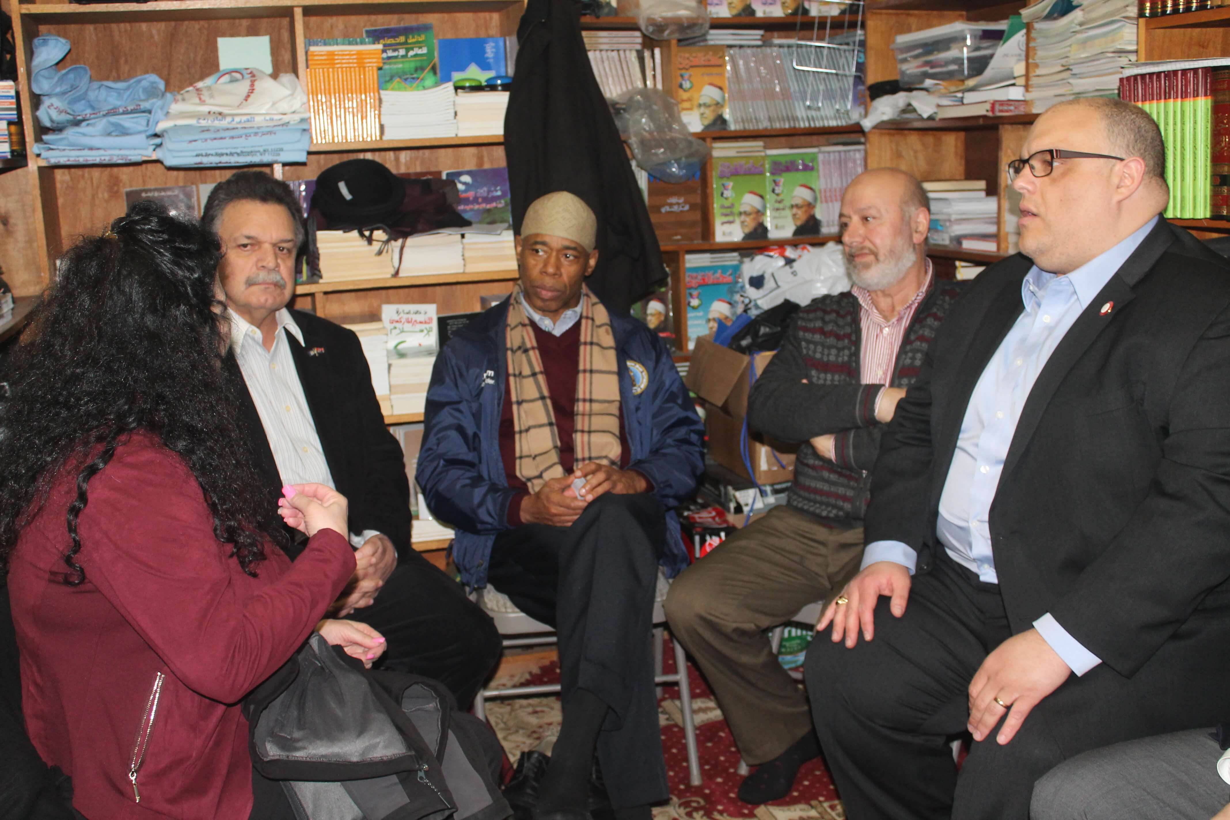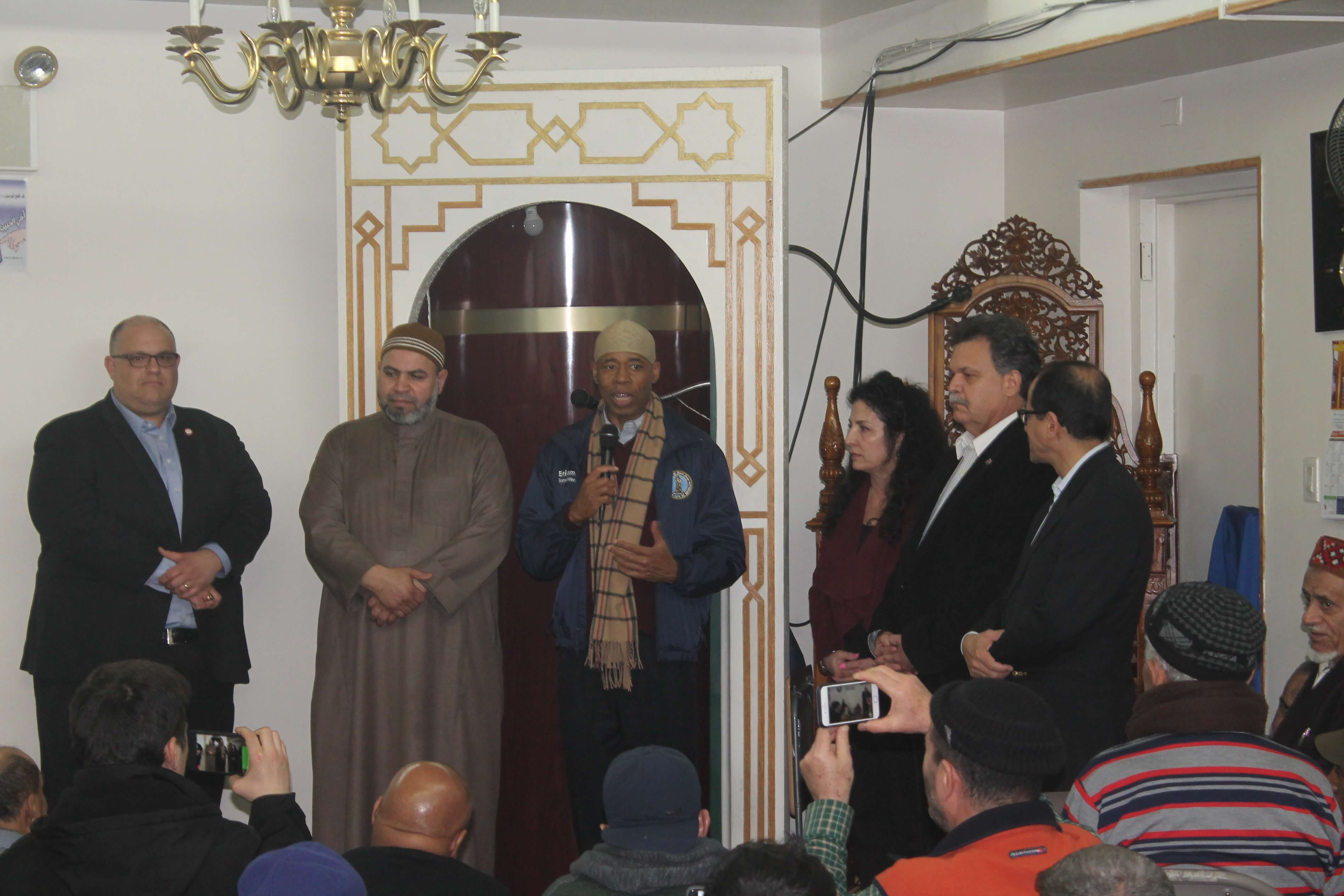 To address any fear the flyer might have generated and to remind them that their neighbors stand in solidarity with them, Adams and company joined Muslims in prayer at the Islamic Society of Bay Ridge, 6807 Fifth Avenue, on Tuesday.