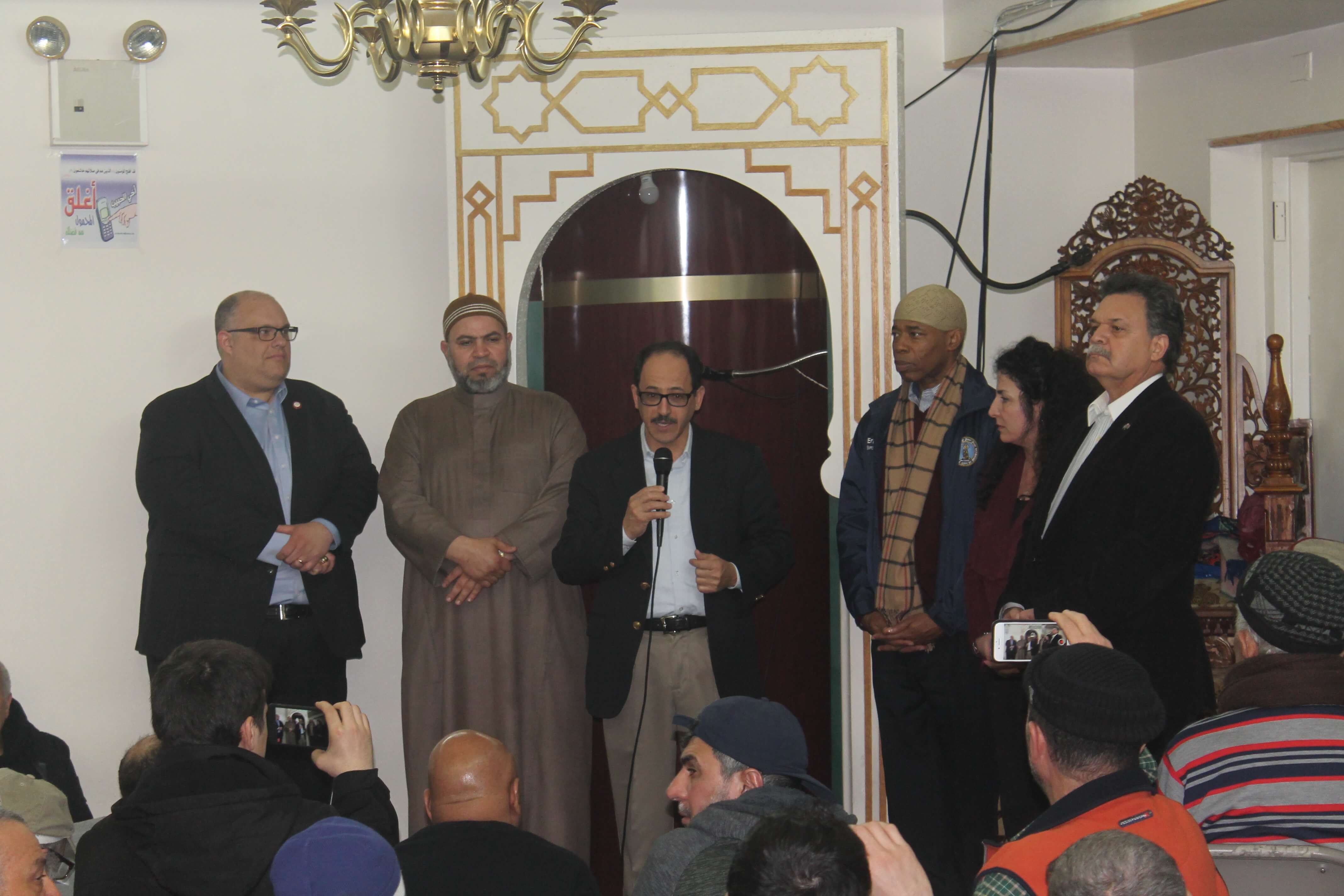 “We were all horrified with the letter that started in the UK and made its way into America through the internet,” said Adams. “Any attack on one religious life is an attack on all religious ways of life. It will start with the Muslim community, end up with the Christians, the Polish, the Jews, so we just want to send a loud message that we stand in unison with you and you are part of not only our Brooklyn family, but our New York family and America’s family. Regardless of what happens in Washington D.C., right here in the borough, we have a welcome mat for all groups.”