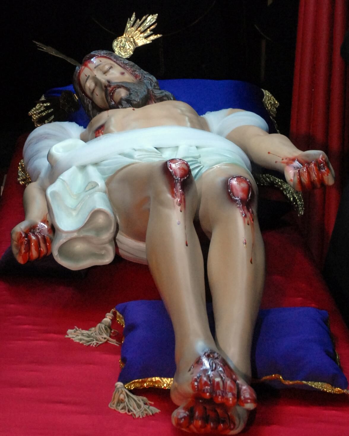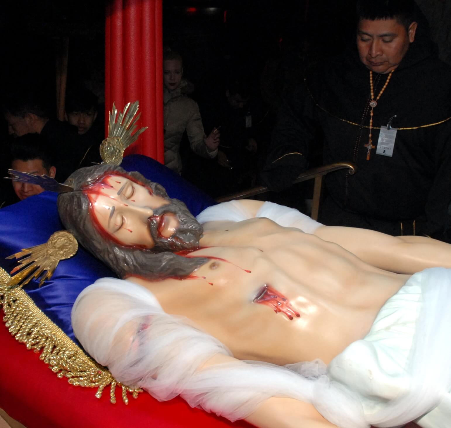 Participants held up large black crosses as well as a statue of Christ on the cross as they followed “in the footsteps of Jesus Christ”. Hymns were sung and participants held candles aloft.