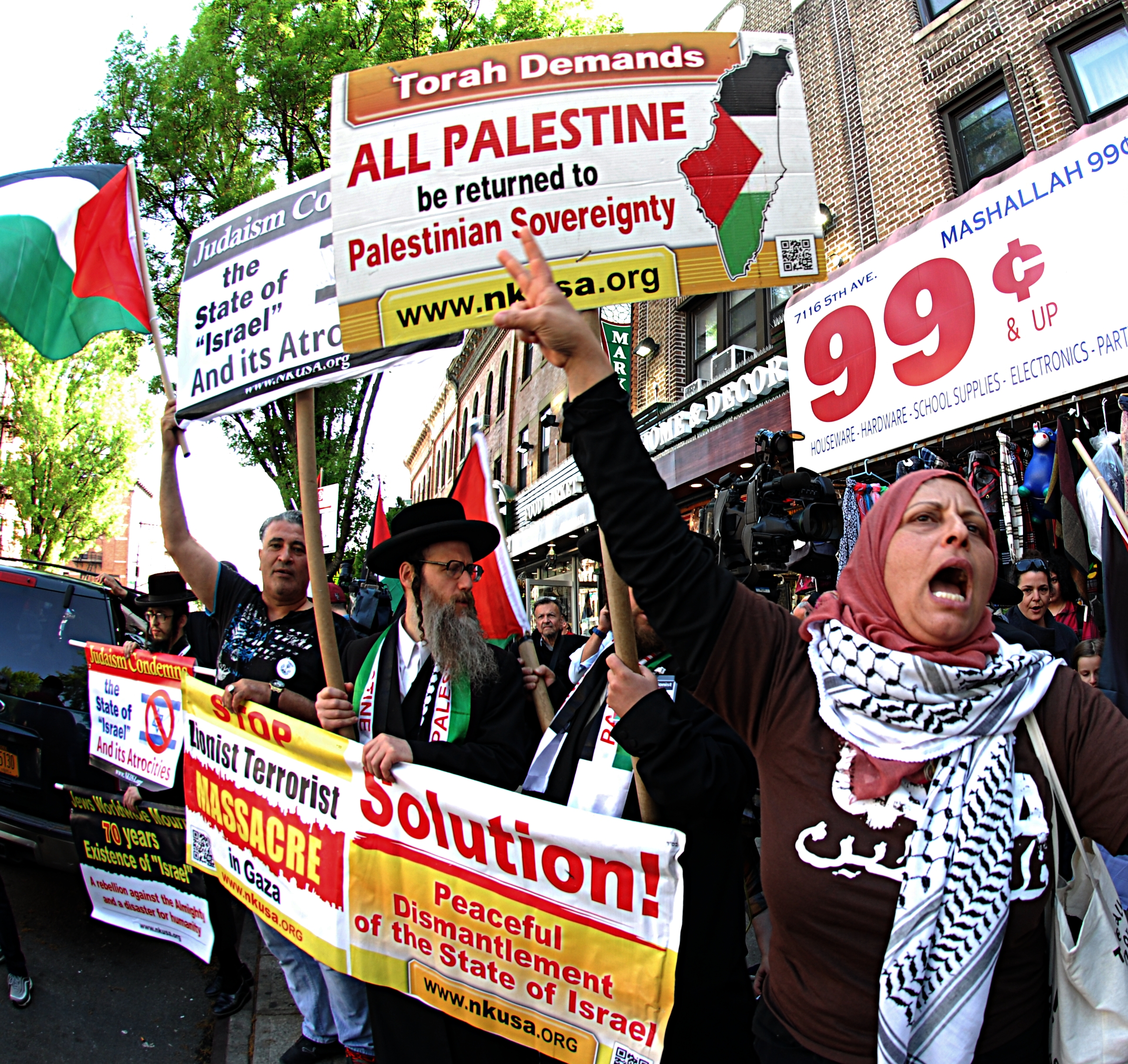 Not all protesters were of Palestinian descent. Ralph Perfetto, a Bay Ridge activist, referred to the map in the back of his Bible that referred to the land in dispute as belonging to Palestine during the time of Christ. “I am ashamed of silent Christians,” he said.