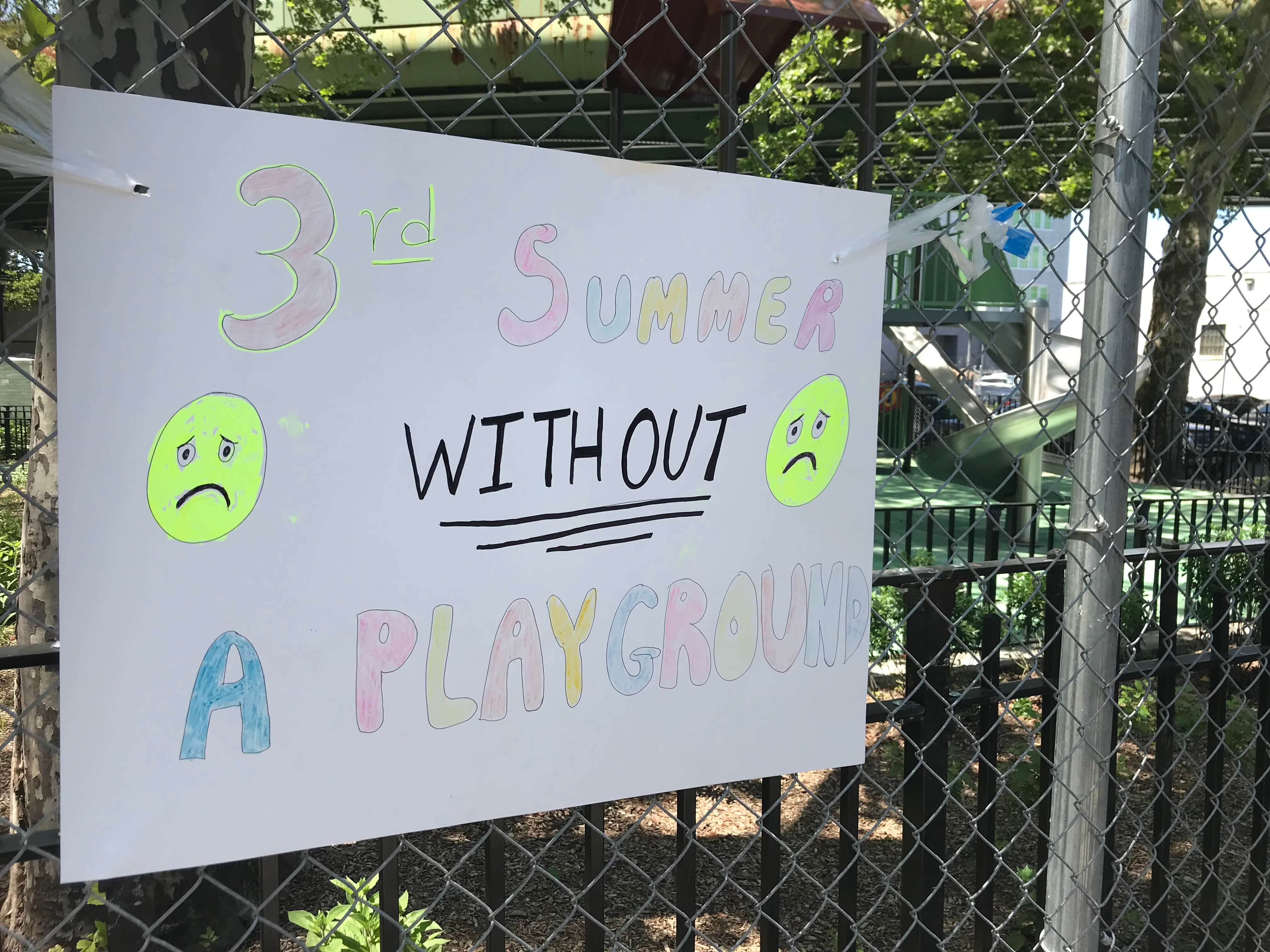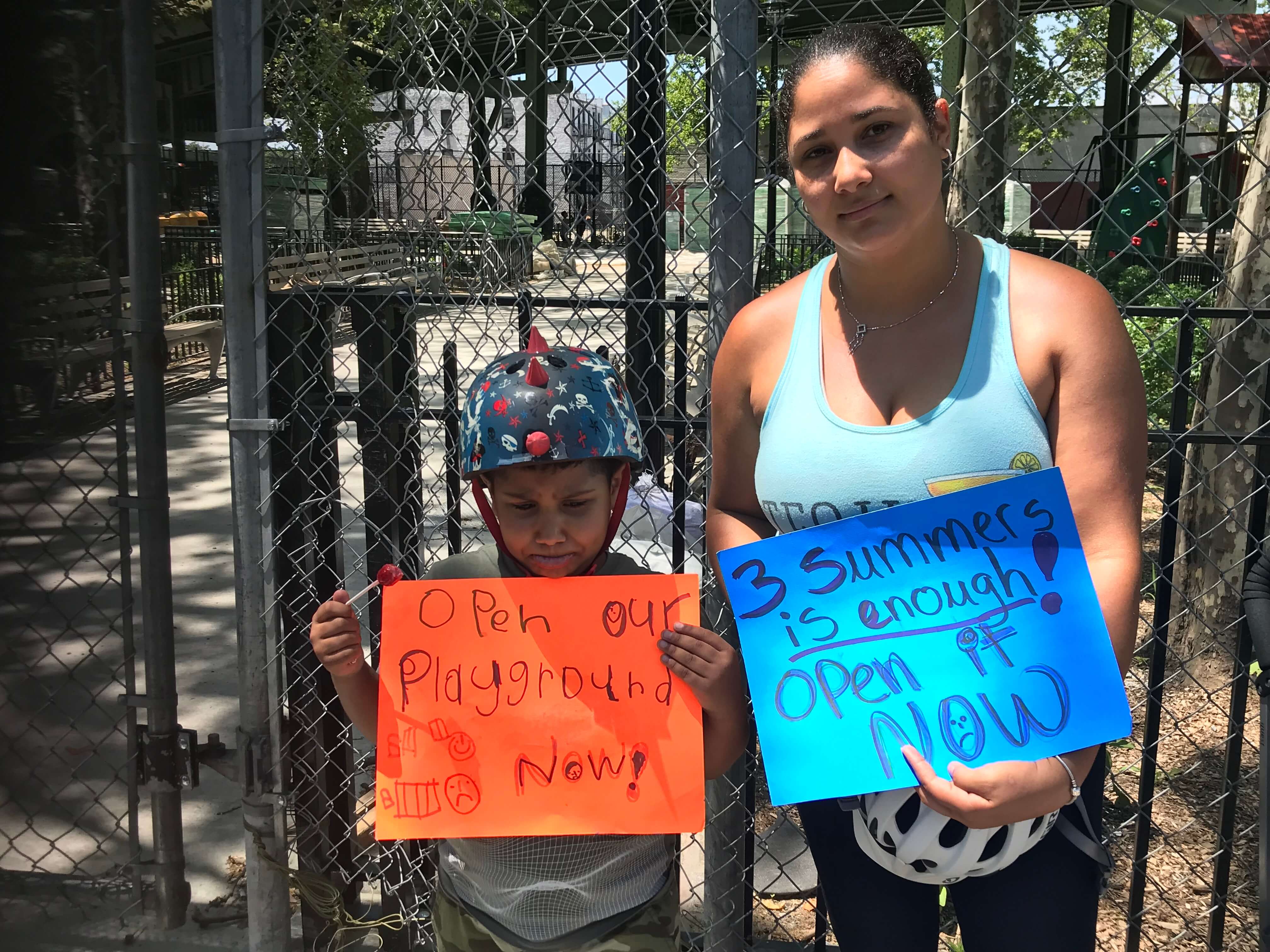 “It seemed like everything was supposed to open on time and here we are,” she said. “It will be another lost summer. I don’t see this happening in any other neighborhood. I don’t think it will open [in early August] which is why we are here. New York City Parks tends to delay things and there’s always one excuse after another.”
