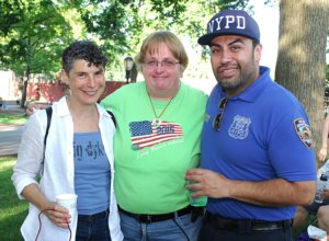 “I was a little nervous and I reached out to [the precinct’s] community affairs just because Lynn had mentioned she was afraid of retaliation initially when she came into the neighborhood to just hang flags,” she said. “We had Officer Gerber Fernandez there and we had no incidents. We had a group of young teenagers and he was talking to about 10 or 12 of them. They broke break with us. We let them know what it was about and if they wanted to stay they were welcome to, and they did. Everyone was very receptive.”