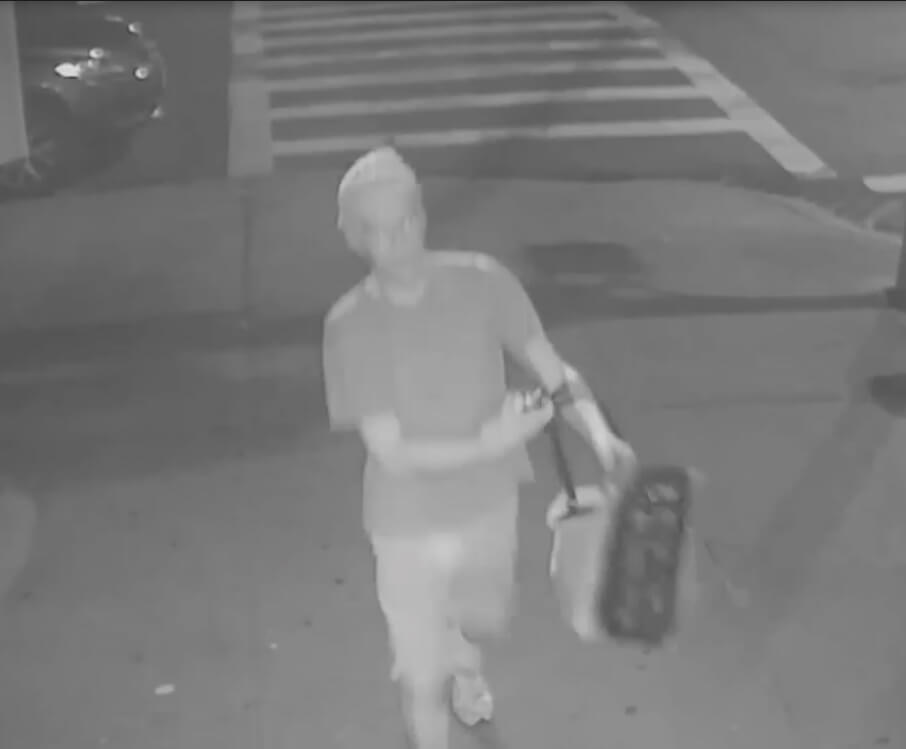 The man caught on surveillance near Green Food can be seen wearing a cap on his head, a shirt, shorts and sneakers. He was also carrying a large bag.