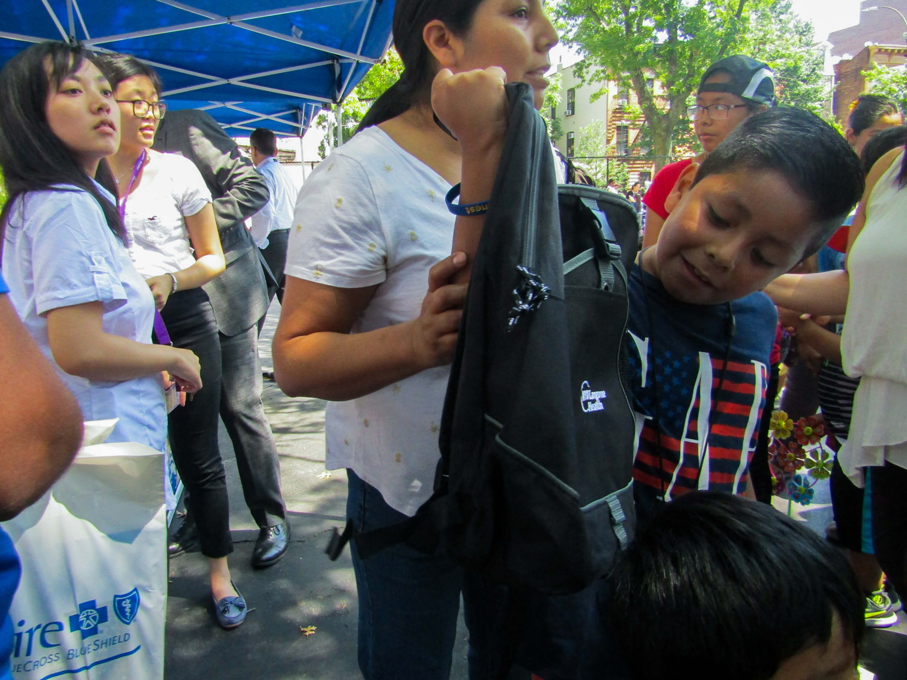 In addition to fun reading materials, NYU Langone Health also handed out backpacks filled with basic school supplies to the dozens of neighborhood children in attendance.