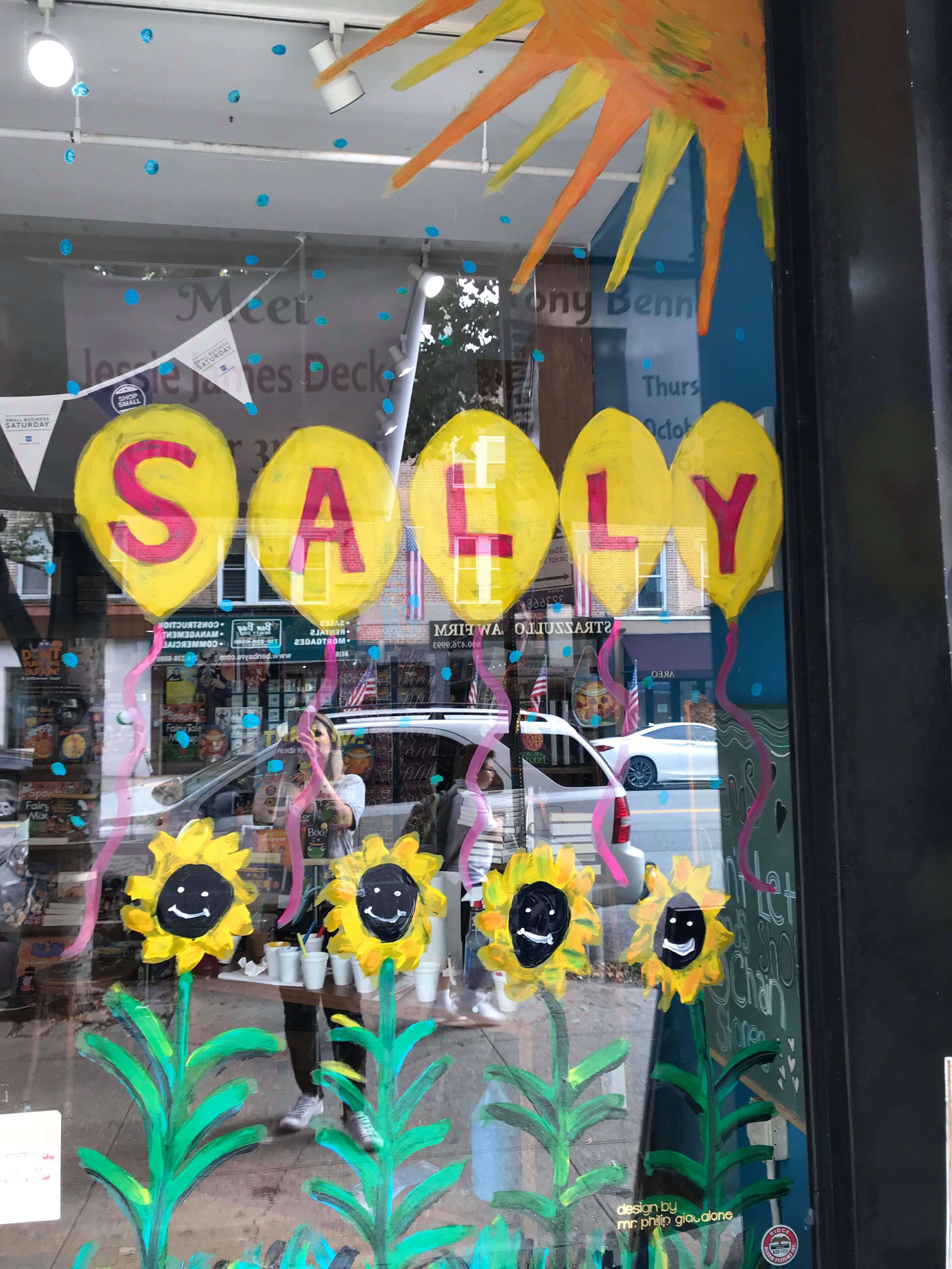 “When I heard Sally had passed I reached out and offered to paint a mural at the shop to hopefully show the community we care and make folks feel a little better that we are a neighborhood that cares for each other,” the artist said. “The store’s owner came up with the idea of balloons, sunshine and sunflowers to keep it happy for such a sweet girl.”