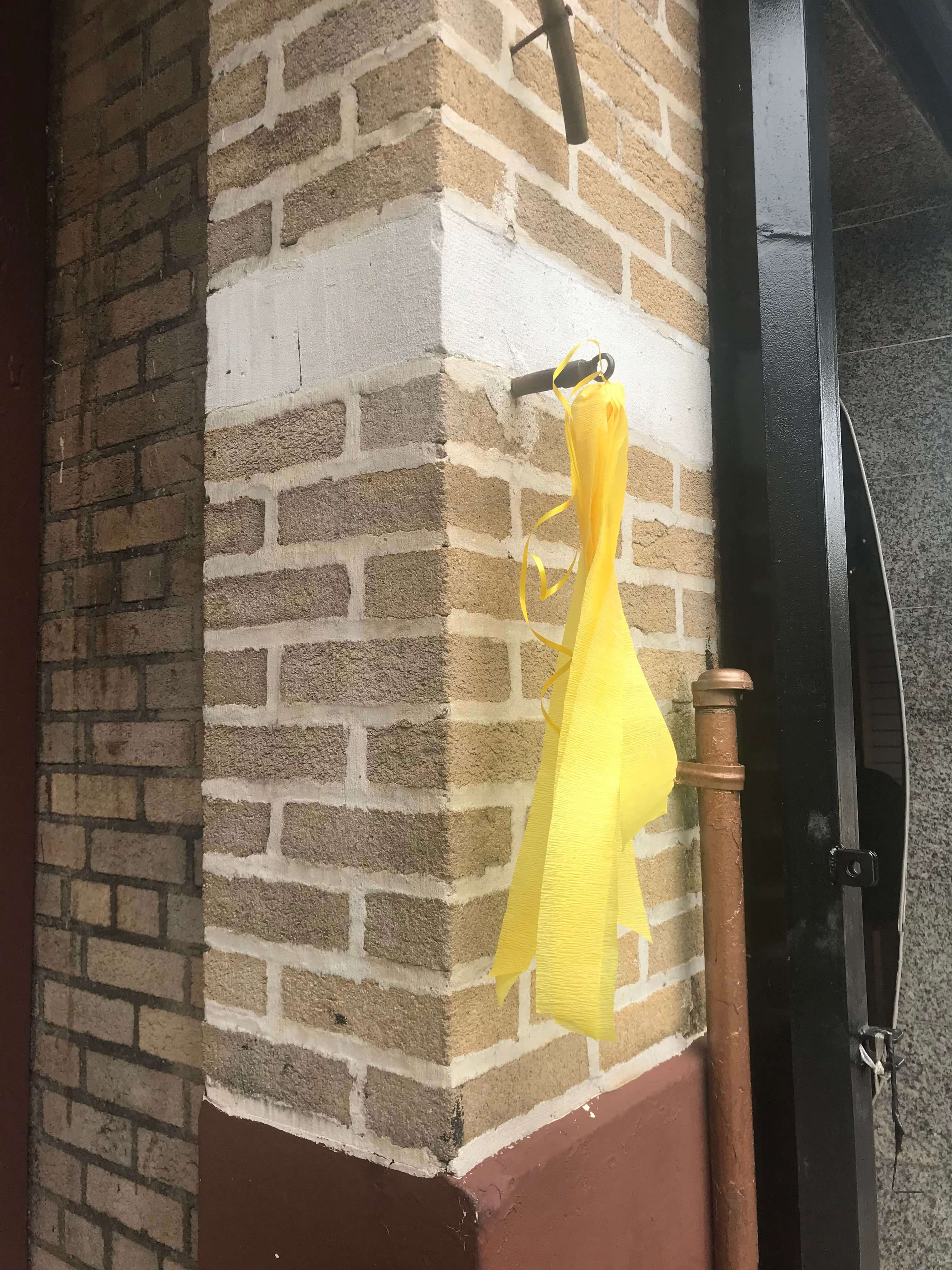 In a matter of hours, yellow and gold began appearing all over the neighborhood — storefronts, homes, schools, lampposts and trees were suddenly adorned with ribbons, wreaths and messages.