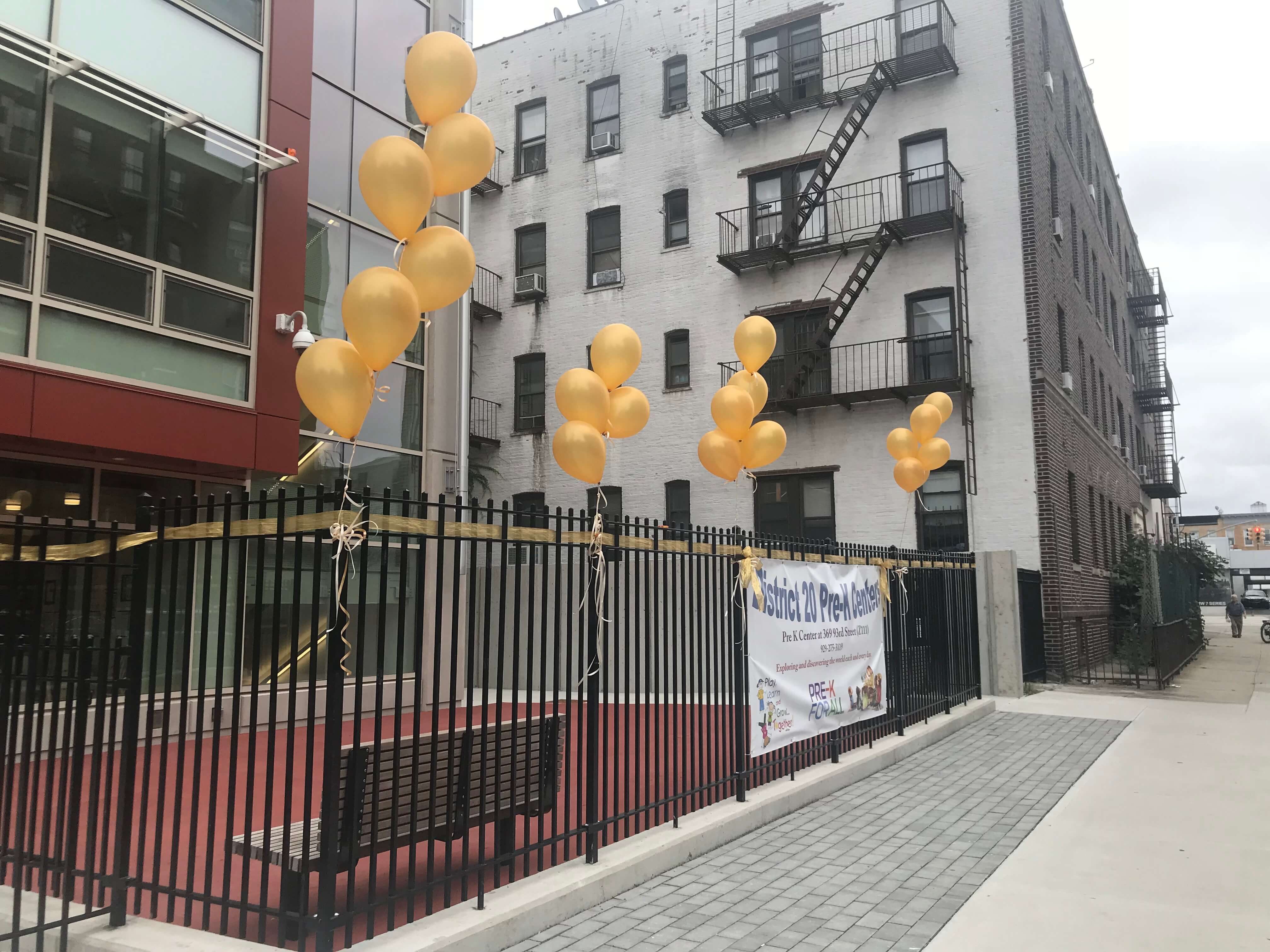 On Sally’s block, a brand new pre-school celebrated its grand opening that a.m. surrounded by everything from gold balloons and ribbons to the very ribbon officials were there to cut. The day before, some friends and neighbors adorned the rest of the block with gold ribbon.