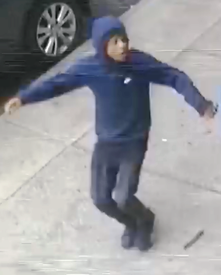 Authorities say that on Monday, Oct. 8 at around 2 p.m., the victim was walking along 56th Street between Sixth and Seventh Avenues when the three suspects came from behind, pushed him to the ground, and punched and kicked him. One of the attackers then cut the straps off the victim’s book bag with a knife, and stole it. The three then fled the scene.