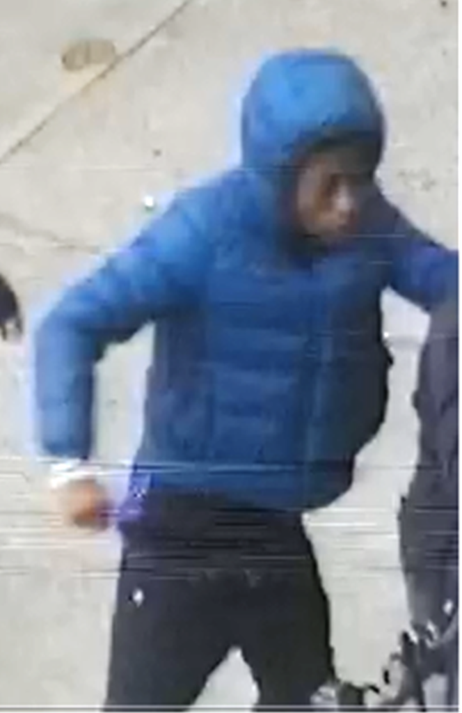 The second suspect is described as having a dark complexion and thin build, and also being around 5’10” tall. He was last seen wearing a blue puffy jacket, black jeans and white sneakers.
