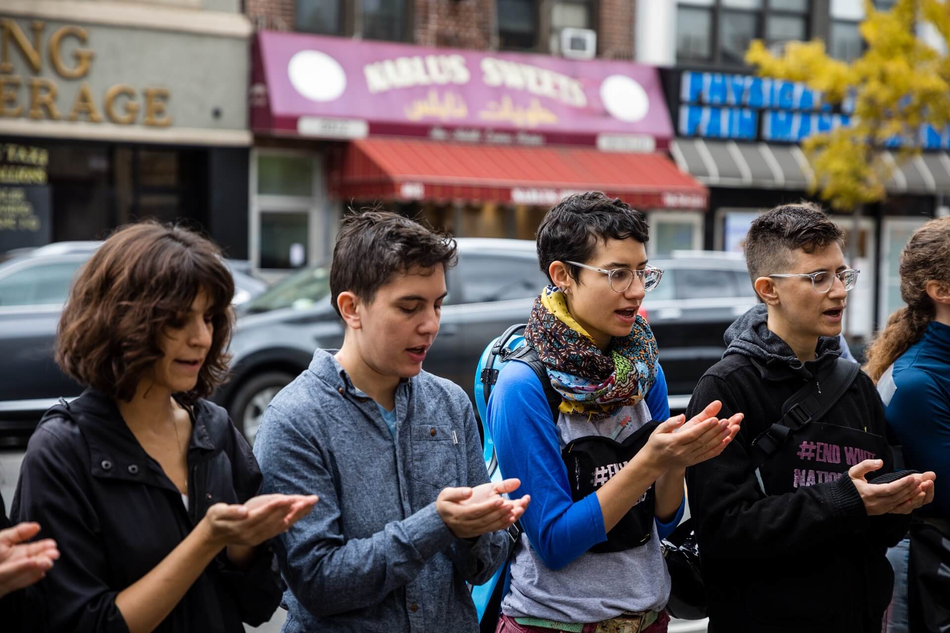 Incorporating the traditions of both the Jewish and Muslim religions, the protesters prayed together, sang Yiddish songs and sat shiva in tribute to the victims of the Tree of Life massacre in Pittsburgh to make the point that hate speech and white nationalist rhetoric often leads to violence.