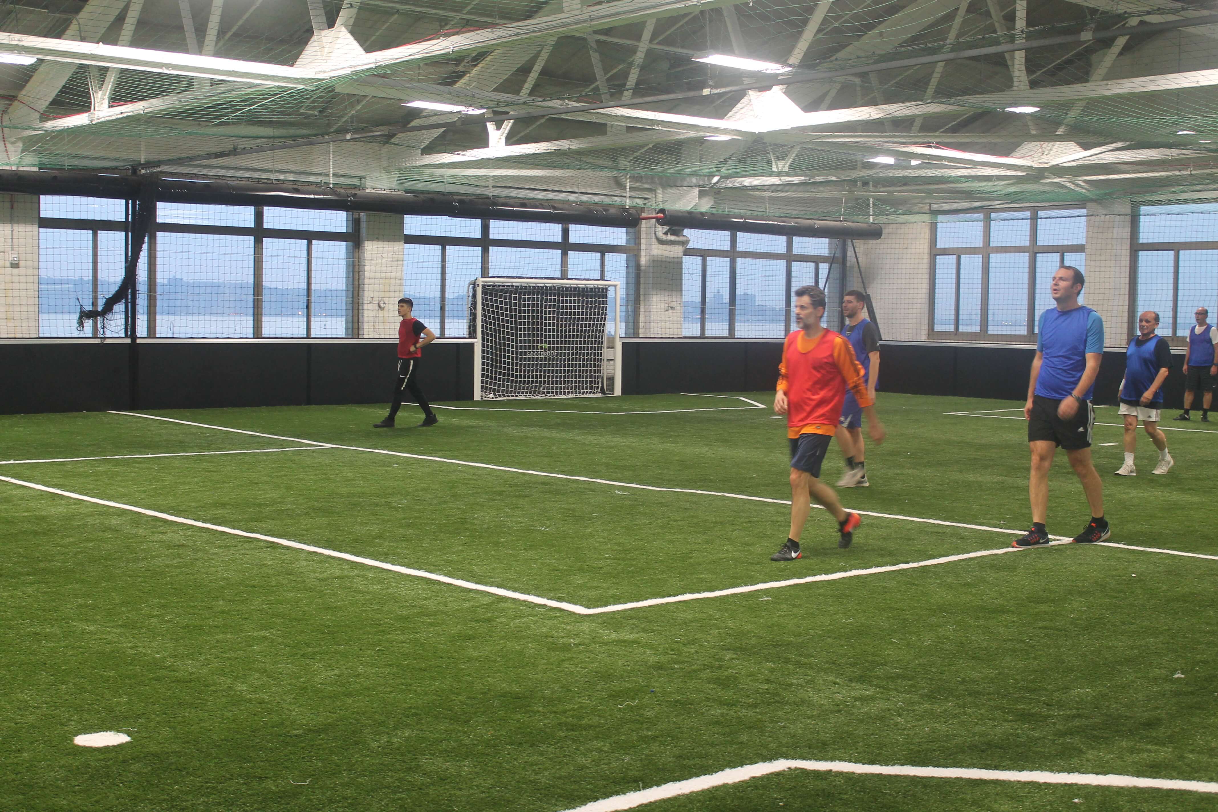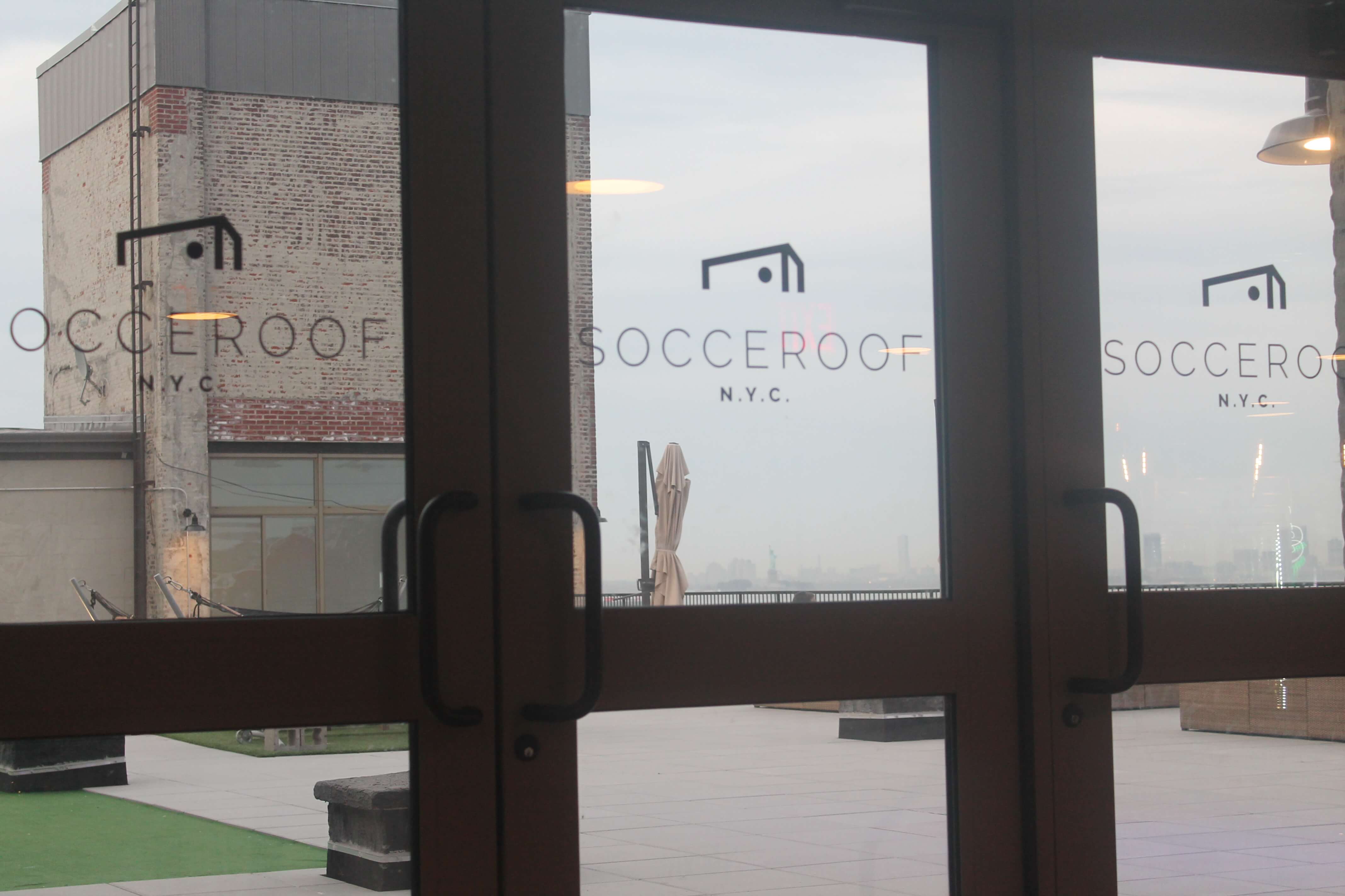 The 70,000-square-foot space includes 10 fields named after Brooklyn neighborhoods, such as Sunset Park, Bay Ridge and Red Hook; changing rooms; a high-end sports bar; multiple big-screen TVs and a rooftop with unobstructed panoramic waterfront views of Manhattan. The theme is set at the facility’s entrance, where the walls are filled with a display of international soccer jerseys.