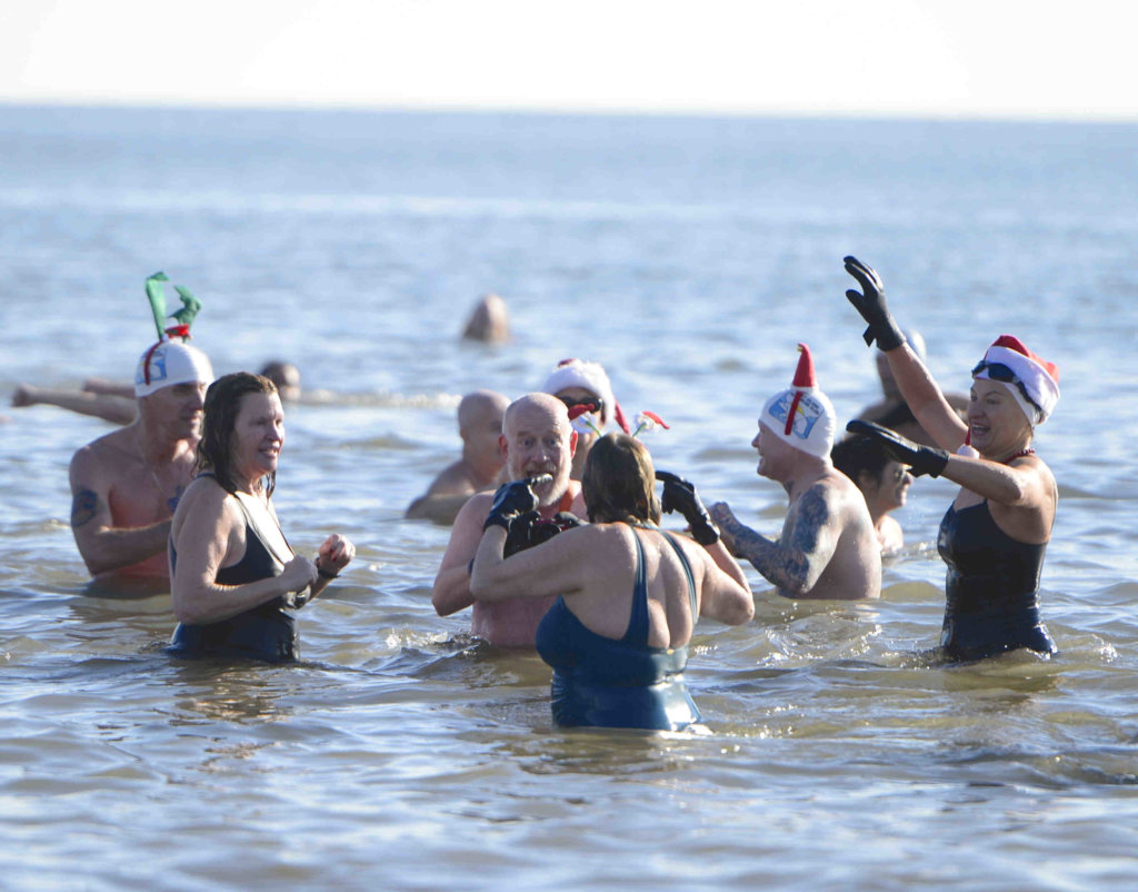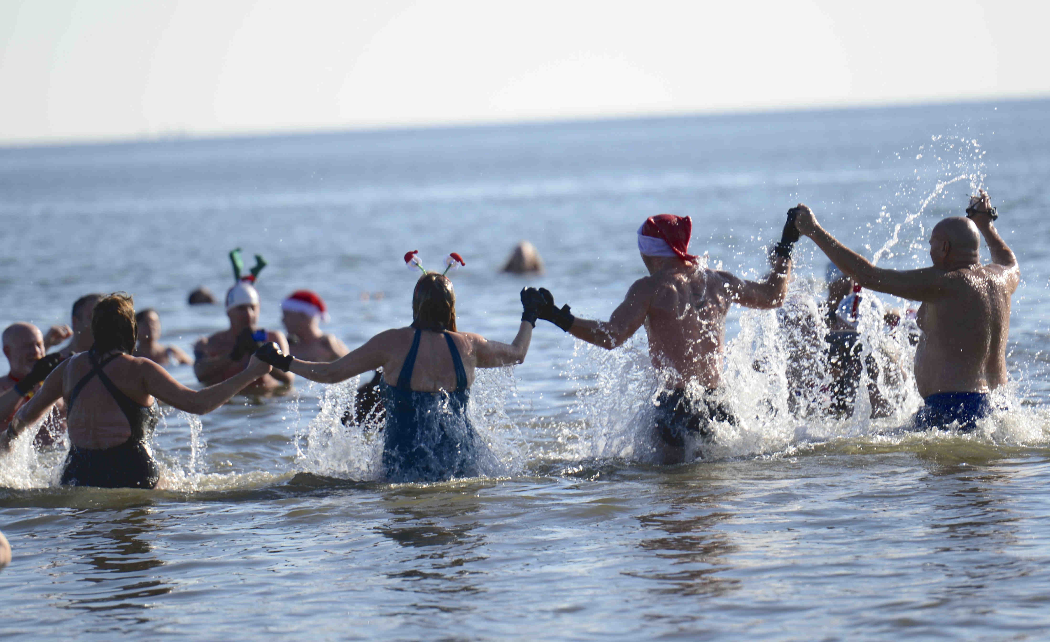 And so, the Polar Bears tested the waters on Sun., Dec. 23, and reported “balmy” conditions for some of the long-time members who have swam in temperatures that have dipped below zero in past years. The weekend before, the club reported high waves that knocked some swimmers down if they weren’t careful.