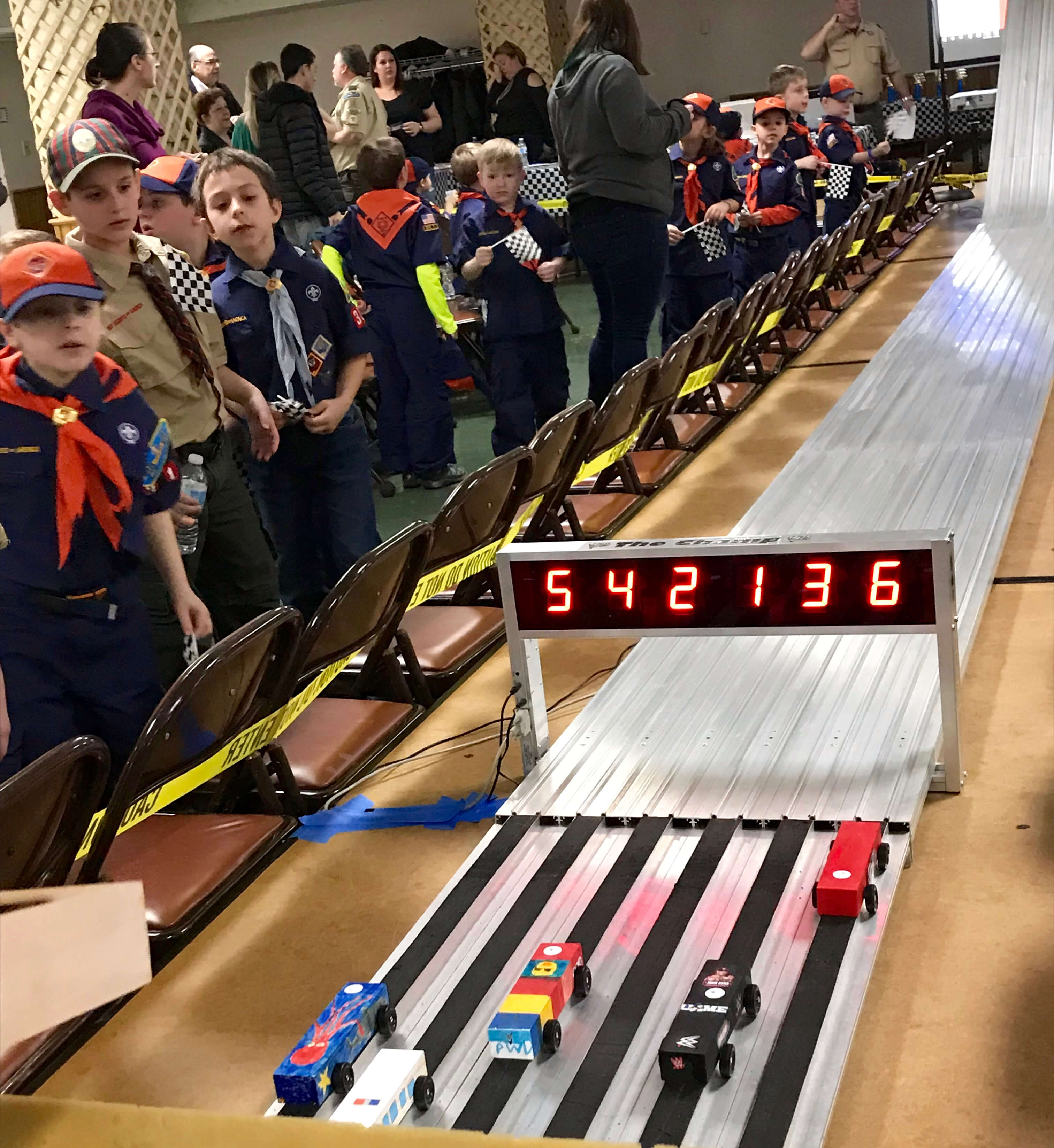 The Pinewood Derby is a Cub Scout tradition dating back to 1953. The Scouts receive a car kit in advance and build the cars at home. The cars can weigh no more than five ounces on race day.