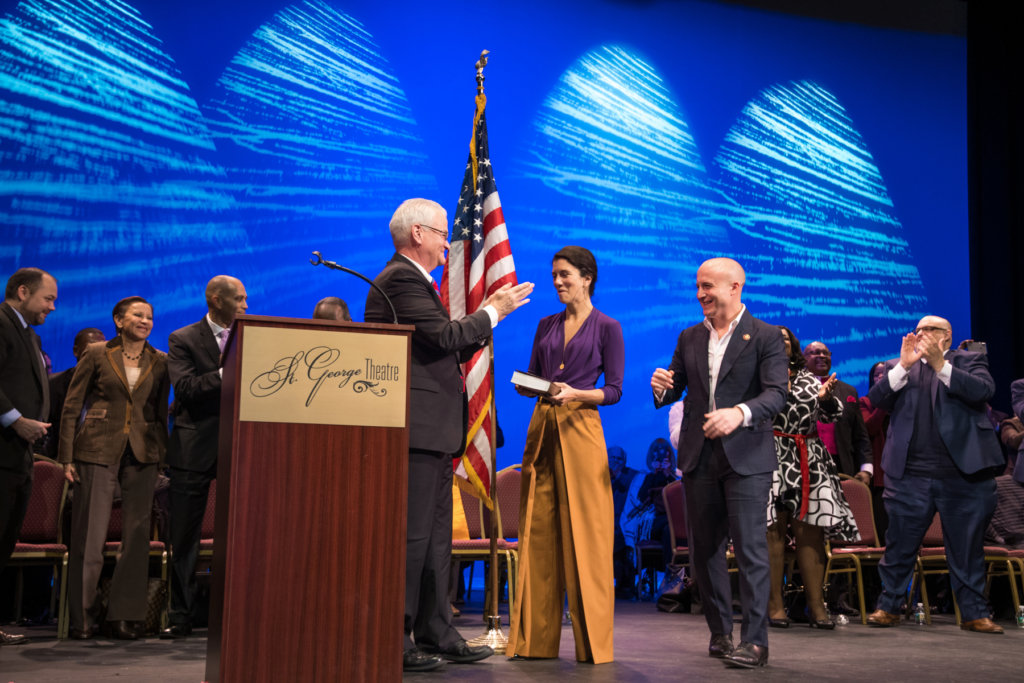 The oath was administered to Rose by Staten Island District Attorney Michael McMahon. “Max has indeed led a life of service, heroic service,” McMahon said. Rose’s wife Leigh stood by his side as he was sworn into office.