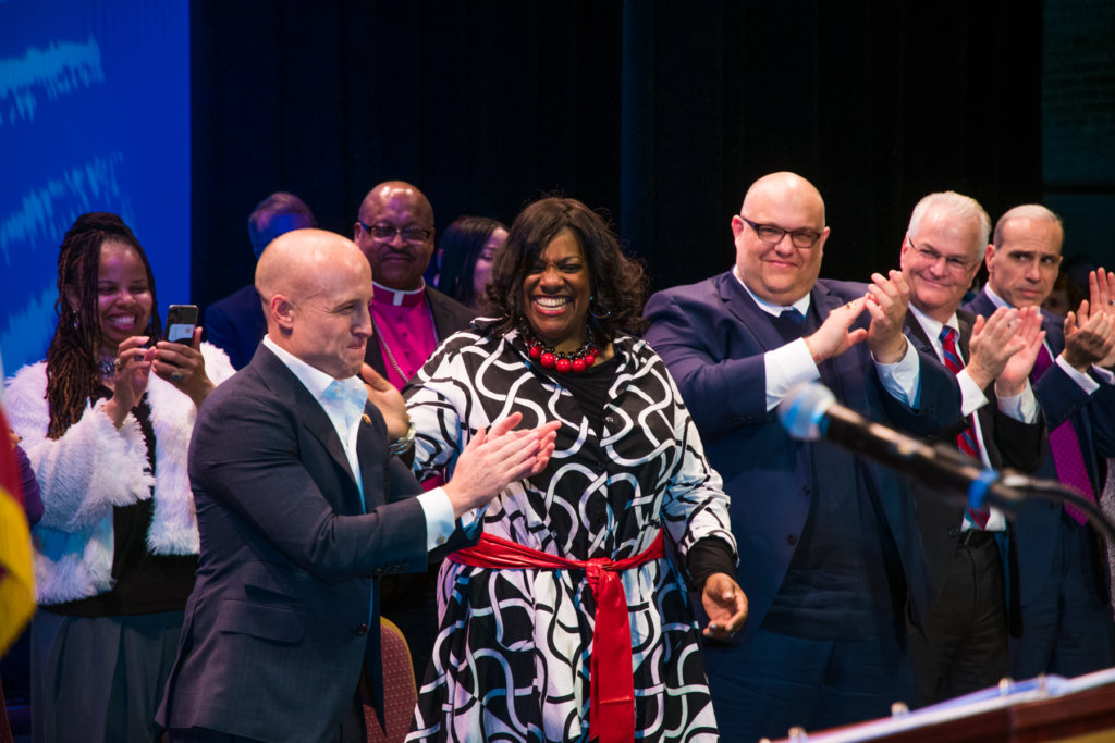 Rose was joined onstage by a group of political luminaries that included U.S. Sen. Charles Schumer; McMahon; City Comptroller Scott Stringer; City Council Speaker Corey Johnson; U.S. Reps. Nydia Velazquez, Carolyn Maloney and Hakeem Jeffries; state Sens. Andrew Gounardes and Diane Savino; Assemblymembers Peter Abbate, Mathylde Frontus, Michael Blake, Jo Anne Simon, Michael Cusick and Nicole Malliotakis; Brooklyn Borough President Eric Adams; Staten Island Borough President James Oddo; Bronx Borough President Ruben Diaz, Jr.; City Councilmembers Justin Brannan, Debi Rose, Rafael Espinal and Mark Treyger; and former Councilmember Vincent Gentile.