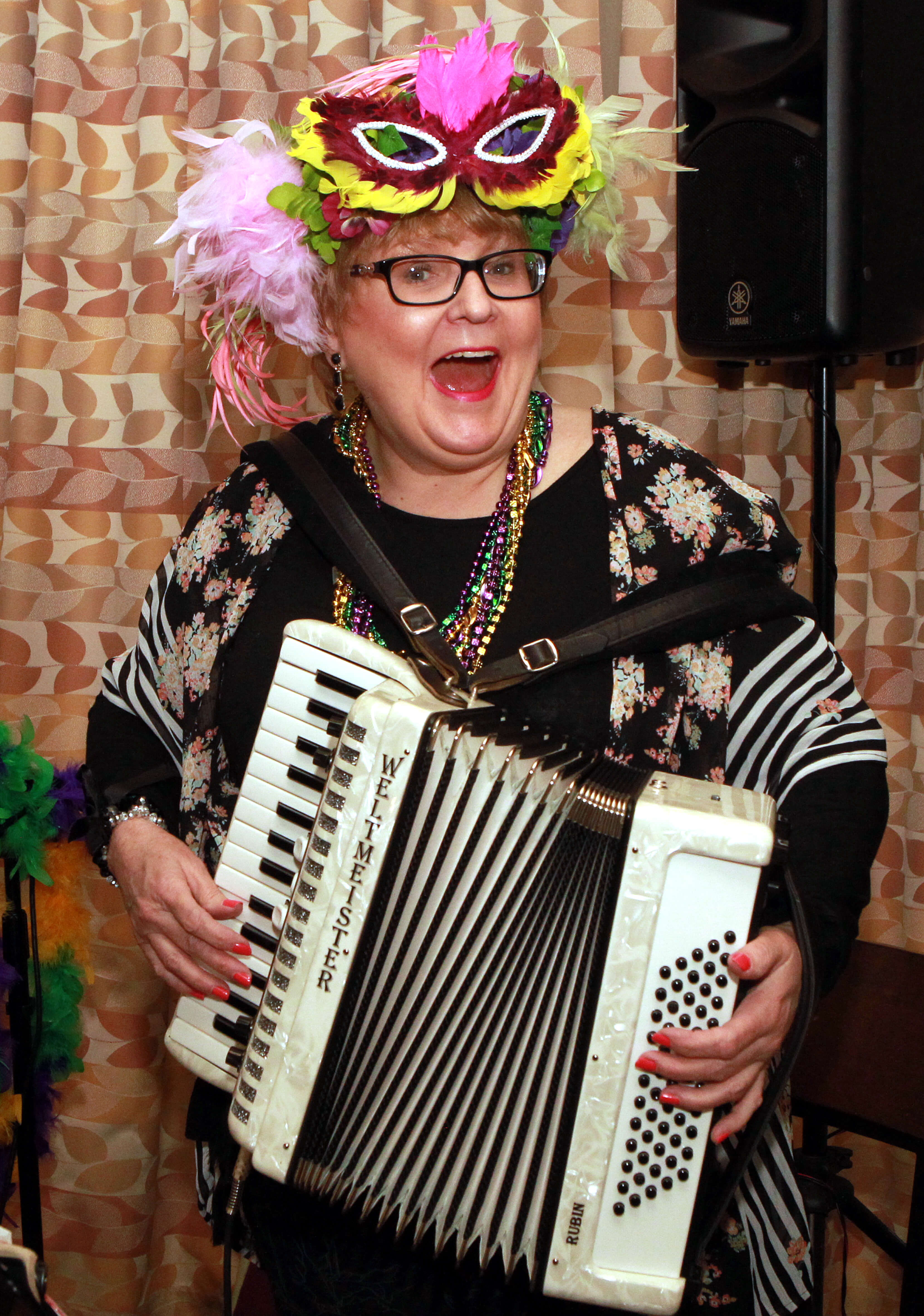 Also in keeping with tradition, special cream buns were served for dessert. Music was provided by Ellen Lindstrom, aka the Swedish Meatball, who played her accordion.