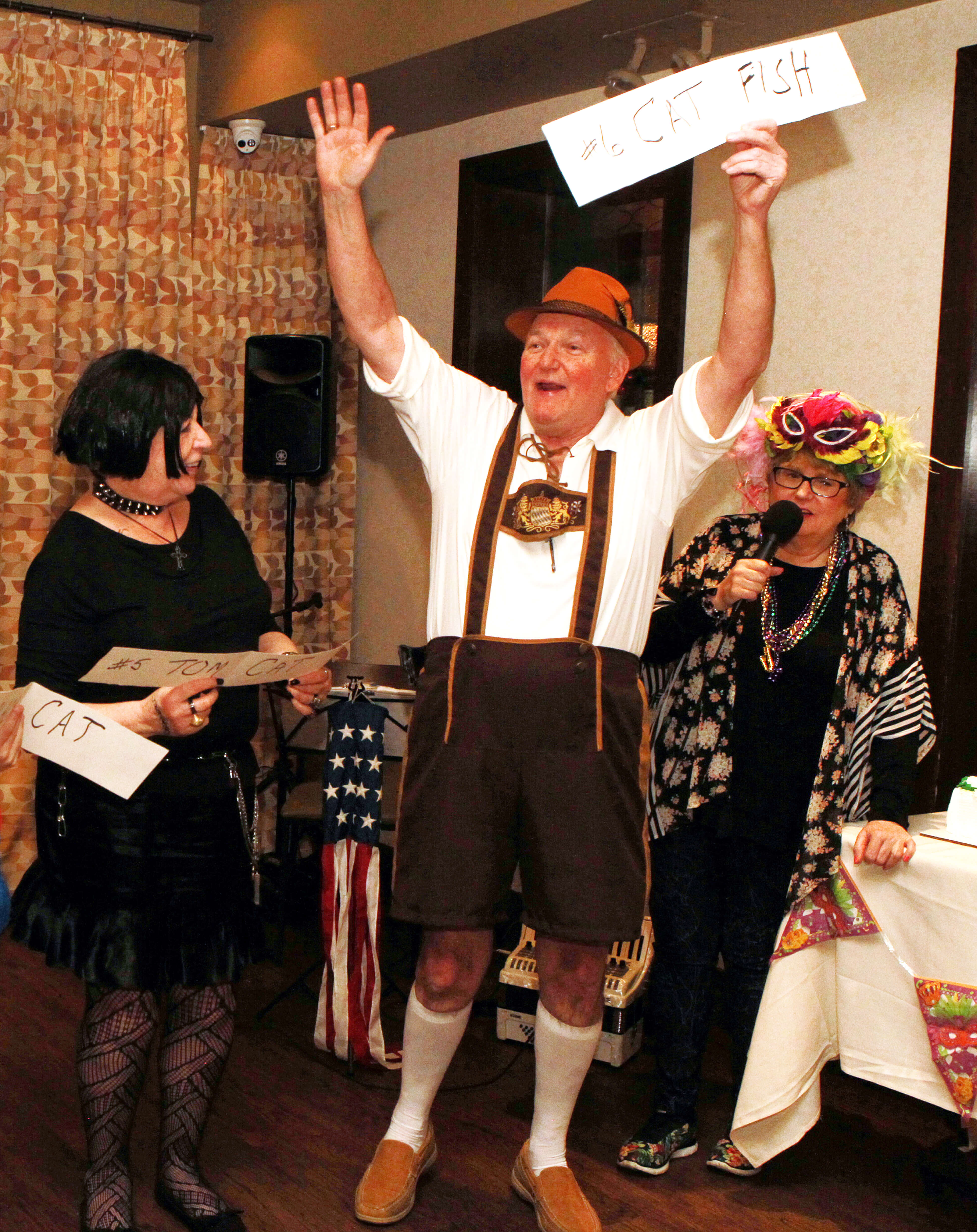 “A lot of people came in costume which we were really happy about,” Hofmo said. “Two were dressed as Hansel and Gretel. I was dressed like Cleopatra. We have a bag of costumes, wigs and hats and everyone puts them on when the music starts. We had a great time with that.”