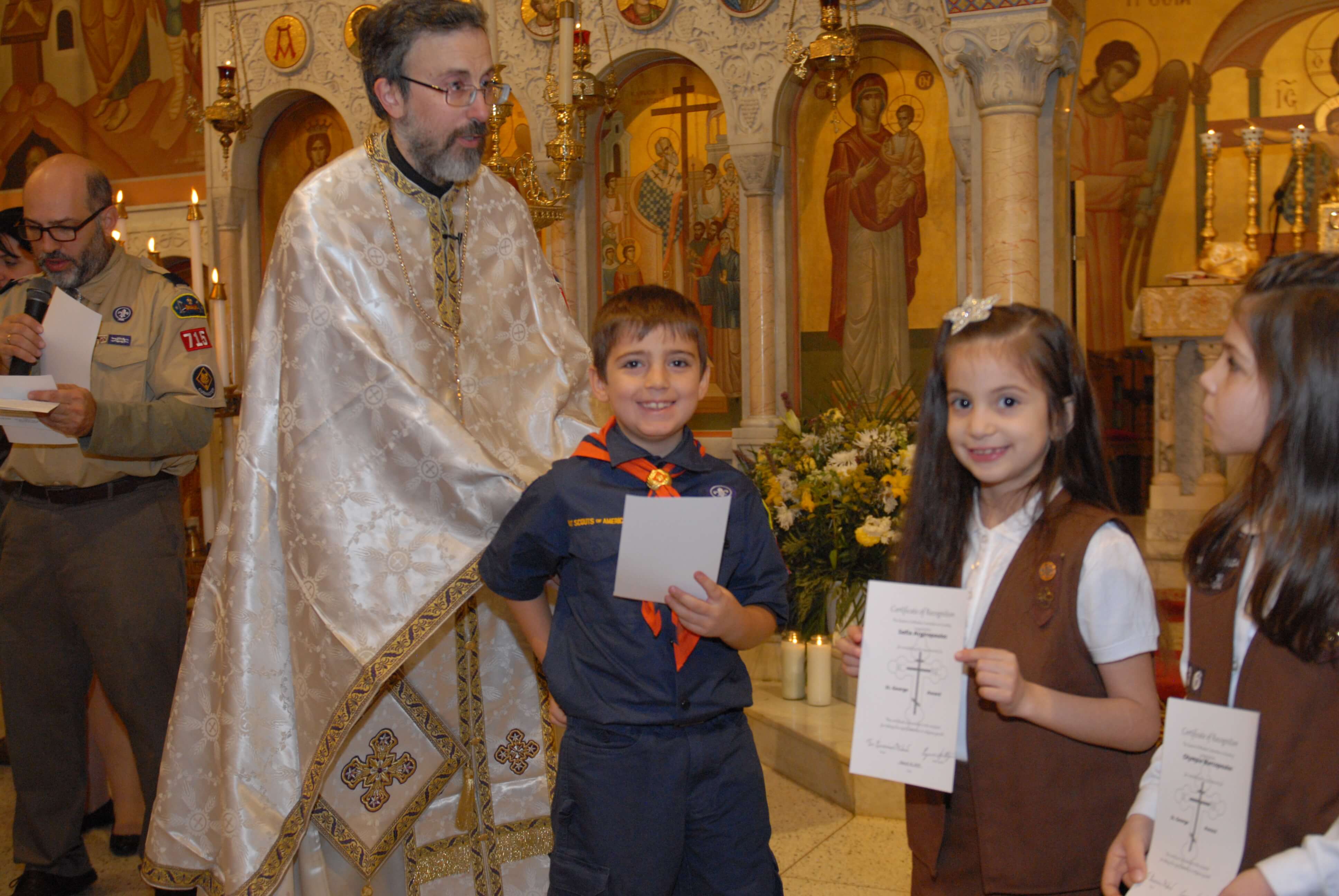 The Chi-Rho Award was presented to any Orthodox Christian boy or girl who is registered as a Cub Scout or Girl Scout, is in the fourth or fifth grade and attends church school or is in a formal religious program.