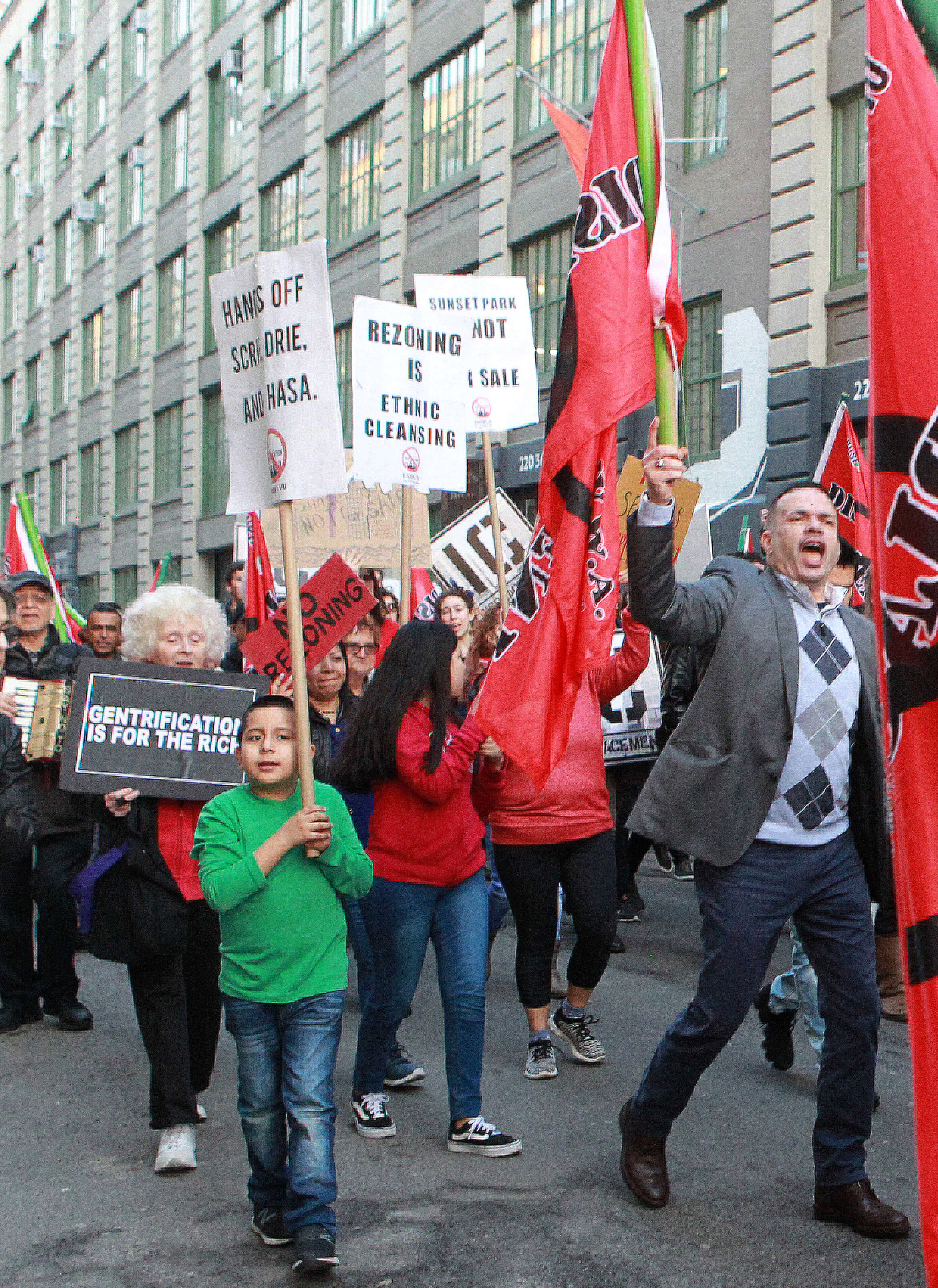 Residents, local businesses, community groups and members of a coalition called POWWA (which stands for Protect Our Working Waterfront Alliance) gathered at the corner of 36th Street and Fourth Avenue before marching to Industry City to voice their concern for what an expansion of the entity would bring to the community.