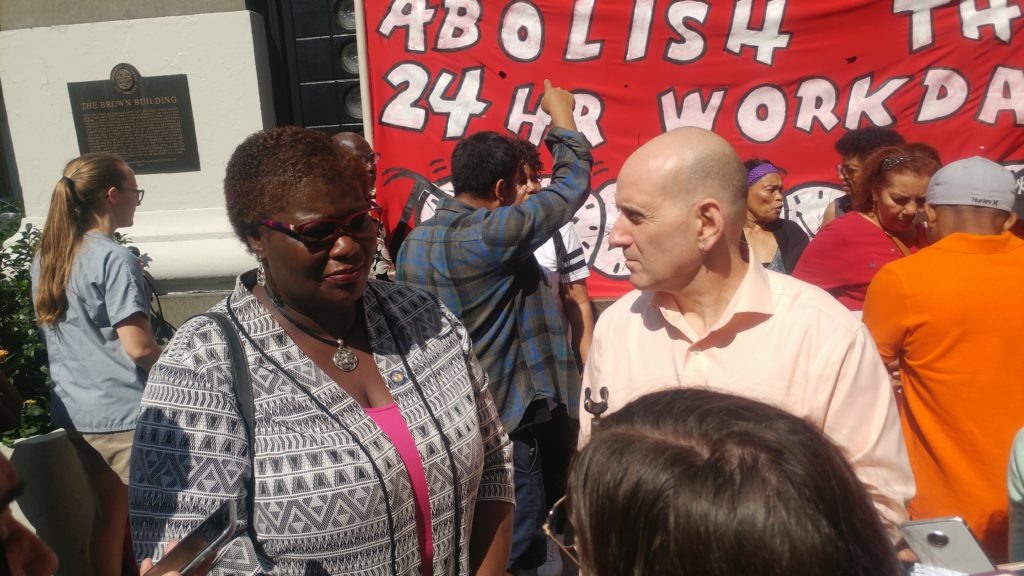On Sept. 4, home care workers participated in a press conference held by Brooklyn State Sen. Roxanne Persaud and Manhattan Assemblymember Harvey Epstein in lower Manhattan where the two elected officials announced legislation that would ban 24-hour workdays for home care workers and cap work weeks at 50 hours.